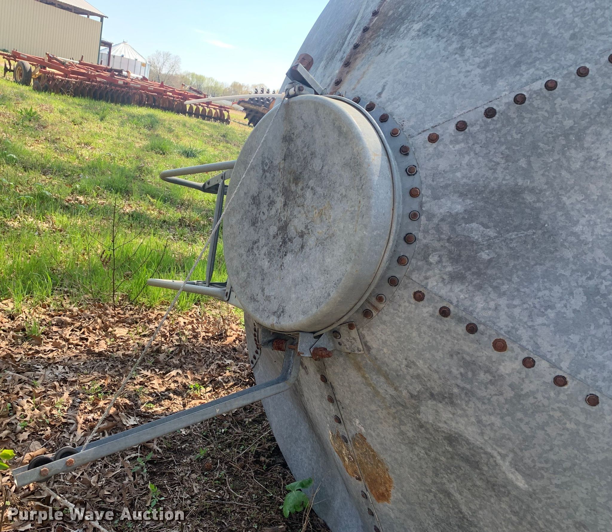 Purple Wave is selling a used Other Grain or Fertilizer Handling in Arkansas. This item is a Roxell grain bin with the following: 21.5'H x 7' diameter, 21" man hole