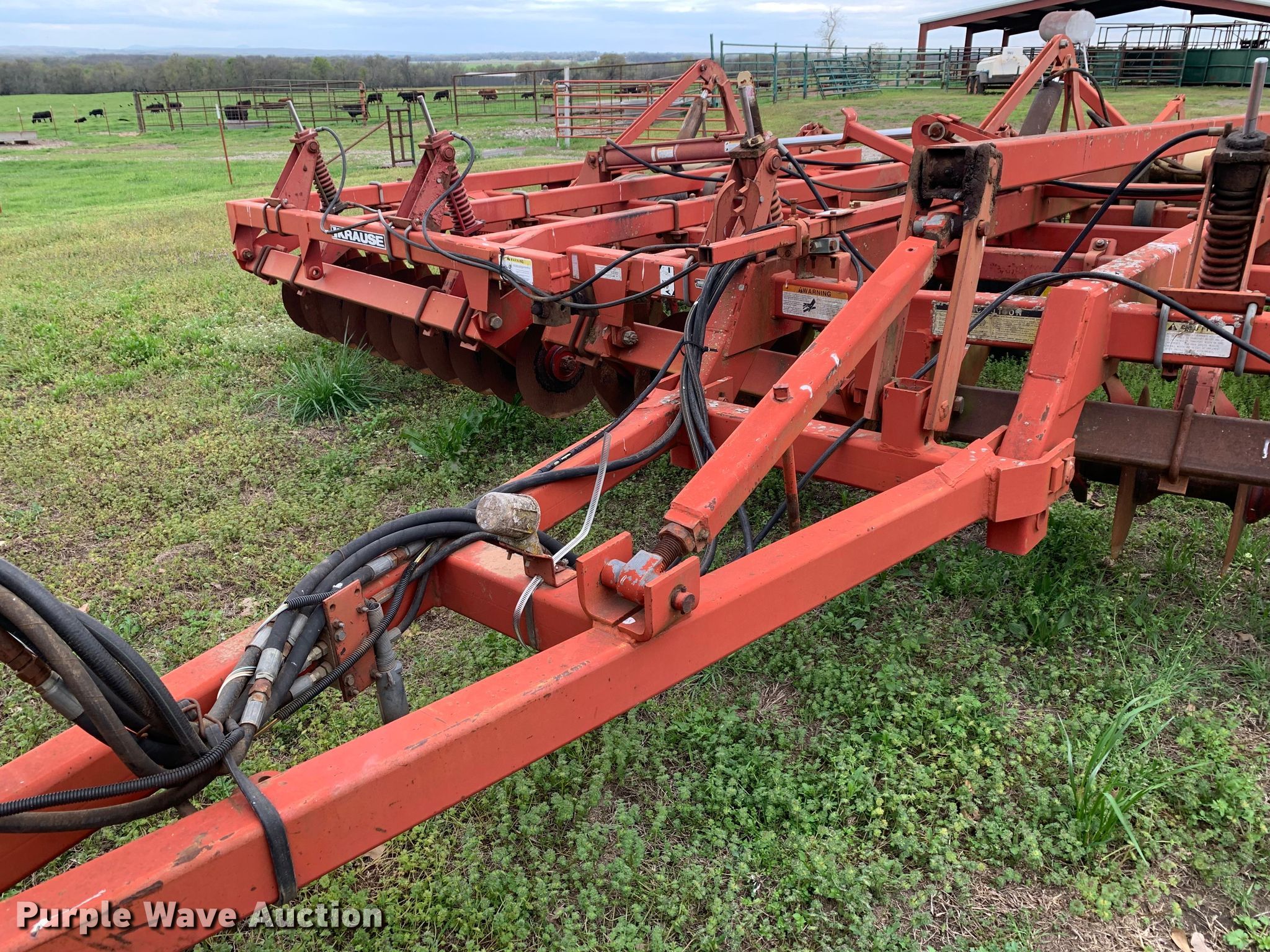 Krause 6164 Landsman mulch finisher. Overall width: 27' 1", Serial: 2143. Features Shanks: 30, Sweep width: 12", Blade diameter Front: 14", Spacing: 9", Operation Hydraulic lift, Hydraulic fold, Attachments Tine harrow Harrow bars: 3, Chopper reel. Tires Gauge wheels Size: 9.5L-15SL. Don - Warren Cattle Company. 1503 Crowe Road. Lavaca, AR 72941