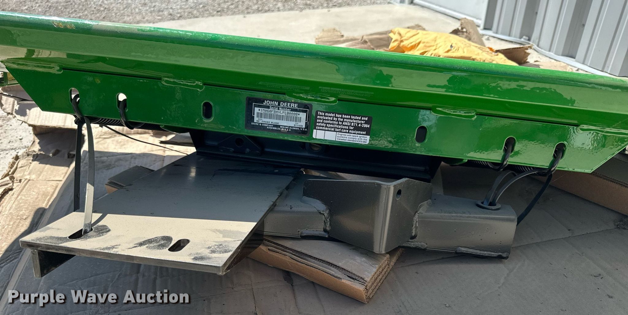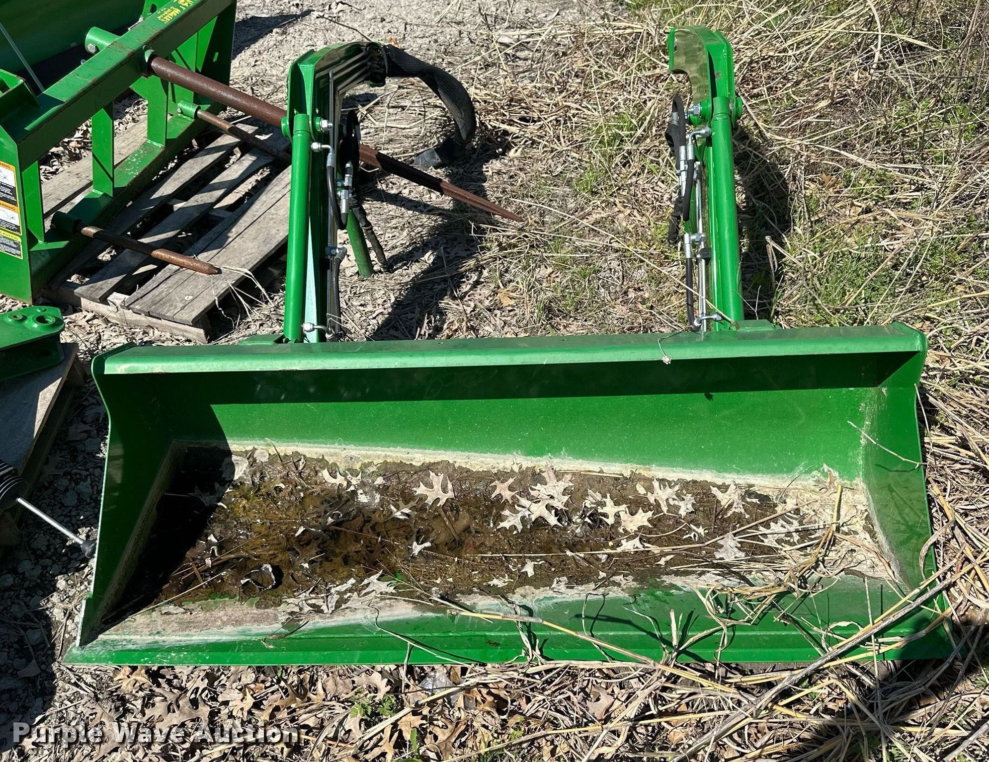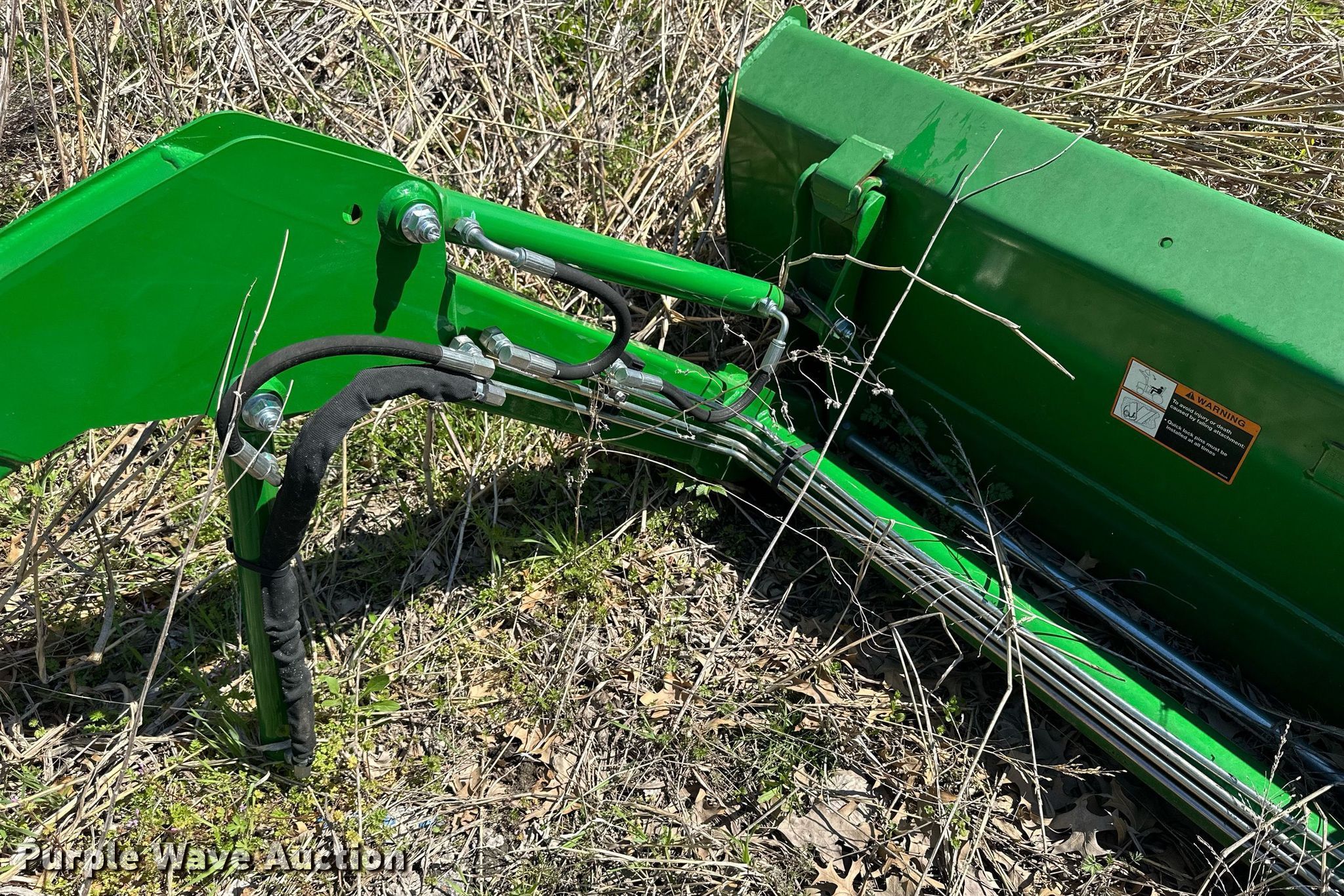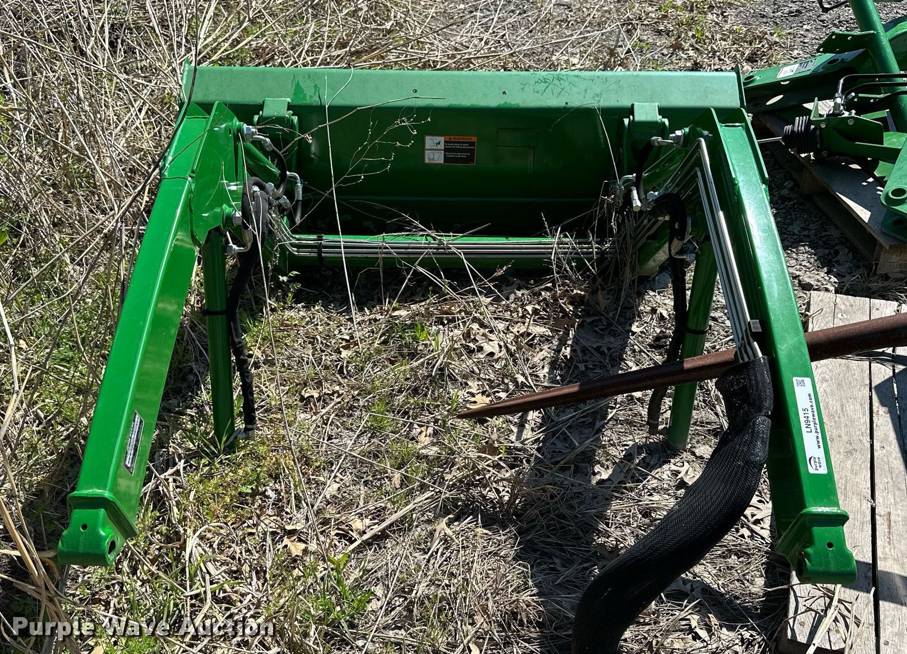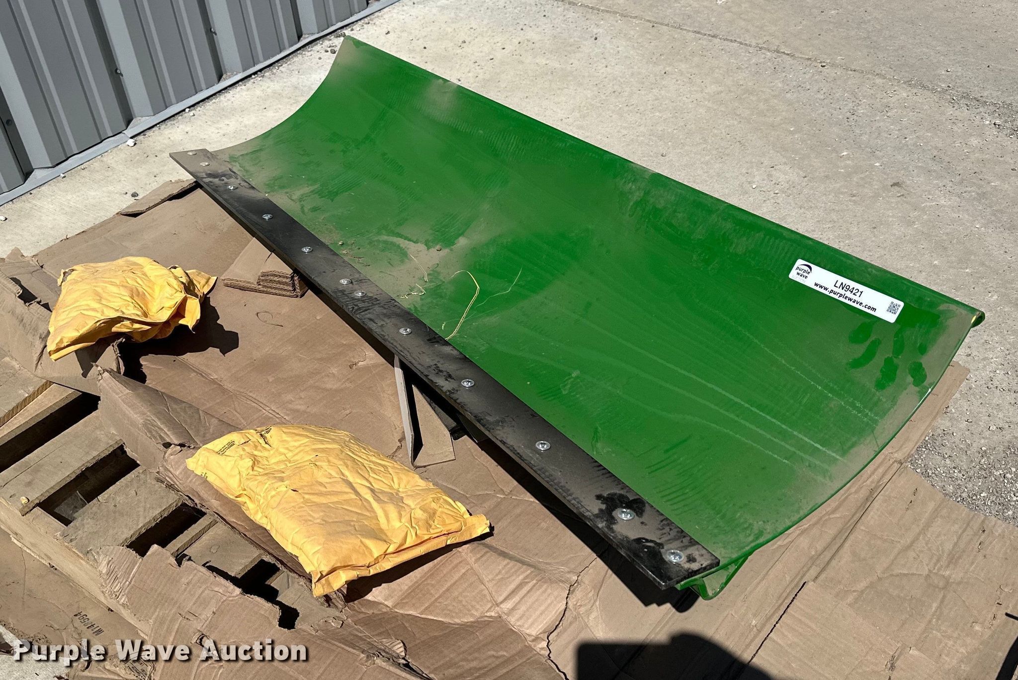 Purple Wave is selling a used Ag Tractor Loader or Attach. in Kansas. This item is a (3) attachments with the following: John Deere 300E loader, Bucket, Width: 5', Serial: 1P0300EXKJX056011, John Deere 72"W mower deck, Serial: 1M04172XLNM160003, John Deere 5'W blade, Hardware, Lift arm kit missing, Unknown operating conditions, ICN: LN9416, LN9421