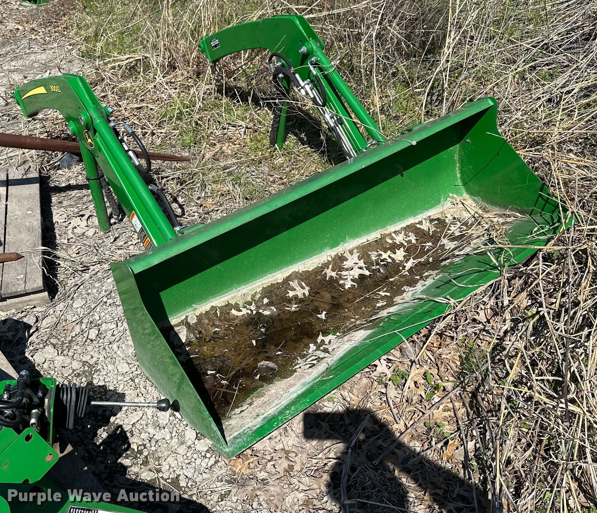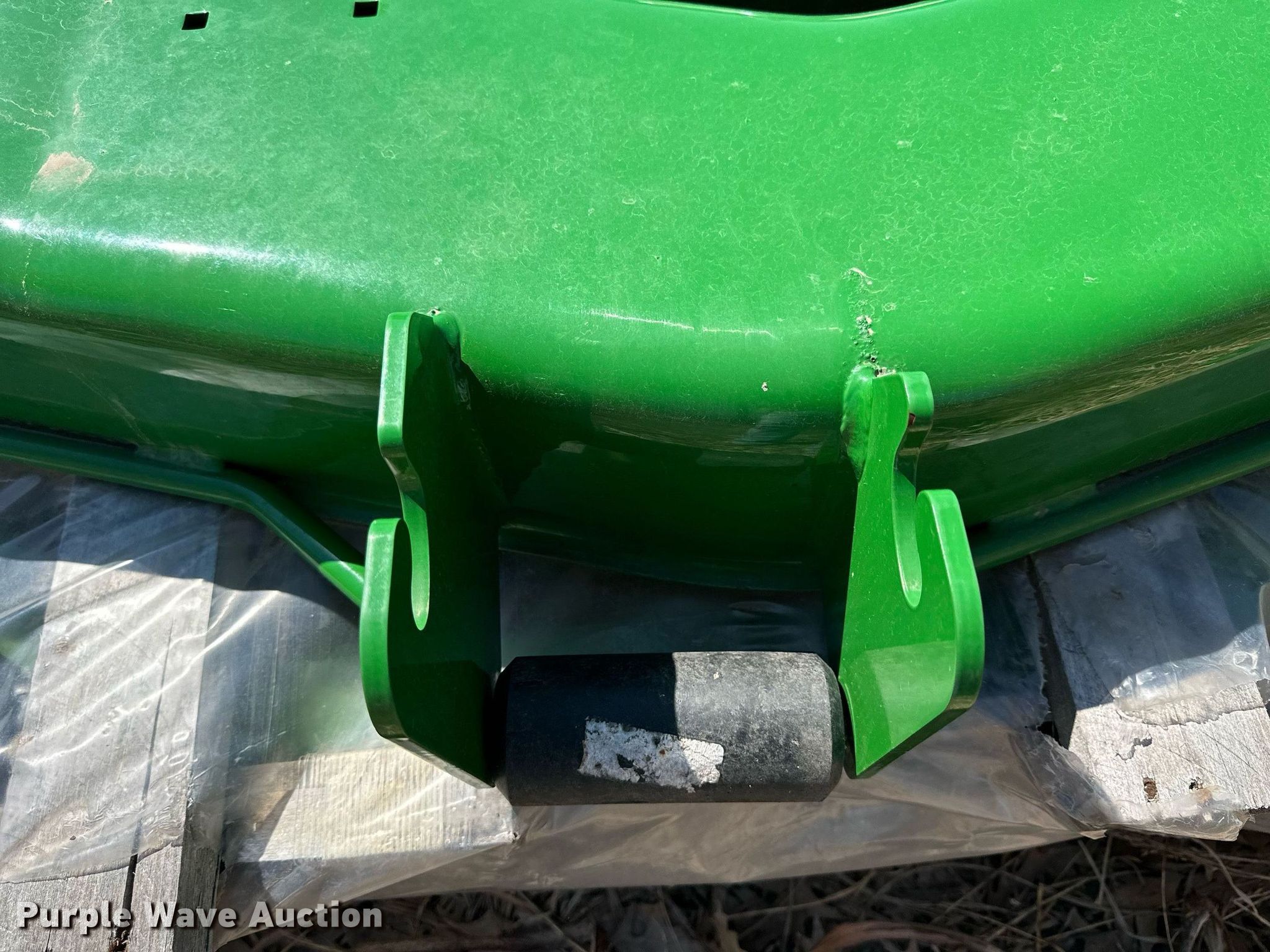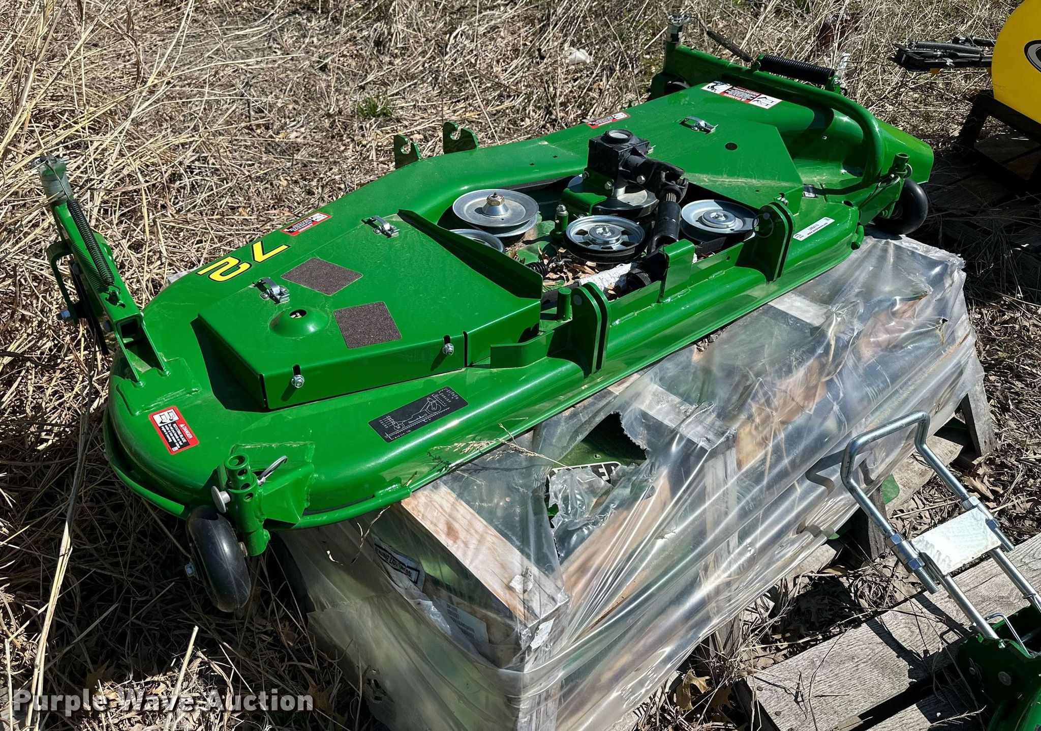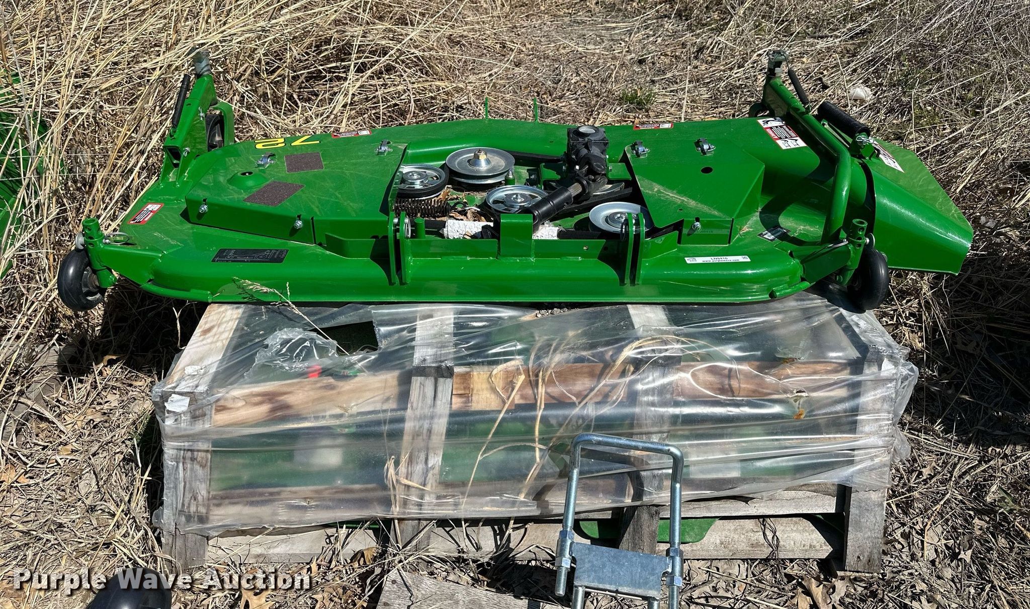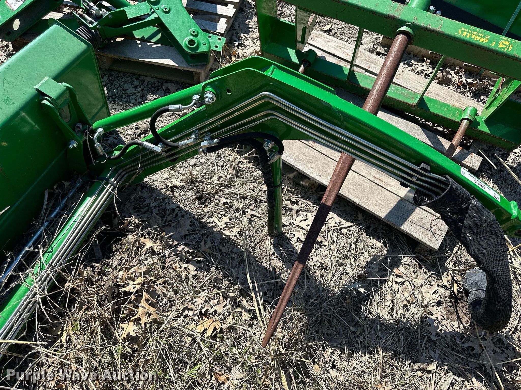 Purple Wave is selling a used Ag Tractor Loader or Attach. in Kansas. This item is a (3) attachments with the following: John Deere 300E loader, Bucket, Width: 5', Serial: 1P0300EXKJX056011, John Deere 72"W mower deck, Serial: 1M04172XLNM160003, John Deere 5'W blade, Hardware, Lift arm kit missing, Unknown operating conditions, ICN: LN9416, LN9421