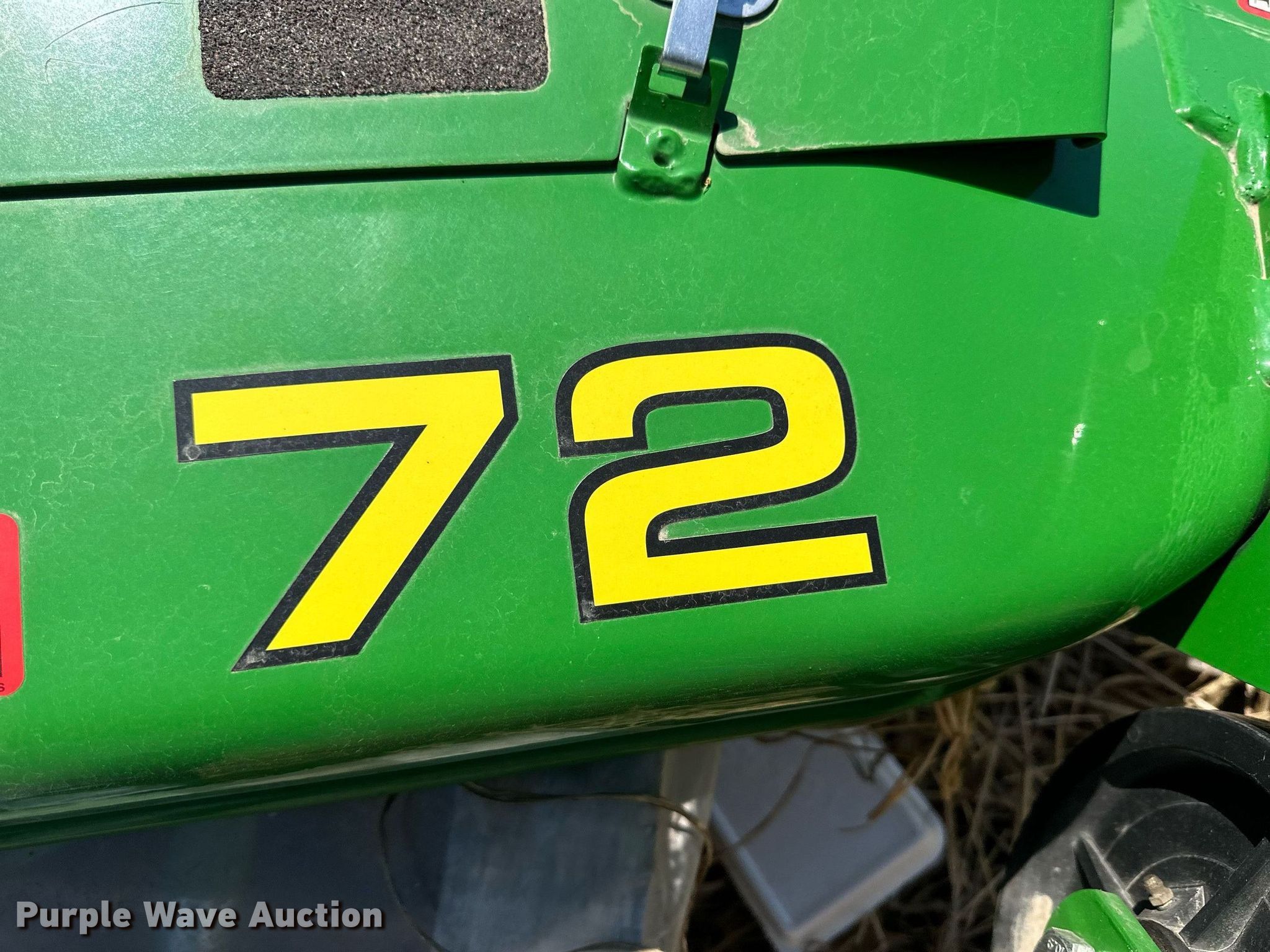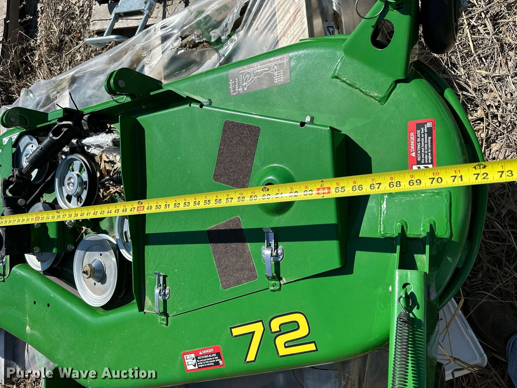 (3) attachments. John Deere 300E loader Bucket Width: 5', Serial: 1P0300EXKJX056011, John Deere 72"W mower deck Serial: 1M04172XLNM160003, John Deere 5'W blade Hardware, Lift arm kit missing, Unknown operating condition s, ICN: LN9416, LN9421. Heritage Tractor. 1110 E 23rd St. Lawrence, KS 66046