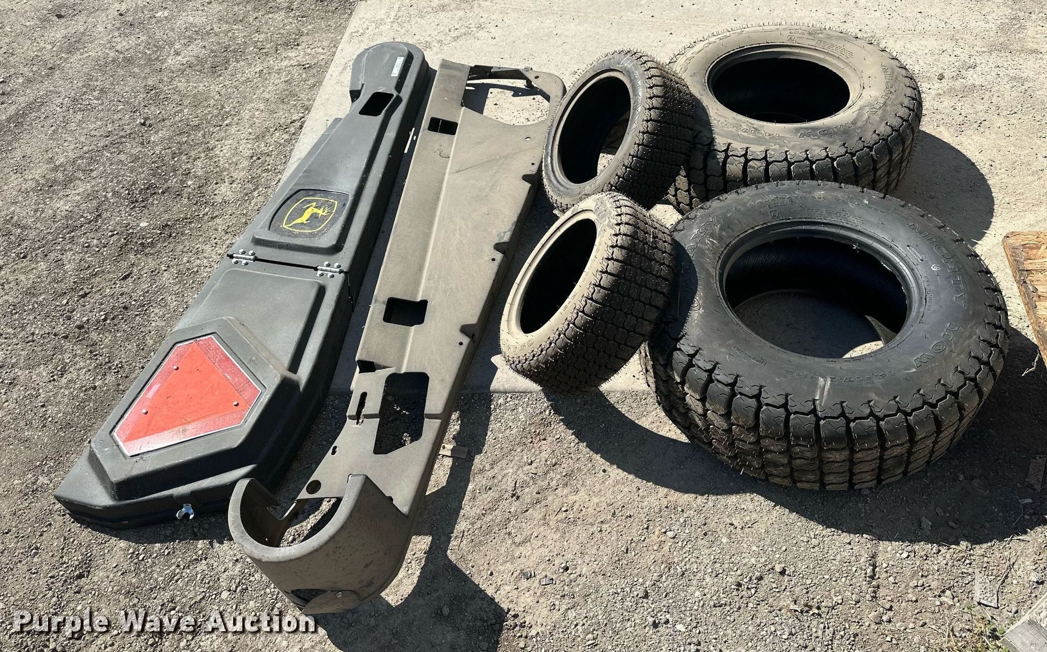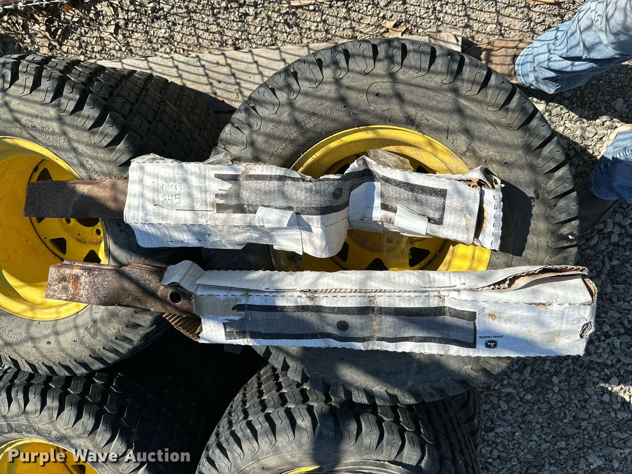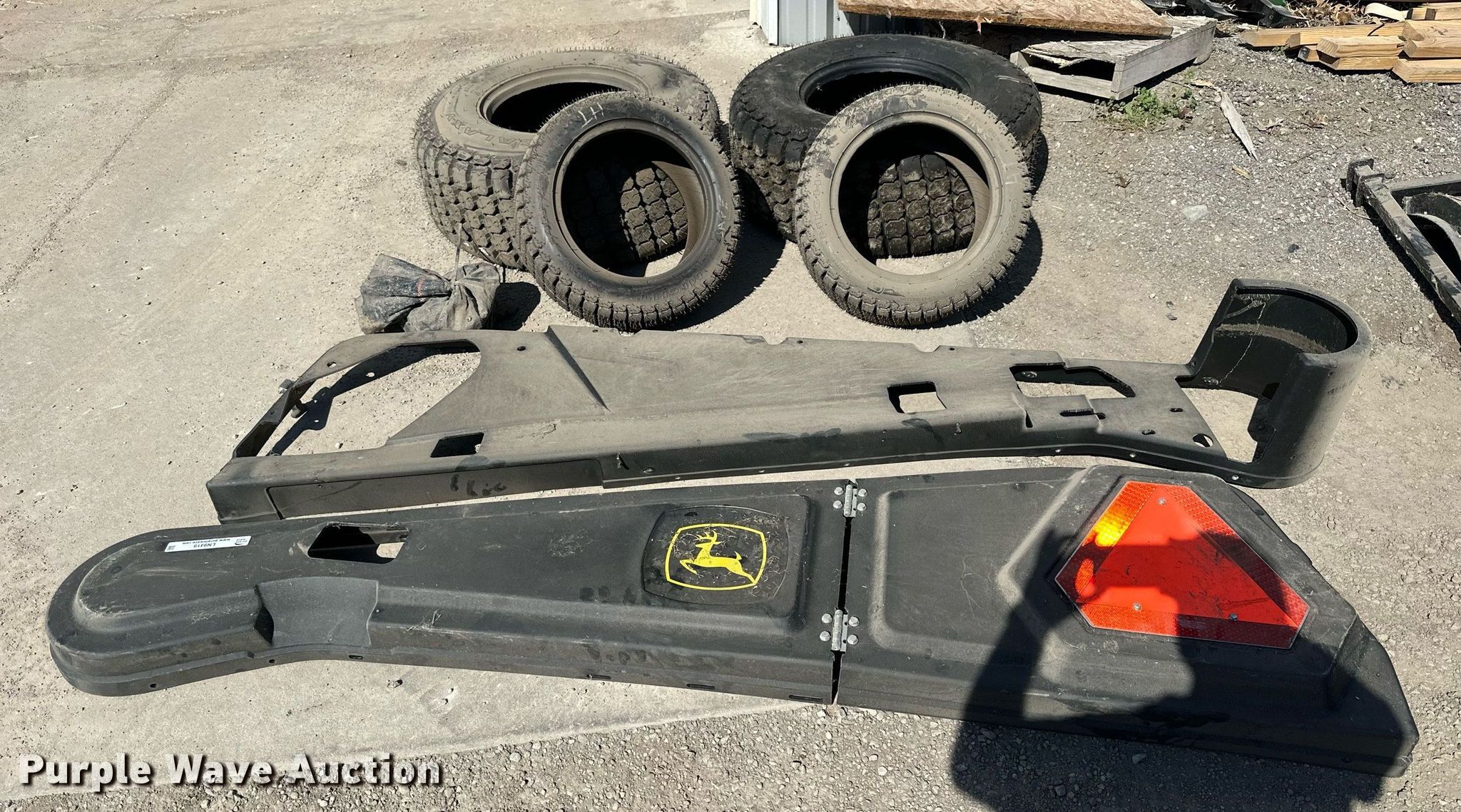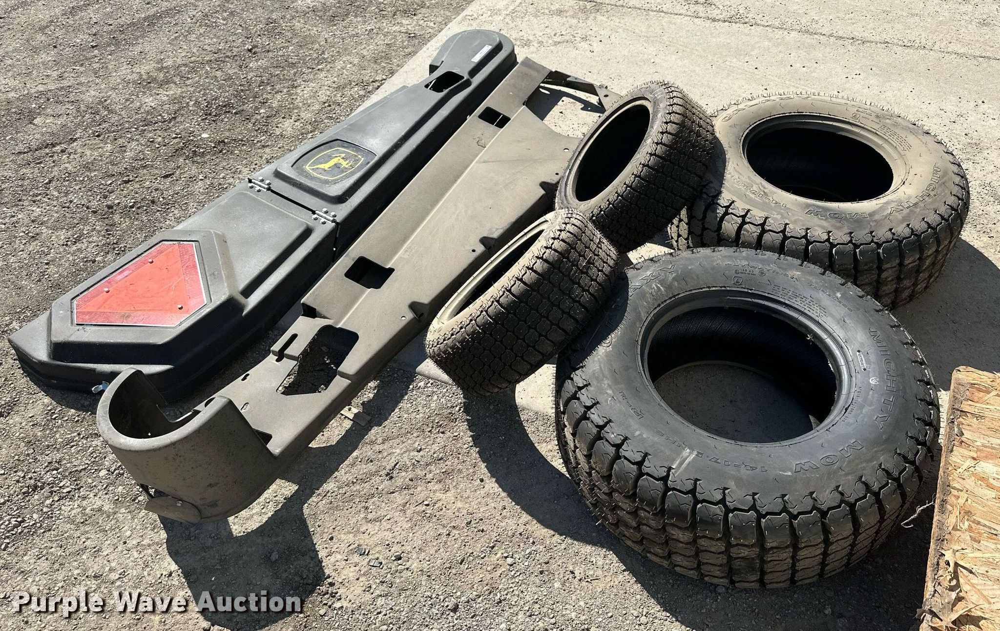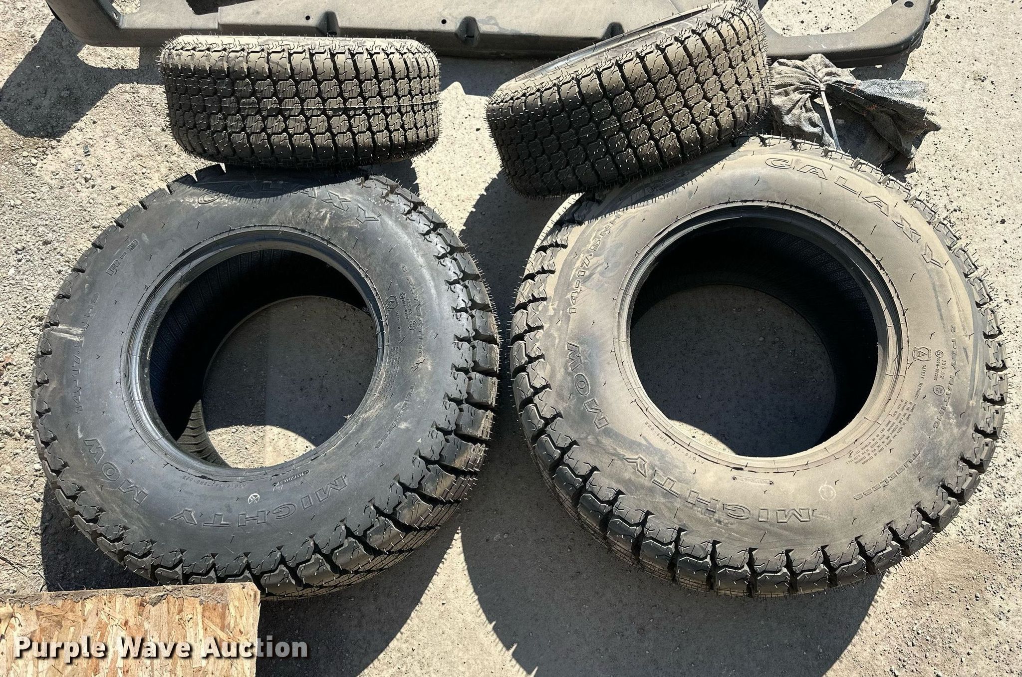 Purple Wave is selling a used Ag Equip. Other in Kansas. This item is a Ag equipment parts with the following: John Deere swather / windrower belt shield, (2) 14-17.5 tires, (2) 23x8.5-14 tires, (8) Kenda Turf 505 24x12.00-12 tires and more, ICN: LN9414