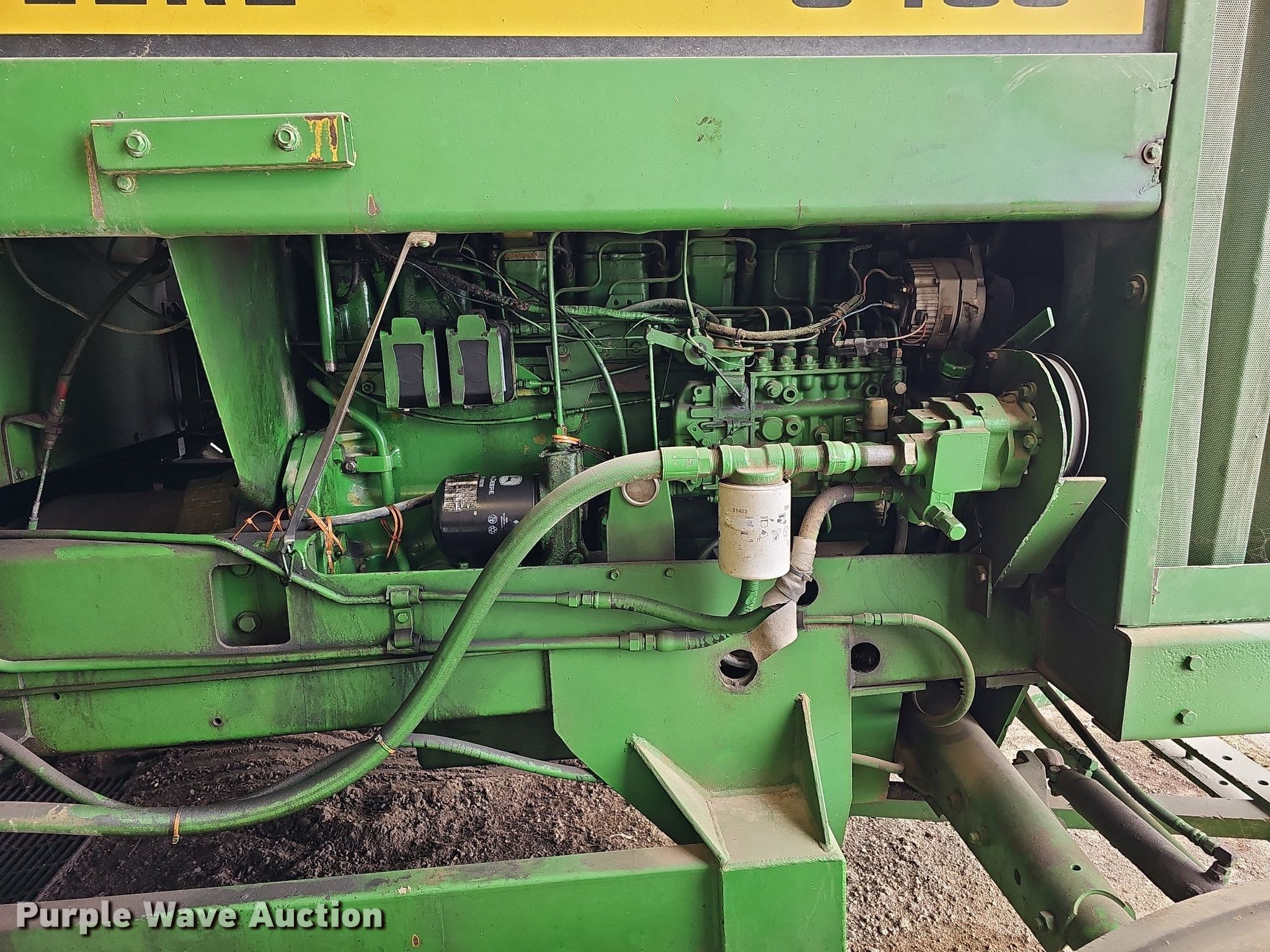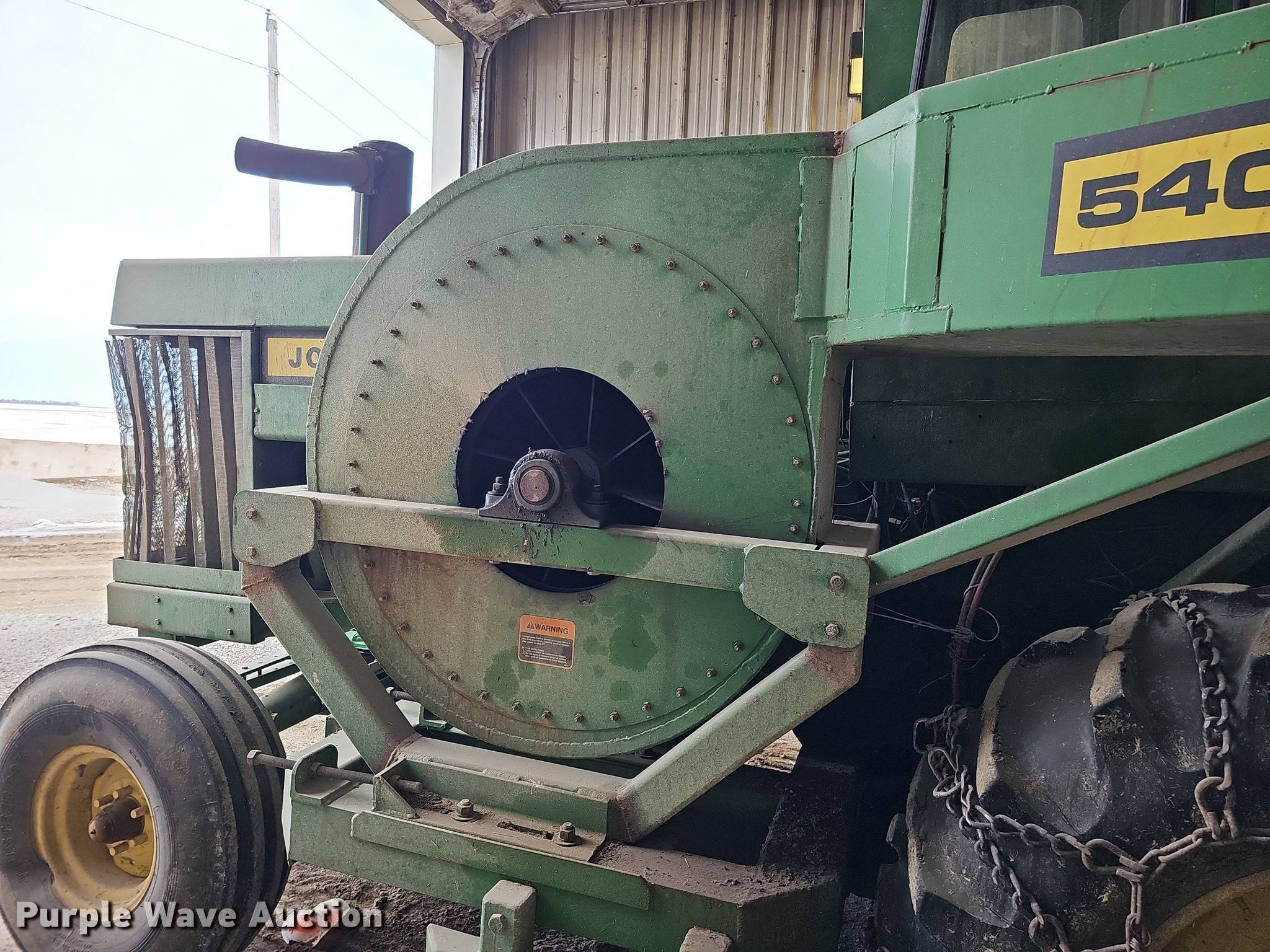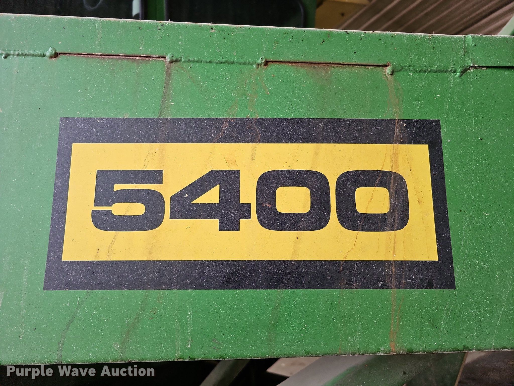 1995 John Deere 5400 bunk sweeper. Engine hours: 5,409 on meter, Serial: 049133. Engine John Deere, Cylinders: 6, Fuel type: Diesel. Transmission Hydrostatic, Differential lock. Operators station AC, Heat. Tires Front: 11.00-16, Rear: 18.4/15-26. Features 12"W blower head. Notes Non-operational engine, Non-operational unit. M Farm Inc.. 1255 County Road 130. Osceola, NE 68651