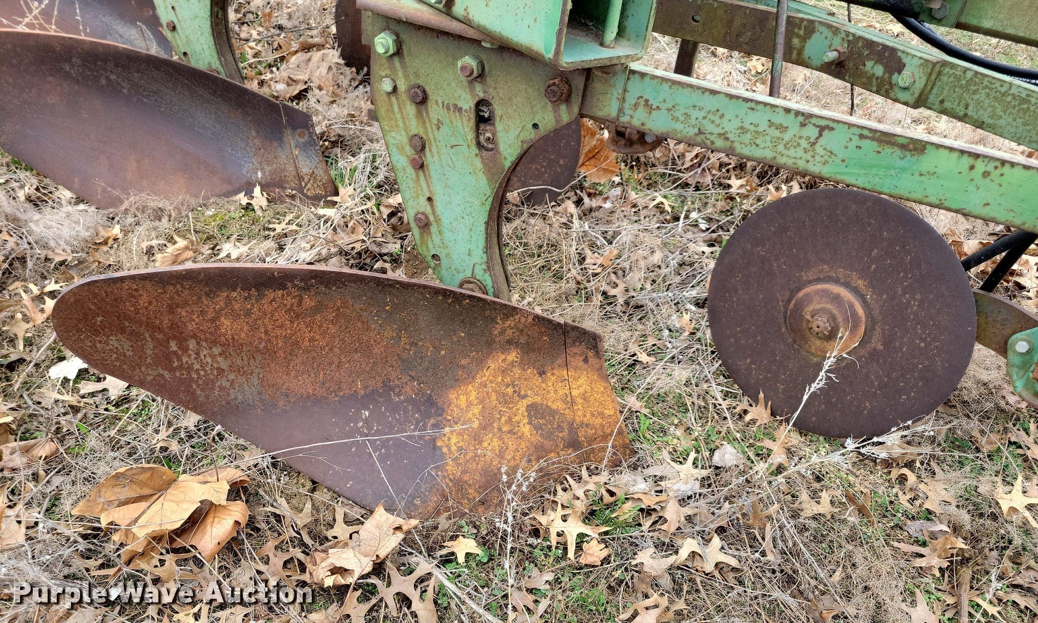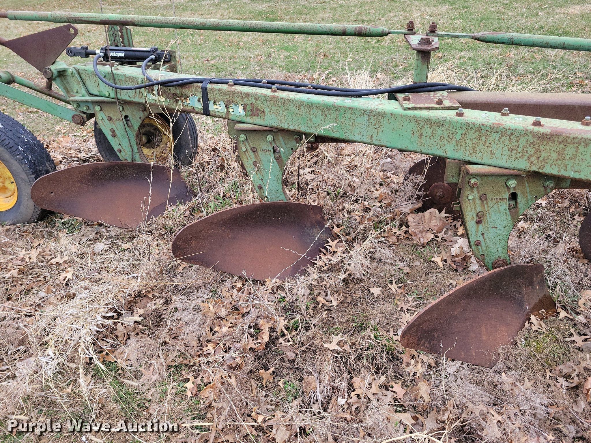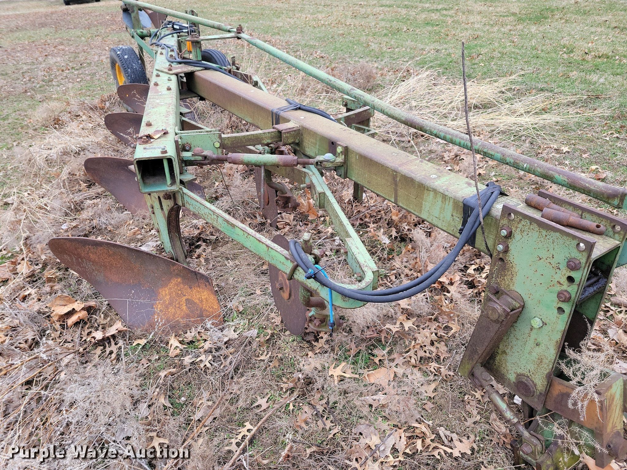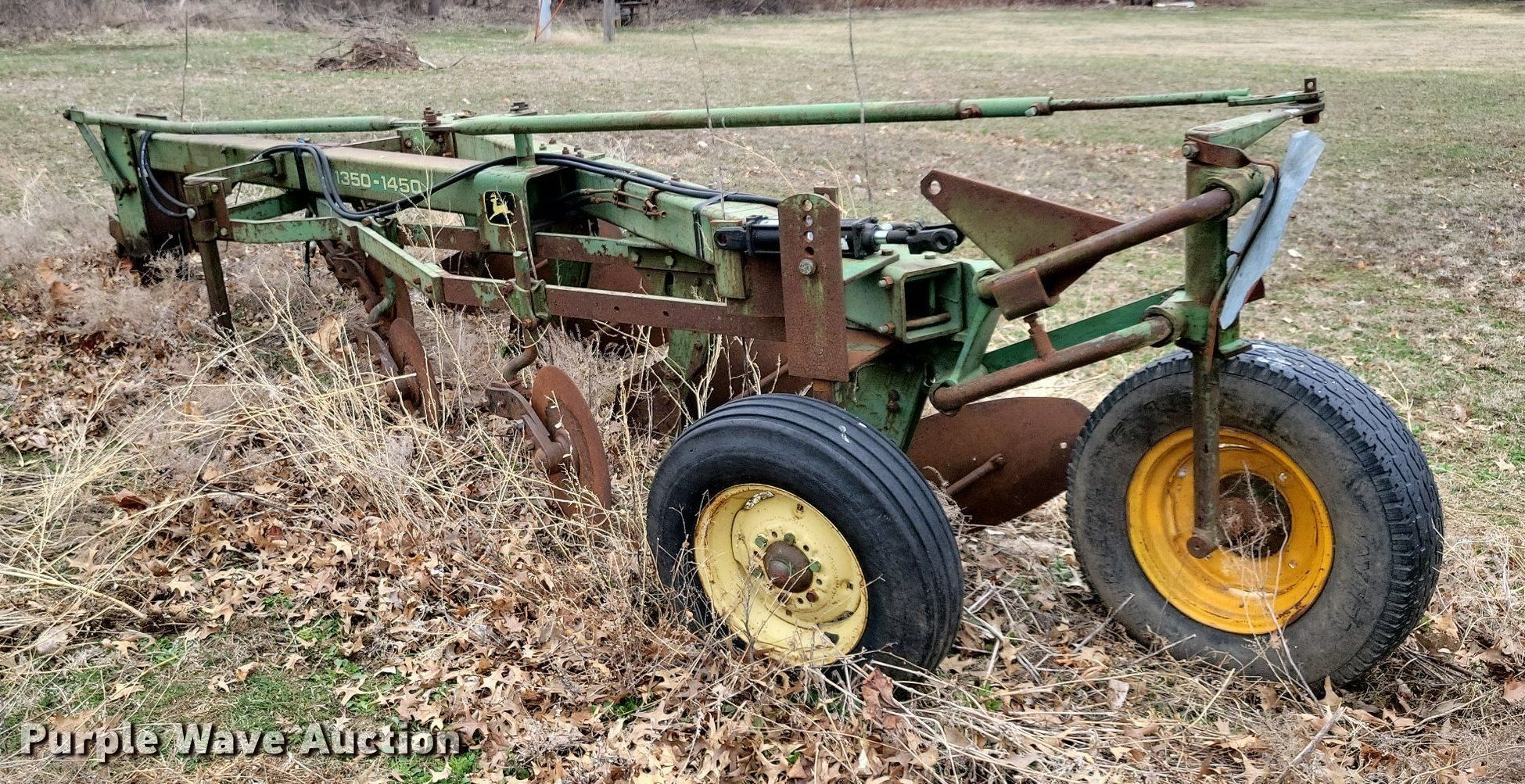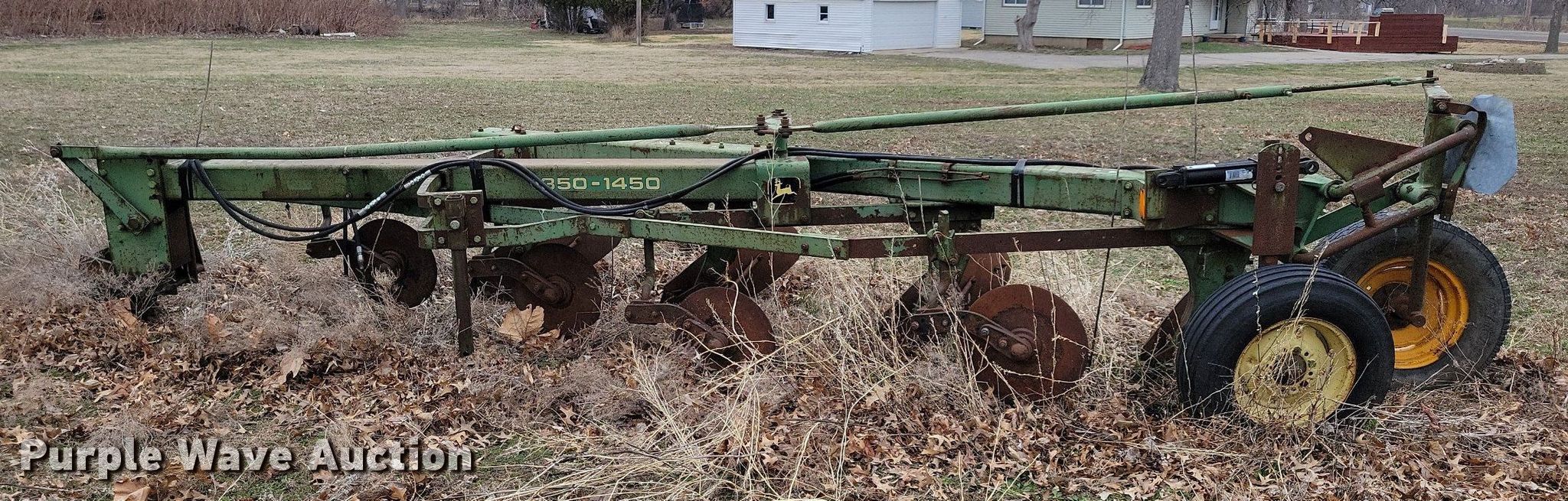 Purple Wave is selling a used Plow in Iowa. This item is a John Deere 1350-1450 four bottom plow with the following: Overall width: 8', Serial: 125516