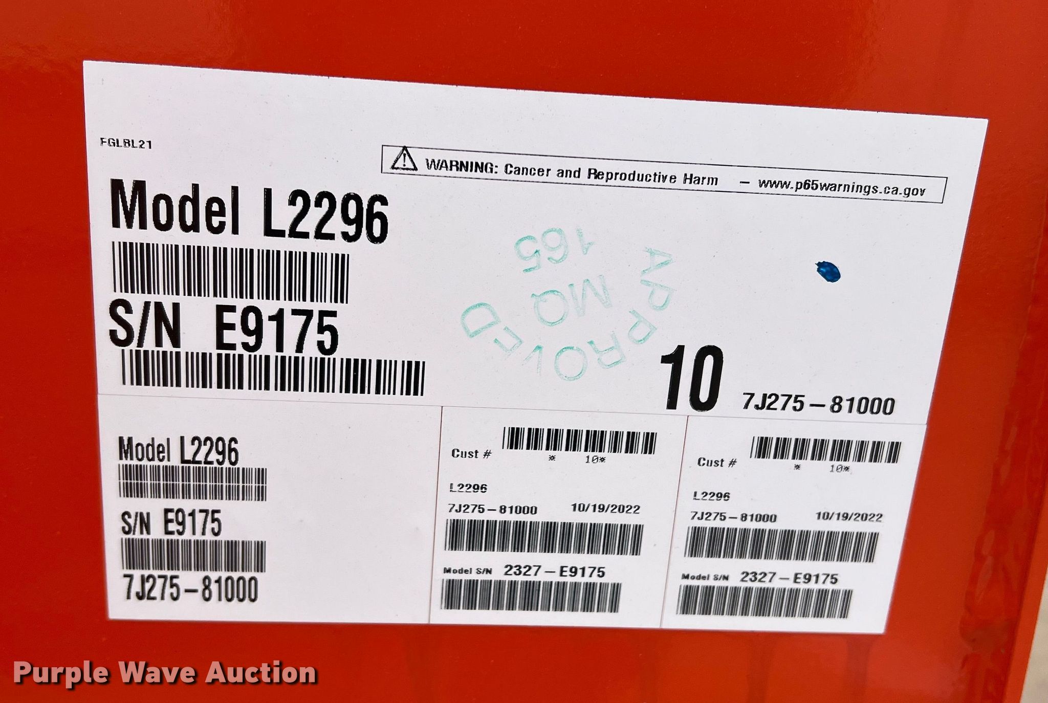 Kubota L2296 72"W bucket. Serial: E9175. Kubota Tractor Corp. 1000 Kubota Dr. Grapevine, TX 76051