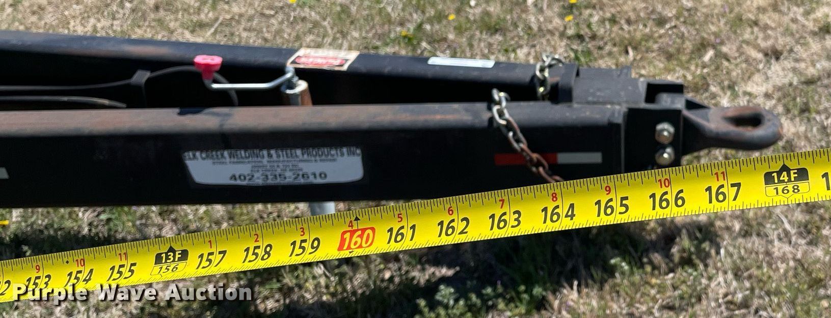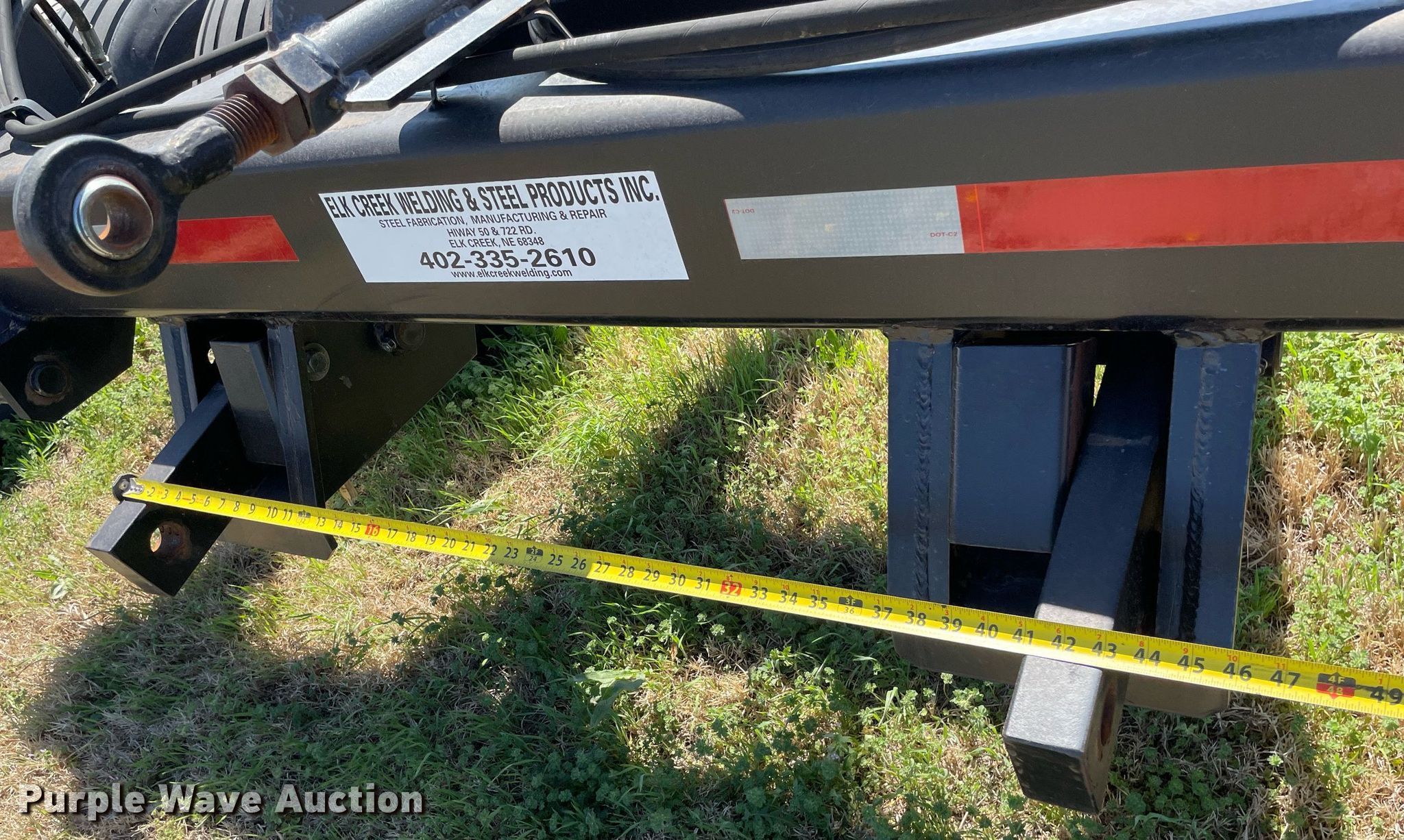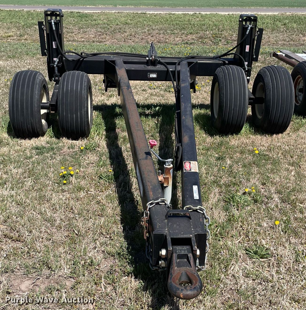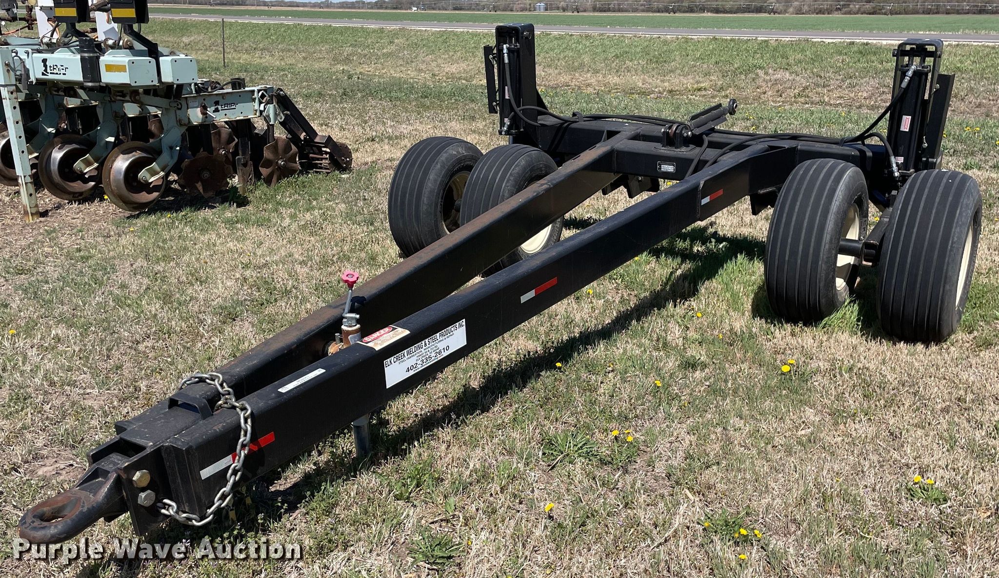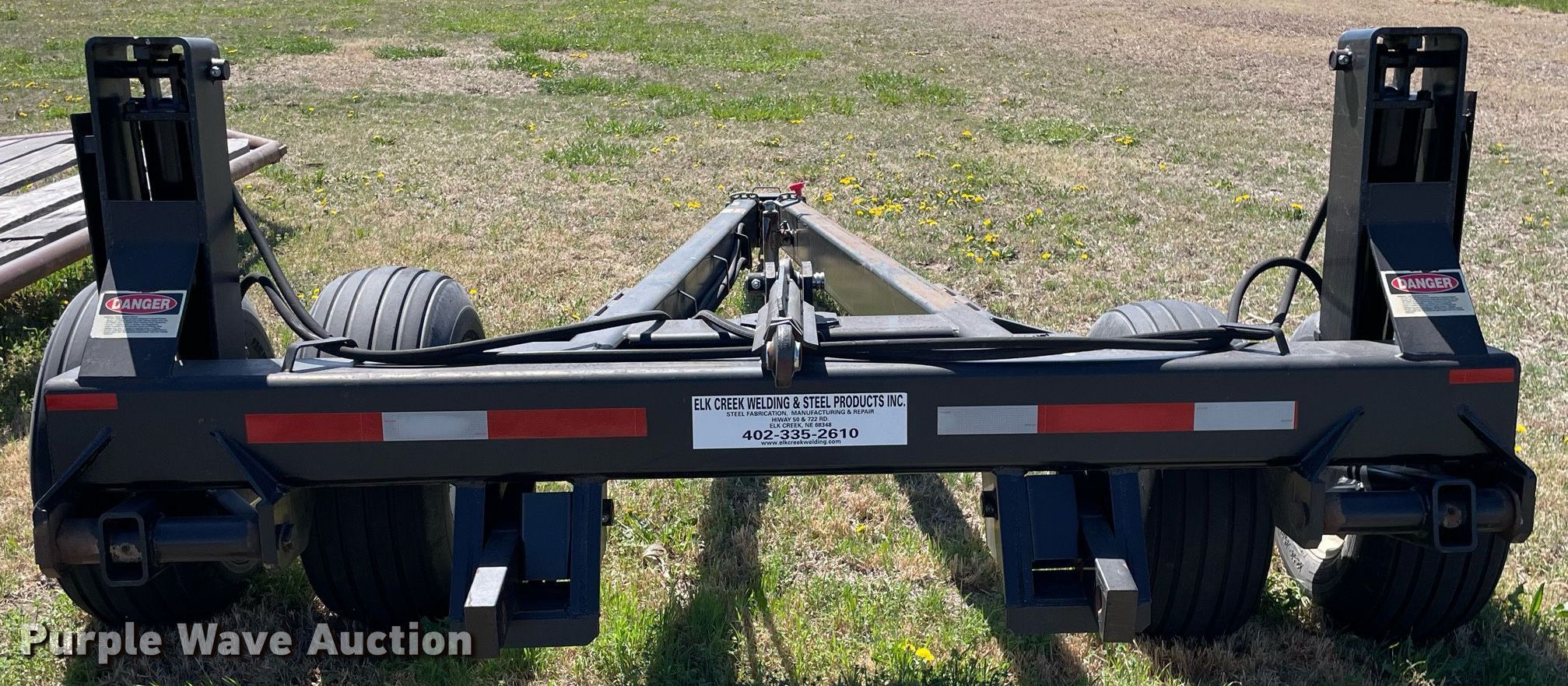 Elk Creek Welding and Steel Products 3PTO450 implement dolly. Serial: 11172617, Approx. 14'L x 10'W, Tire size: 12.5L-15. 1850 Avenue Q. Sterling, KS 67579