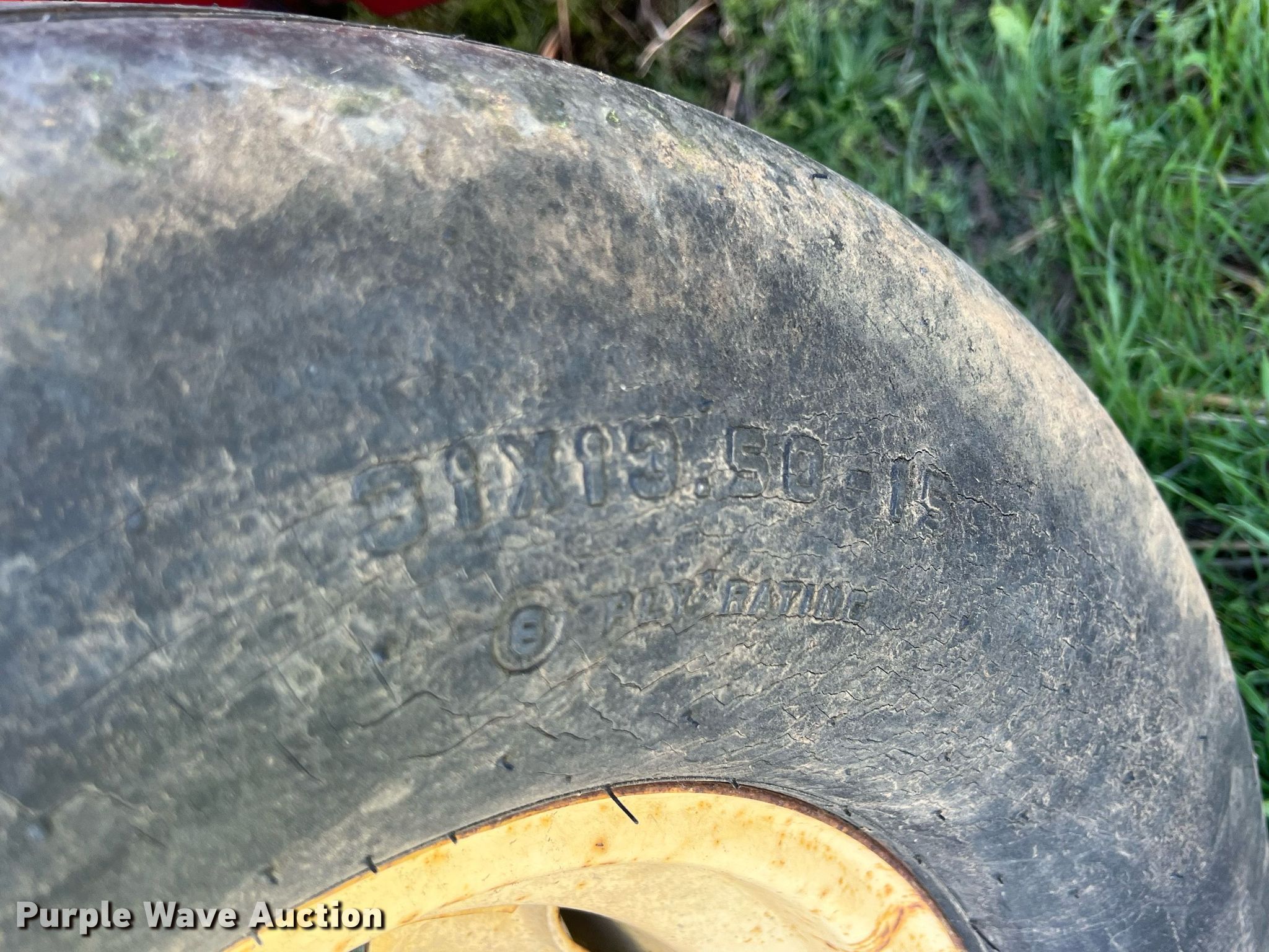 1988 New Holland 855 round baler. Serial: 769069. Features PTO: 540, Pickup width: 6' 6", Bale size: 5'x6', Twine tie, Net-wrap. Tires Size: 31x13.50-15NHS. Notes Air leak, Non-operational electronics. Davied Farms LLC. 256 South 20th Street. Walnut, KS 66780