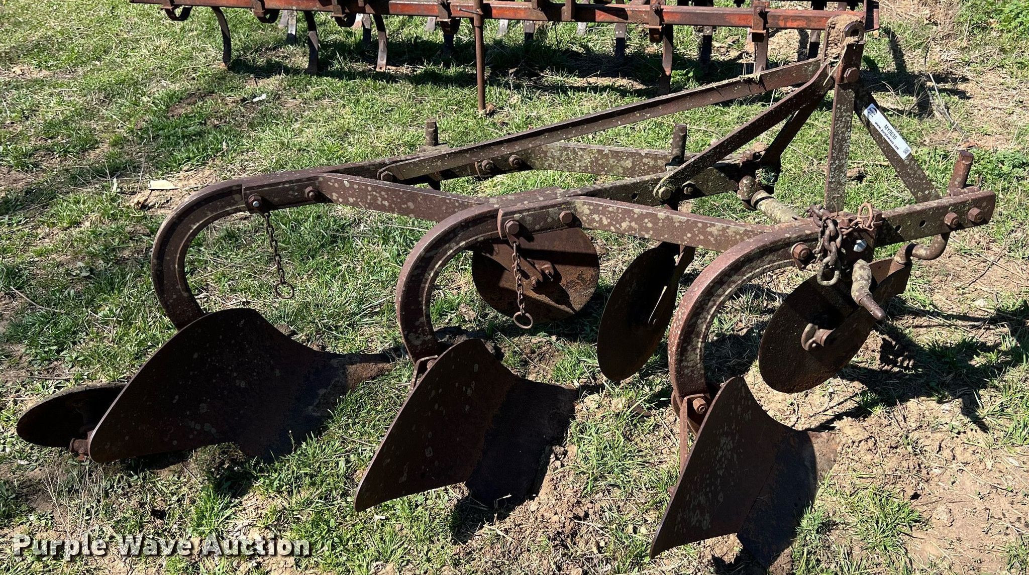 (2) pieces of tillage equipment. Three bottom plow. Features. Hitch: Three point. Spring tooth harrow Overall width: 11' 6". Features Shanks: 21, Attachments Hitch: Three point. Davied Farms LLC. 256 South 20th Street. Walnut, KS 66780