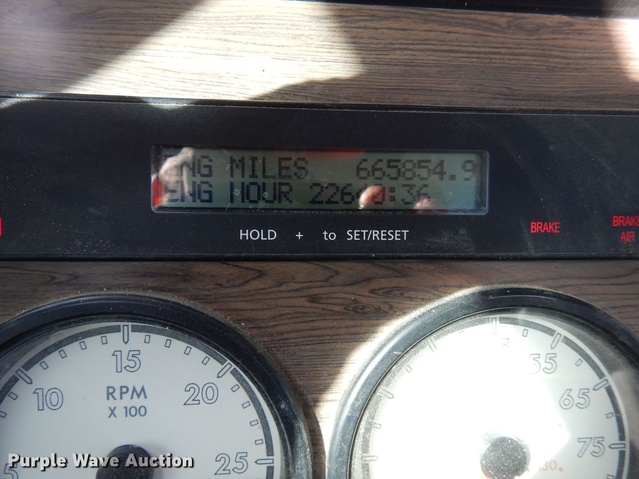 2011 Freightliner Coronado semi truck. Miles: 218,901 on odometer, Hours: 22,640 on meter, VIN: 1FUJGNDV1BDBB8256, Unit #: 10408. Engine Detroit Diesel DD13, Displacement: 12.8L, Cylinders: 6, Fuel type: Diesel, Engine brake. Transmission Eaton Fuller, Manual, Speed: 10. Chassis Axles: Tandem, Differential lock: Inter-axle, Suspension: Air, Brakes: Air, PTO, Wet kit, Truck chassis: 15' 9", GVWR: 53,220 lbs FAWR: 13,220 lbs, IAWR: 20,000 lbs, RAWR: 20,000 lbs. Interior AC, Heat, Heated mirrors, Cruise control. Features Fifth wheel type: Air operated, Sliding, Fuel tank: Dual. Tires Size: 11R22.5. Notes Transmission removed, Wet kit disconnected , Non-operational unit. Colorado title. Titles will be distributed after confirmation of payment and removal. Title distribution may be delayed up to 30 days from verification of funds. Seaboard Foods. 53022 Co Rd 12. Holyoke, CO 80734