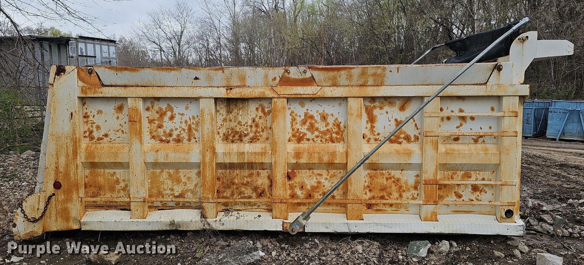 Ox Bodies 19-22YDS dump bed. Serial: 705126AR. Features Capacity: 22 cu.yd., 16' L x 96" W, Side height: 57.5", Side board height: 8", Bed type: Steel, Roll tarp, End gate: Air operated. It's Got To Go. 3723 Miami St. Omaha, NE 68111
