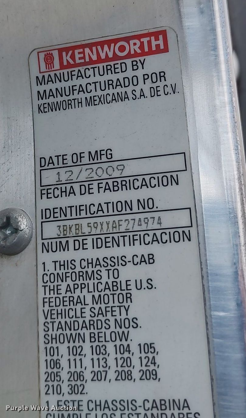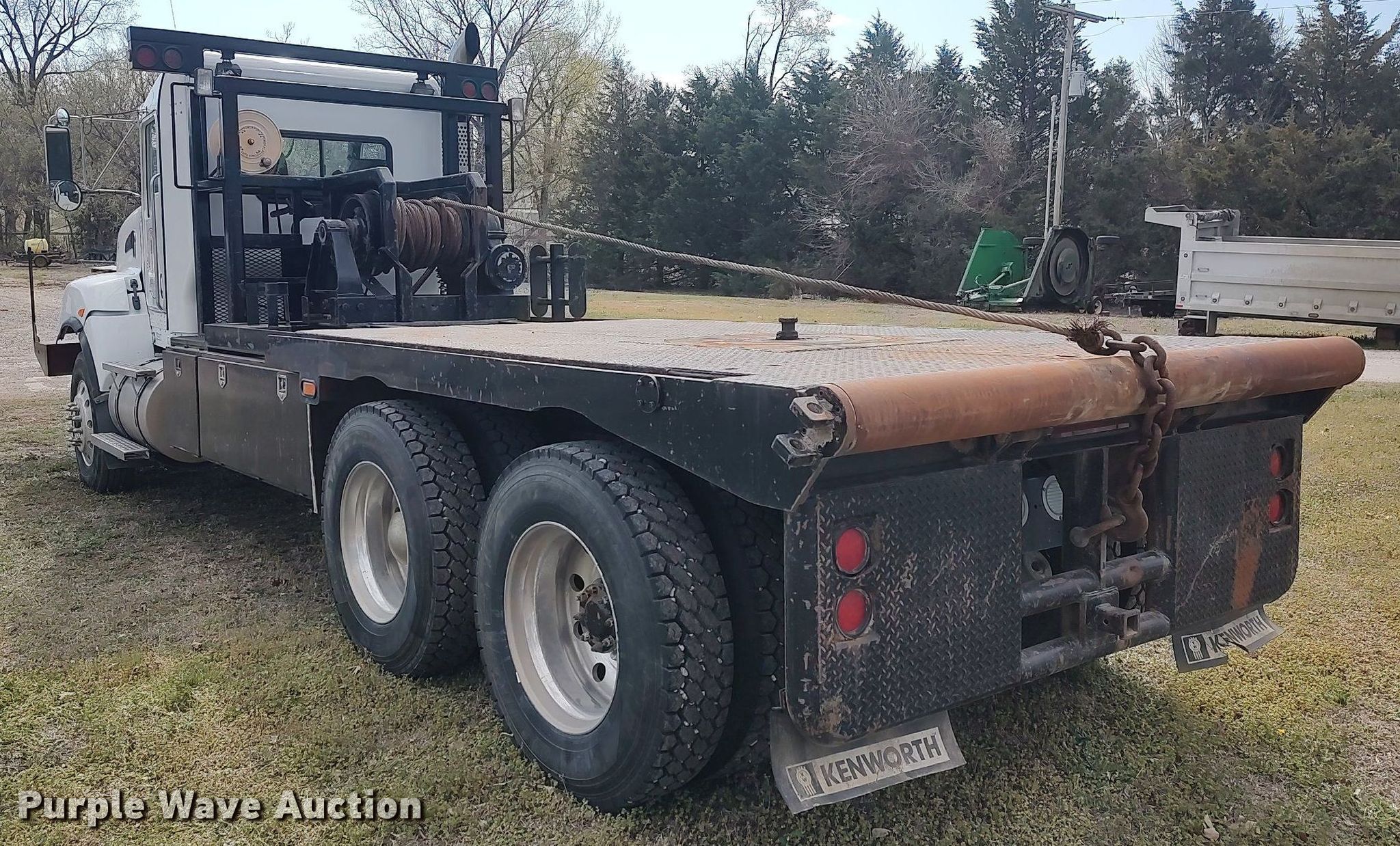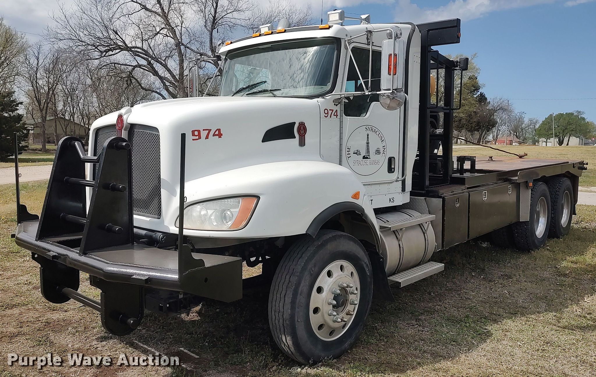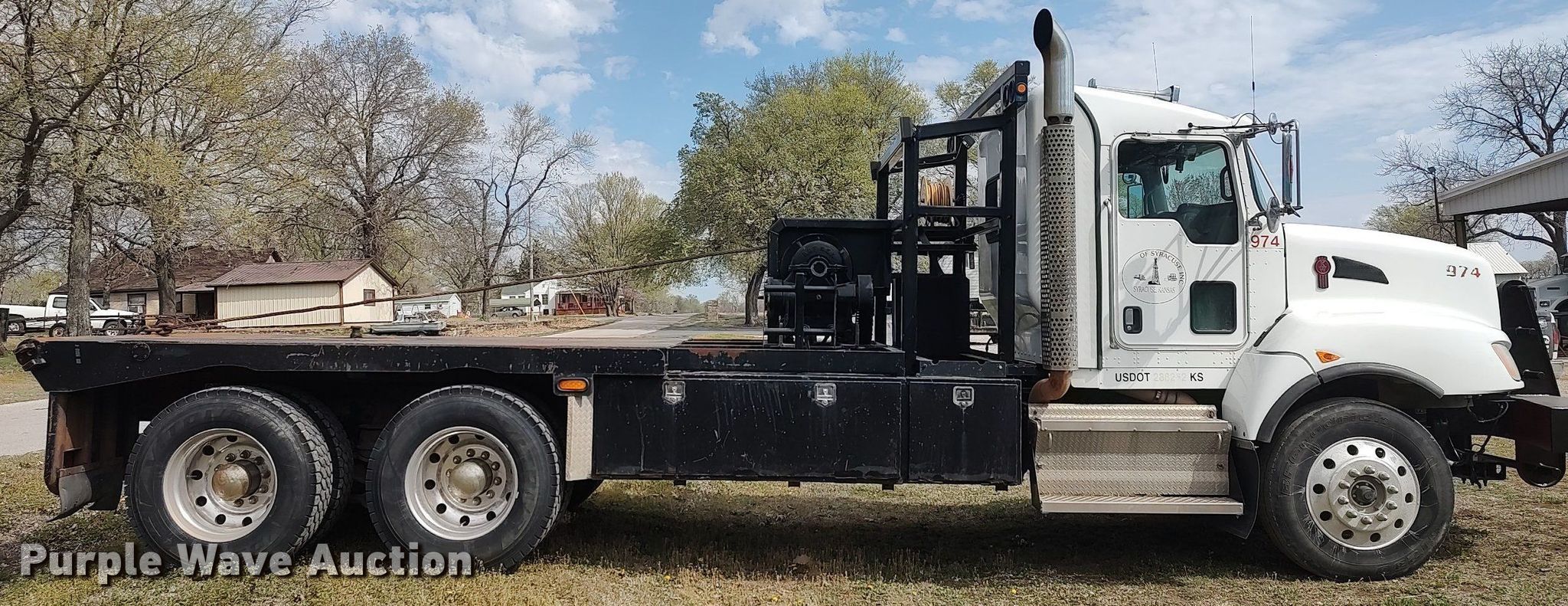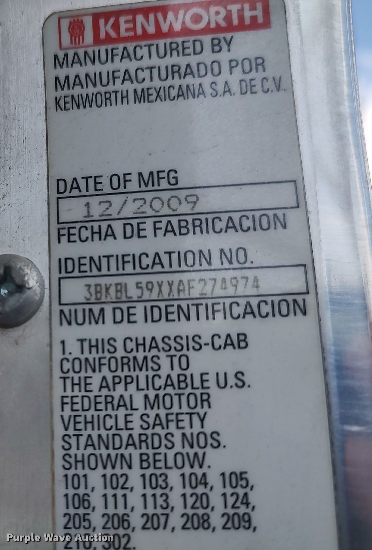 2010 Kenworth T470 winch truck. Miles: 122,947 on odometer, Hours: 8,320 on meter, VIN: 3BKBL59XXAF274974. Engine Cummins, Displacement: 8.9L, Cylinders: 6, Fuel type: Diesel, Engine brake. Transmission Manual. Chassis Axles: Tandem, Suspension: Spring over walking beam, Brakes: Air, PTO, Differential lock: Full. Interior AC, Heat, Power windows, Power locks, Cruise control. Features Flatbed 19' L x 96" W, Winch Rufnek, Capacity: 45,000 lbs, Rolling tailboard. Tires Size: 11R24.5. Notes EGR delete, Dash warning indicator: Check engine. Kansas title. Title distribution may be delayed up to 14 days from verification of funds. Moline, KS 67353