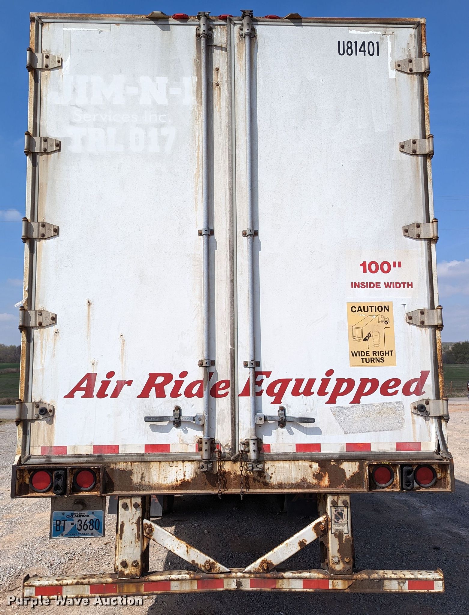 2007 Great Dane 7411TP-SA dry van trailer. VIN: 1GRAA06277J619523. Dimensions Overall: 53' L x 102" W. Features Deck type: Wood. Chassis Landing gear: Dual, Suspension: Air, Brakes: Air, Axles: Tandem, GVWR: 68,000 lbs, GAWR: 18,000 lbs. Tires Steel wheels, Size: 295/75R22.5. Oklahoma title. Title distribution may be delayed up to 30 days from verification of funds. Jim-N-I Services, Inc. Retirement Auction - Open Inspection May 3rd. 3549 County Street 2940. Bradley, OK 73011