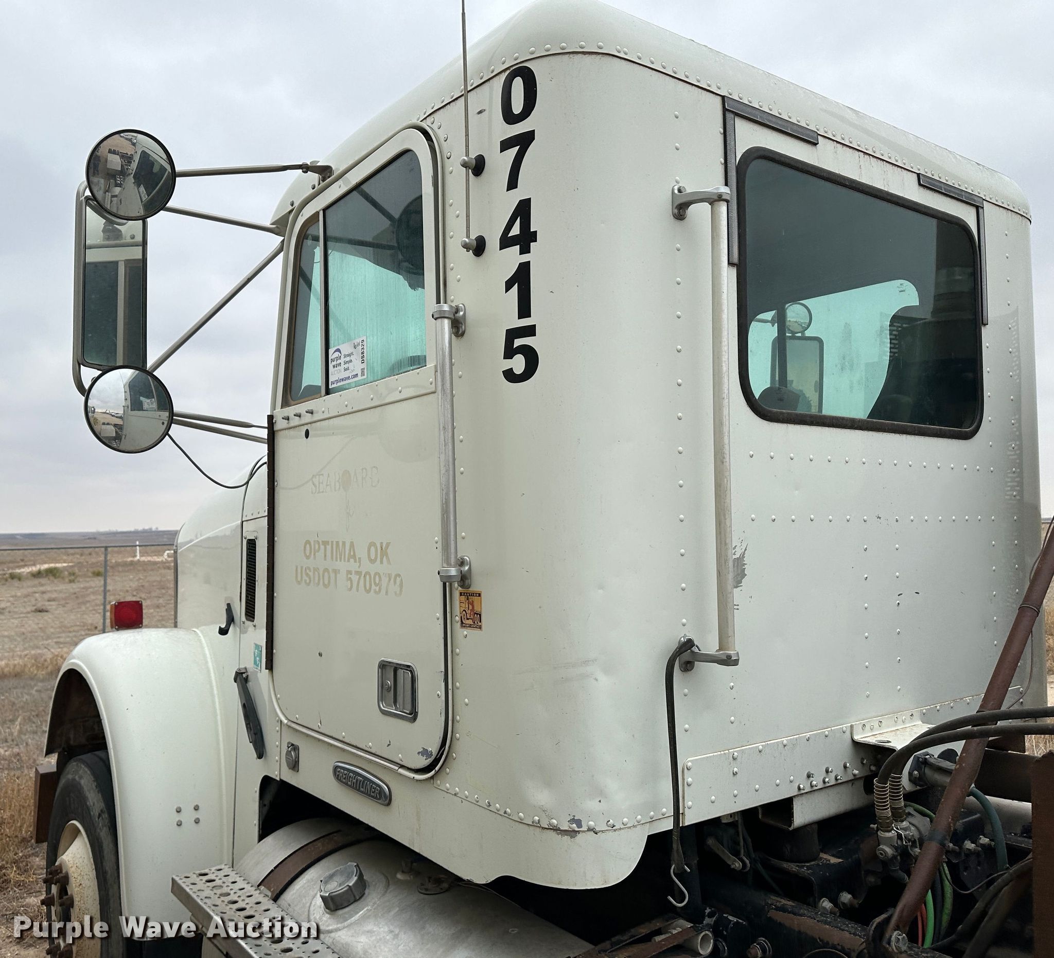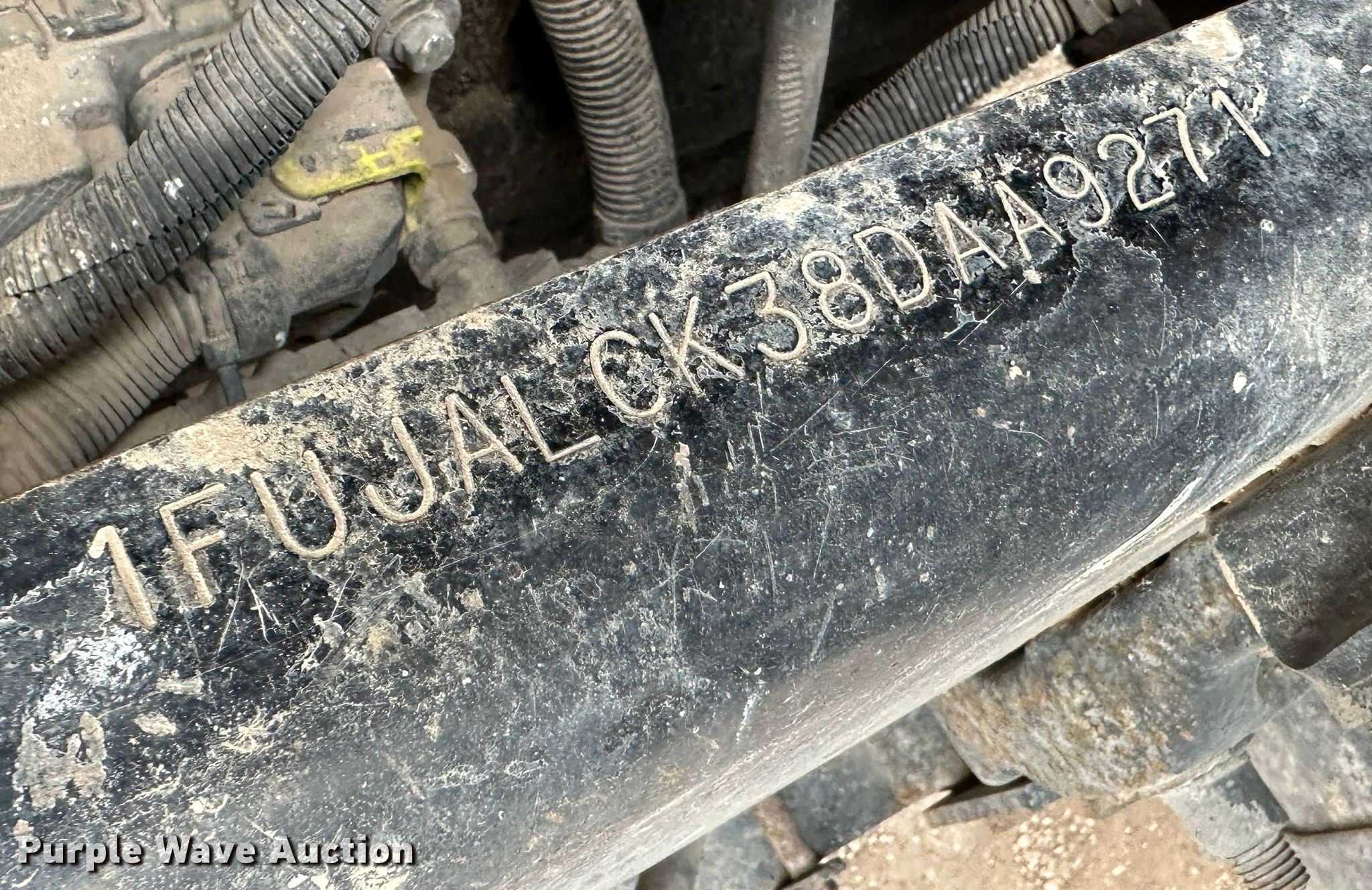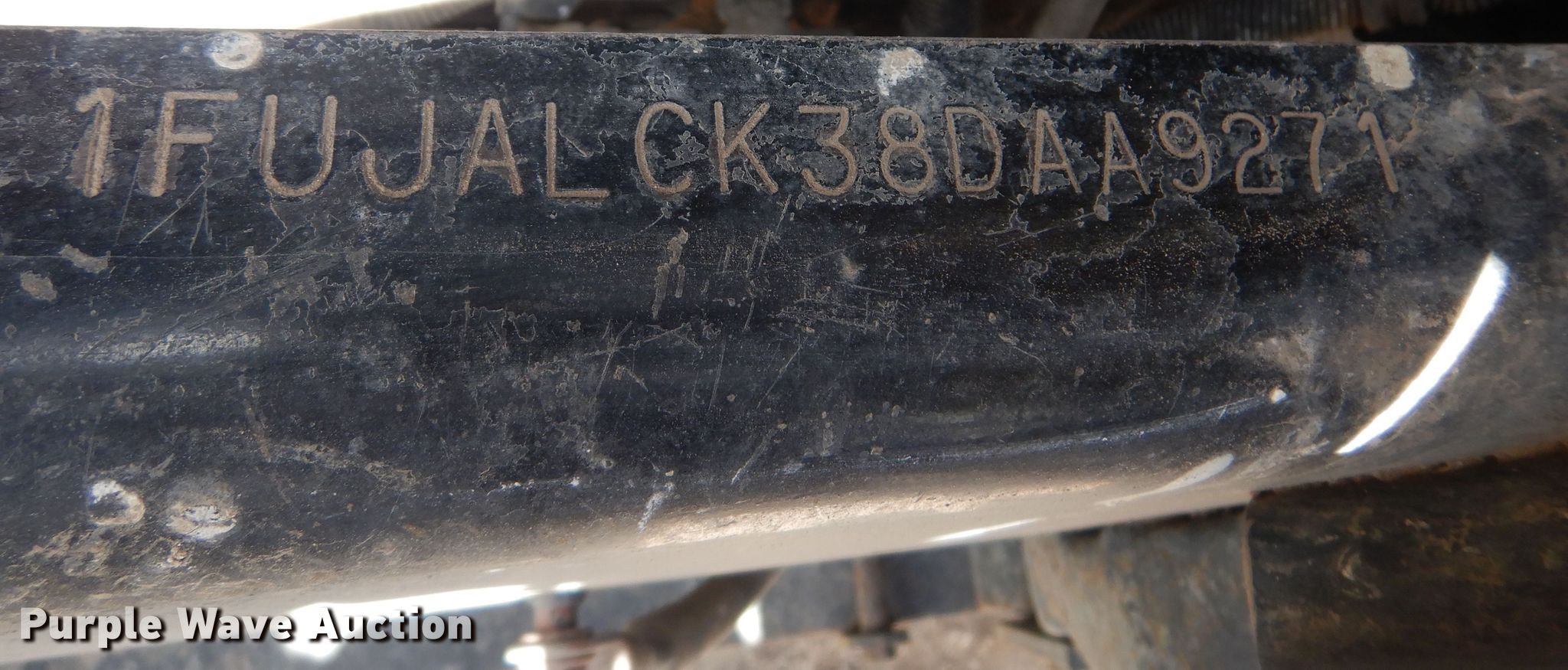 2008 Freightliner FLD semi truck. Miles: Unknown, VIN: 1FUJALCK38DAA9271, Unit #: 7415. Engine Detroit Diesel, Displacement: 12.7L, Cylinders: 6, Fuel type: Diesel, Engine brake. Transmission Eaton Fuller, Manual, Speed: 10. Chassis Axles: Tandem, Differential lock: Full, Suspension: Air Dump valves, Brakes: Air, PTO, Wet kit. Interior AC, Heat. Features Deck plate: Aluminum, Fifth wheel type: Air operated, Sliding, Fuel tank: Dual. Tires Size: 11R22.5. Notes Dead battery, Non-operational unit. Oklahoma title. Mileage has not been verified. Odometer discrepancy will be marked on the title. Titles will be distributed after confirmation of payment and removal. Title distribution may be delayed up to 30 days from verification of funds. Seaboard Foods. Optima, OK 73945