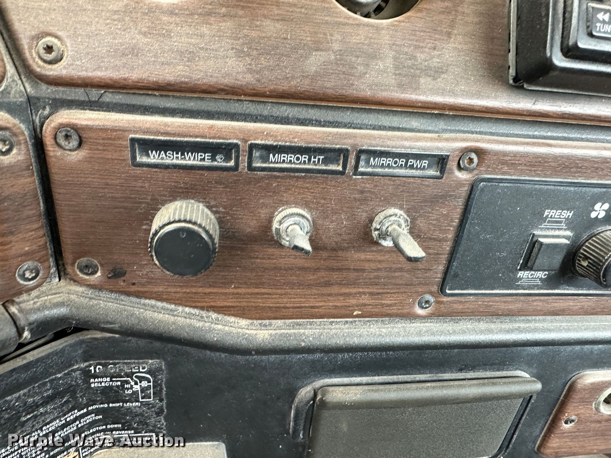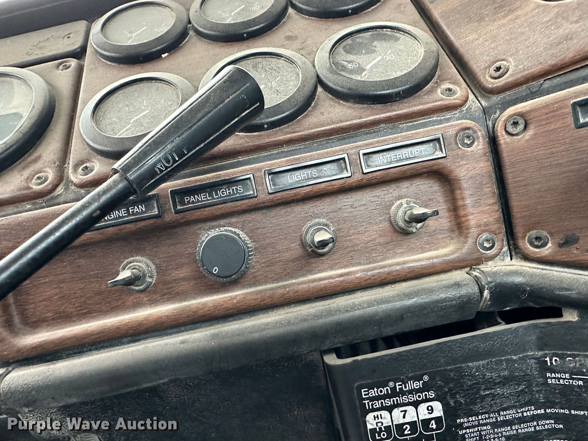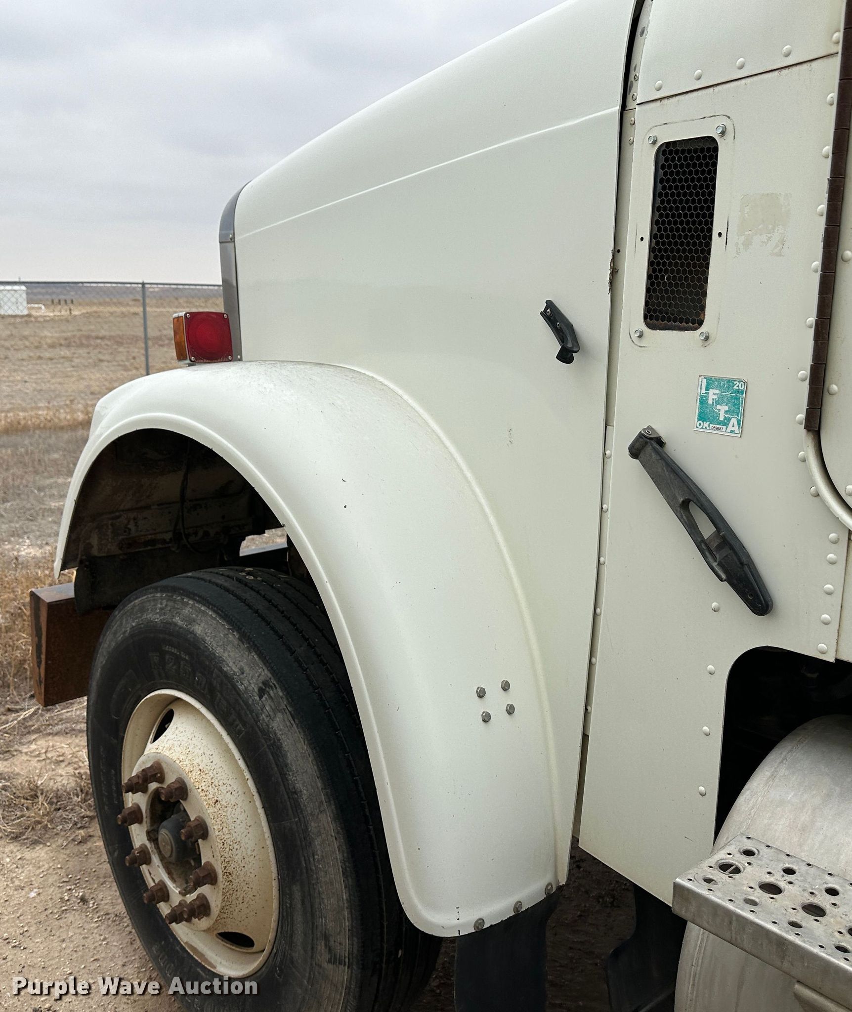 2008 Freightliner FLD semi truck. Miles: Unknown, VIN: 1FUJALCK38DAA9271, Unit #: 7415. Engine Detroit Diesel, Displacement: 12.7L, Cylinders: 6, Fuel type: Diesel, Engine brake. Transmission Eaton Fuller, Manual, Speed: 10. Chassis Axles: Tandem, Differential lock: Full, Suspension: Air Dump valves, Brakes: Air, PTO, Wet kit. Interior AC, Heat. Features Deck plate: Aluminum, Fifth wheel type: Air operated, Sliding, Fuel tank: Dual. Tires Size: 11R22.5. Notes Dead battery, Non-operational unit. Oklahoma title. Mileage has not been verified. Odometer discrepancy will be marked on the title. Titles will be distributed after confirmation of payment and removal. Title distribution may be delayed up to 30 days from verification of funds. Seaboard Foods. Optima, OK 73945