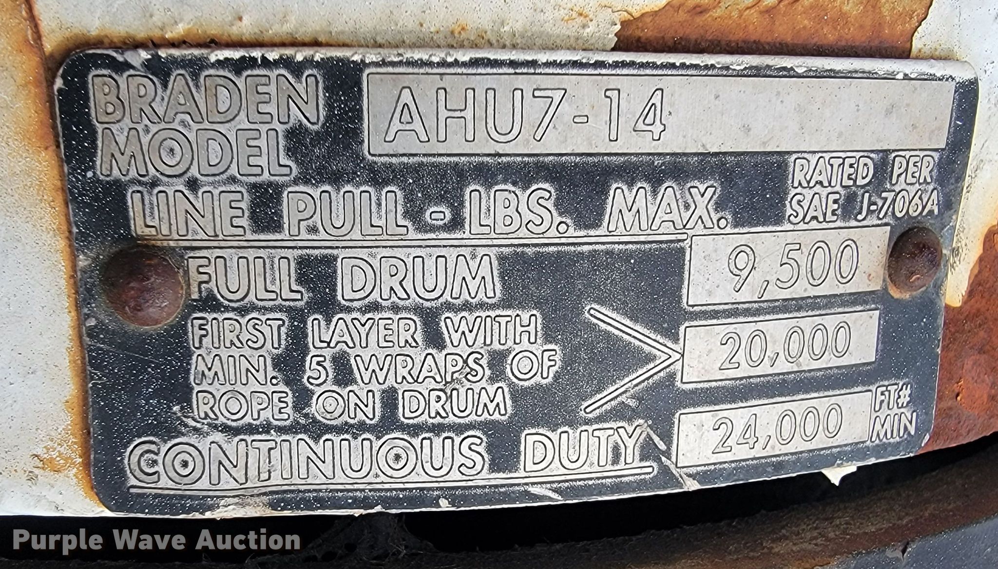 2006 Trail-Eze tilt deck equipment trailer. VIN: 1DA71X1626P018359. Dimensions Overall: 40' L x 98" W, Deck: 40' L x 8' W, Deck height: 50". Features Deck type: Steel, Winch Braden AHU7-14, Capacity: 20,000 lbs, Hydraulic controls: Remote control. Chassis Landing gear: Dual, Suspension: Spring, Brakes: Air, Sliding, GVWR: 23,220 lbs. Tires Size: 255/70R22.5. Missouri title. Title distribution may be delayed up to 14 days from verification of funds. Nate's Concrete Pumping LLC. 33 Doyle Rd. Eldon, MO 65026