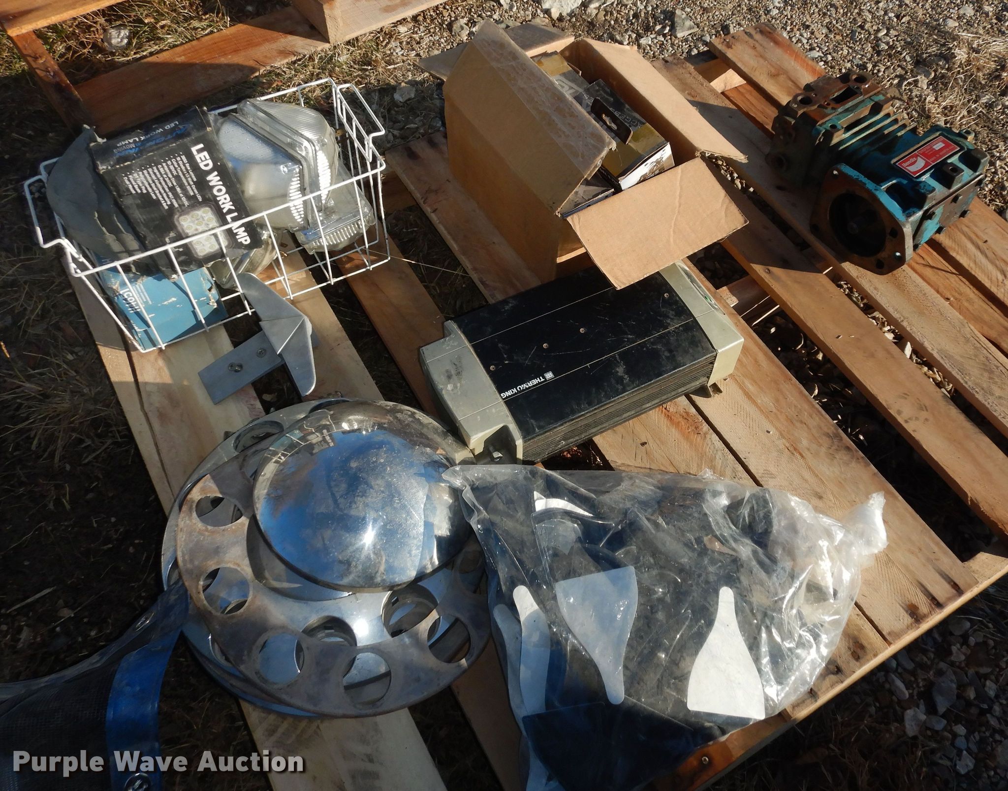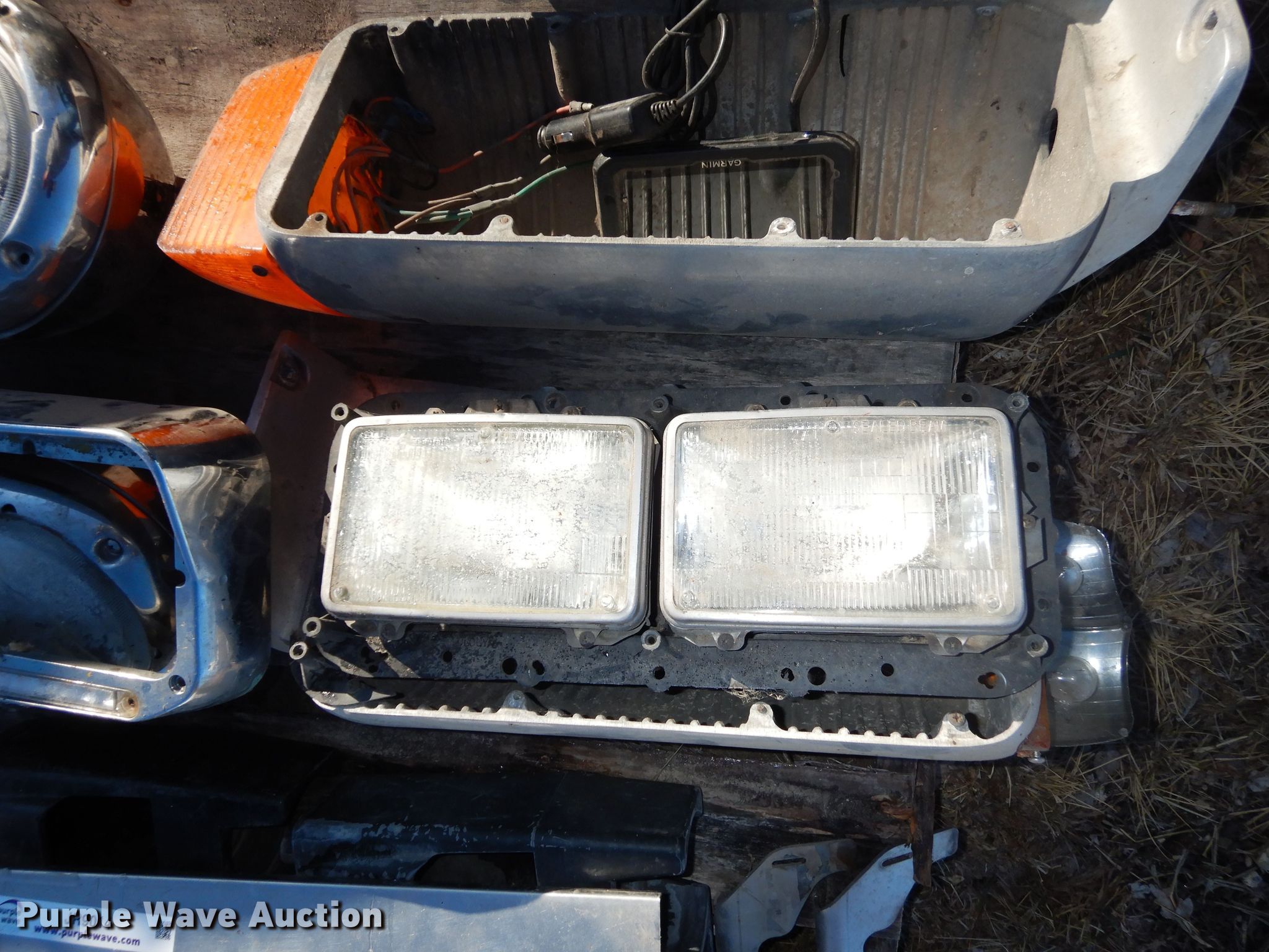 Purple Wave is selling a used Truck Part and Attach. in Kansas. This item is a Truck parts with the following: Headlights, Headlight frame, Engine hood screen cover, Thermo King converter, Bendix 550 compressor, (4) Trux 5.75" headlight protectors, Head lamps and more