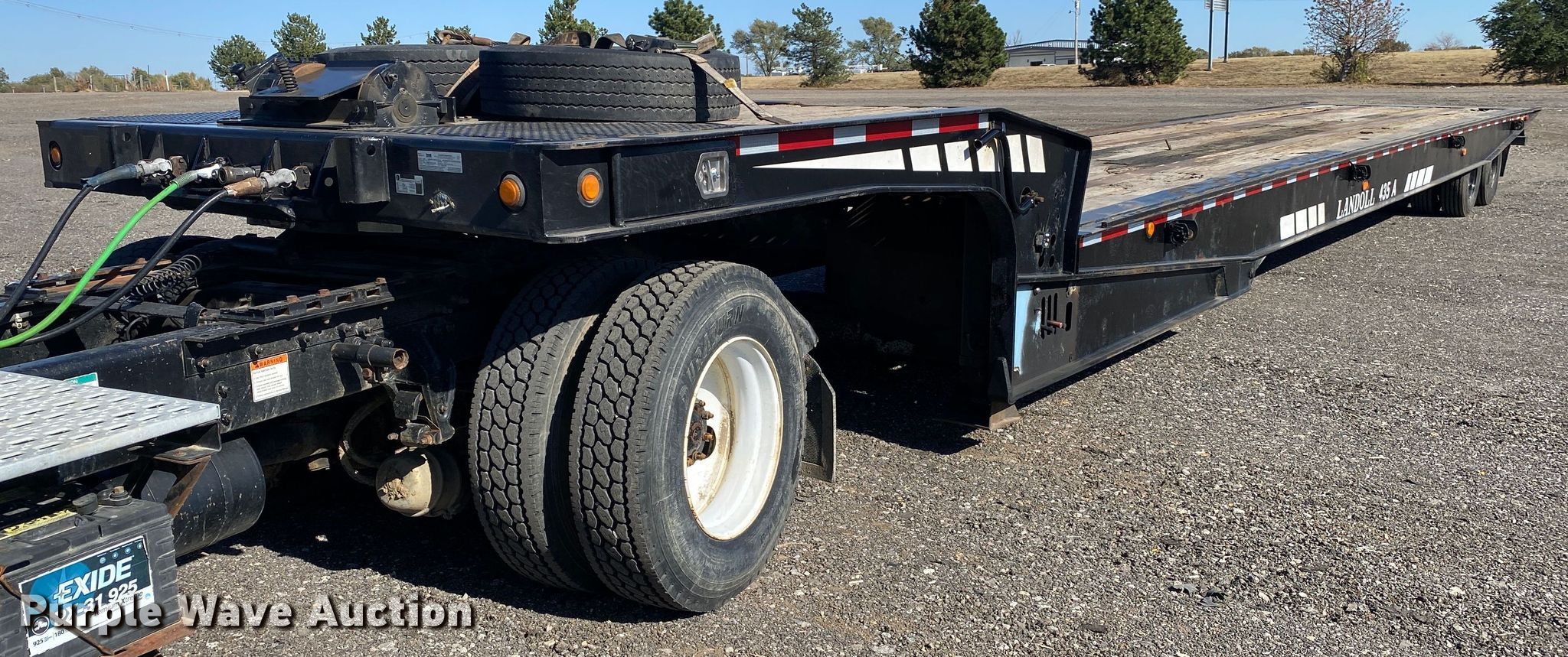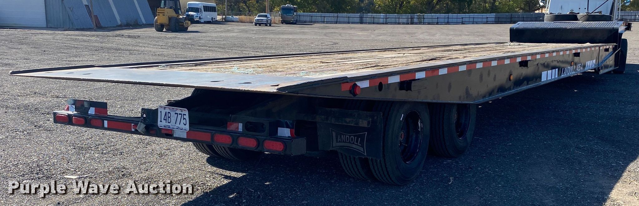 2007 Landoll drop tilt deck equipment trailer. VIN: 1LH435WH971B16225. Dimensions Overall: 53' L x 102" W, Deck: 43' L x 100" W, Top deck length: 10'. Features Deck type: Wood, Winch Braden Winch. Chassis Landing gear: Dual, Suspension: Air, Brakes: Air, Axles: Tandem, GVWR: 87,000 lbs, GAWR: 17,640 lbs. Tires Size: 10R17.5. Oklahoma title. Title distribution may be delayed up to 14 days from verification of funds. 15107 North 137th East Avenue. Collinsville, OK 74021