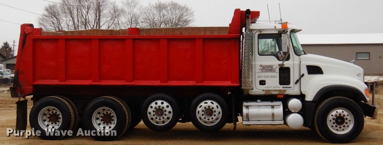Purple Wave is selling a used Construction Dump Truck in Minnesota. This item is a 2004 Mack CV713 Granite dump truck with the following: Miles: 469,163 on odometer, Hours: 21,988 on meter, VIN: 1M2AG11C04M008835