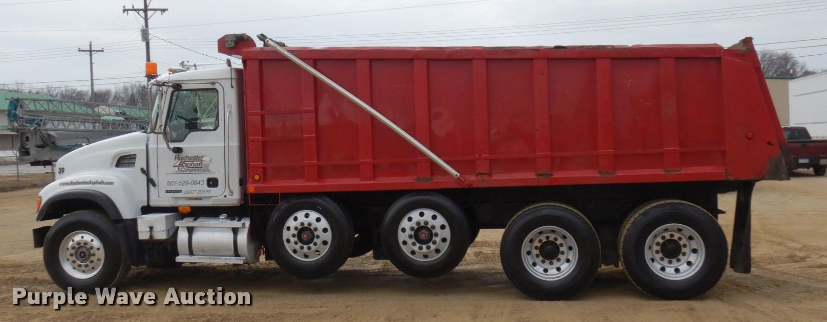 Purple Wave is selling a used Construction Dump Truck in Minnesota. This item is a 2002 Mack CV713 Granite dump truck with the following: Miles: 630,690 on odometer, Hours: 22,946 on meter, VIN: 1M2AG12CX2M002178
