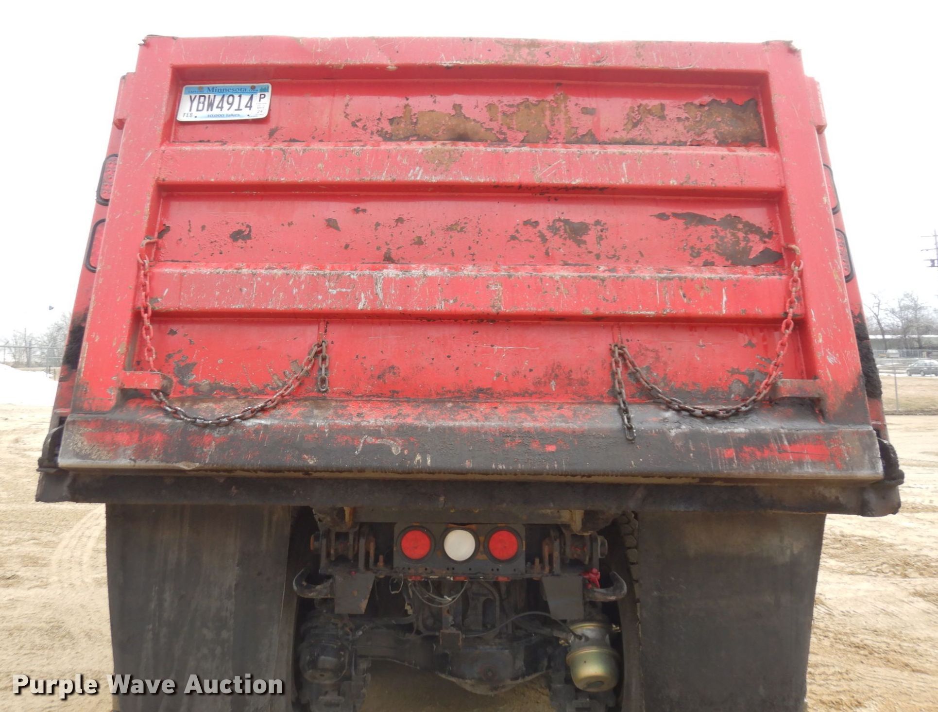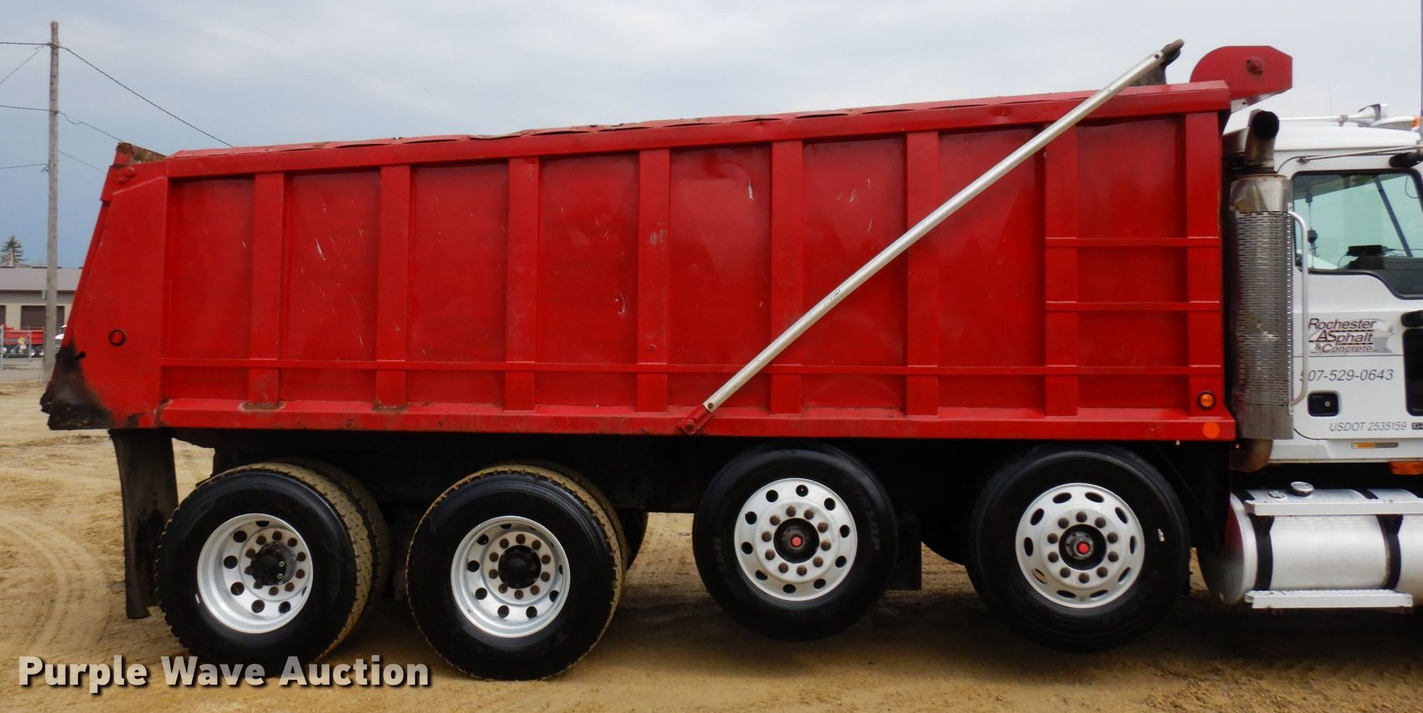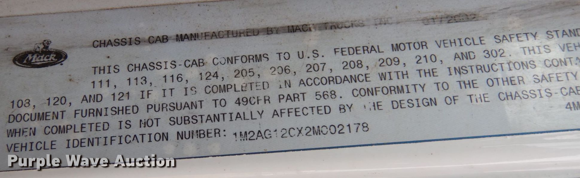 2002 Mack CV713 Granite dump truck. Miles: 630,690 on odometer, Hours: 22,946 on meter, VIN: 1M2AG12CX2M002178. Engine Mack E7-300, Displacement: 12.0L, Cylinders: 6, Fuel type: Diesel. Transmission Allison, Automatic. Chassis Axles: 4, Pusher axle Steerable, Suspension: Camelback, Brakes: Air, PTO. Interior AC, Heat, Heated mirrors, Cruise control. Features Dump bed Oxbodies, 19' 2" L x 8' W, Side height: 58", Bed type: Steel, Liner, Roll tarp, Ram: Single , End gate: Air operated. Tires Front: 385/65R22.5, Rear: 11R22.5, Lift axle: 295/75R22.5. Notes Windshield chipped or cracked. Minnesota title. Title has a lien that will be released following the close of the auction. Title distribution may be delayed up to 30 days from verification of funds. Rochester Asphalt Partial Retirement Sale. 1832 3rd Avenue Southeast. Rochester, MN 55904