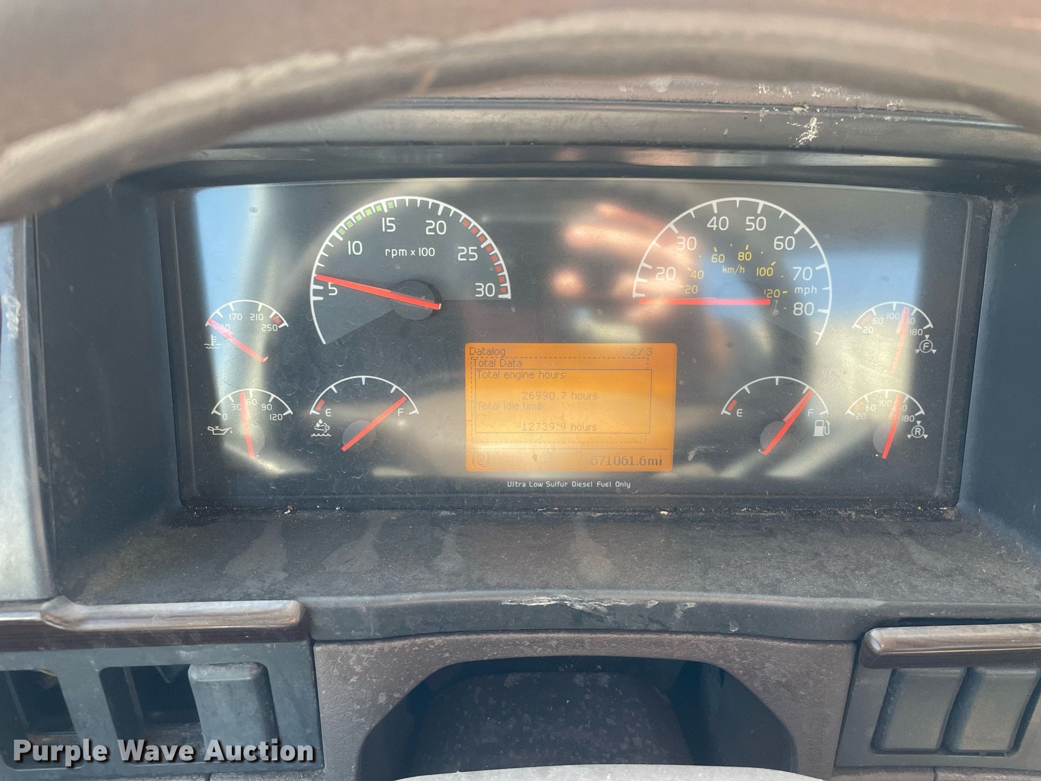 Purple Wave is selling a used Truck Tractor in Michigan. This item is a 2013 Volvo semi truck with the following: Miles: 671,062 on odometer, Hours: 26,991 on meter, VIN: 4V4NC9EH2DN132528, Unit #: 147