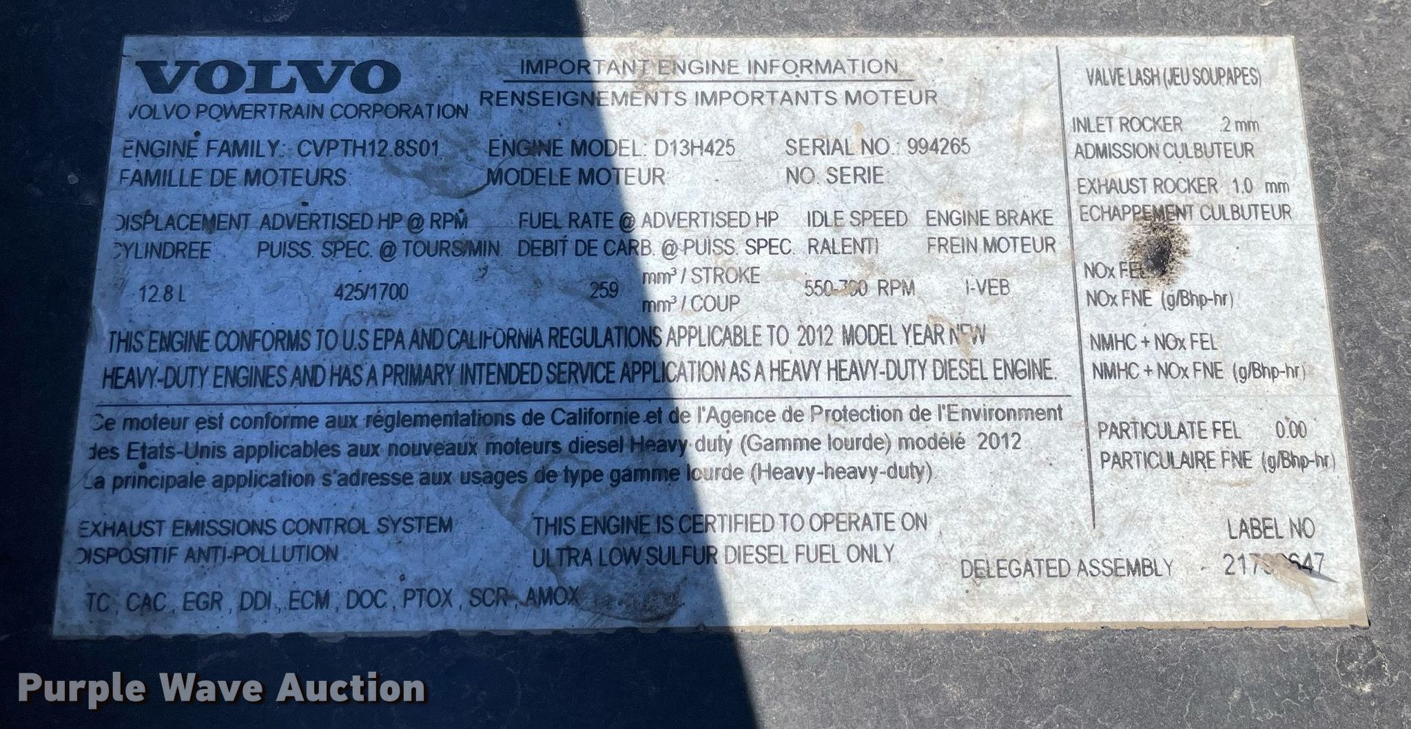 This 2013 Volvo semi truck will sell to the highest bidder regardless of price.