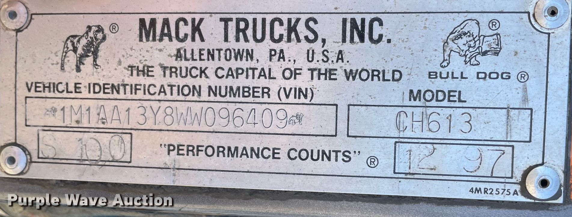 Purple Wave is selling a used Truck Tractor in Illinois. This item is a 1998 Mack CH613 semi truck with the following: Miles: 490,990 on odometer, Hours: 20,954 on meter, Miles or hours may vary, unit still in use, VIN: 1M1AA13Y8WW096409
