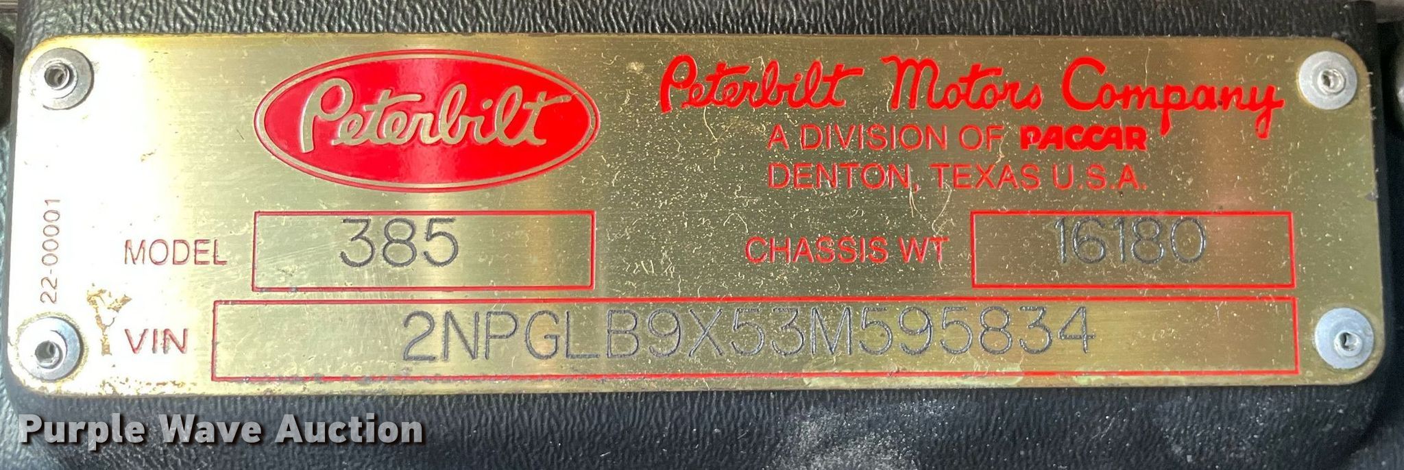 Take a look at this used 2003 Peterbilt 385 tank truck being sold on May 4th, 2023 in the SOLD! May 04 Truck and Trailer Auction made by Peterbilt. Take a look at all of the item information below or take a look at similar auctions for Trucks.