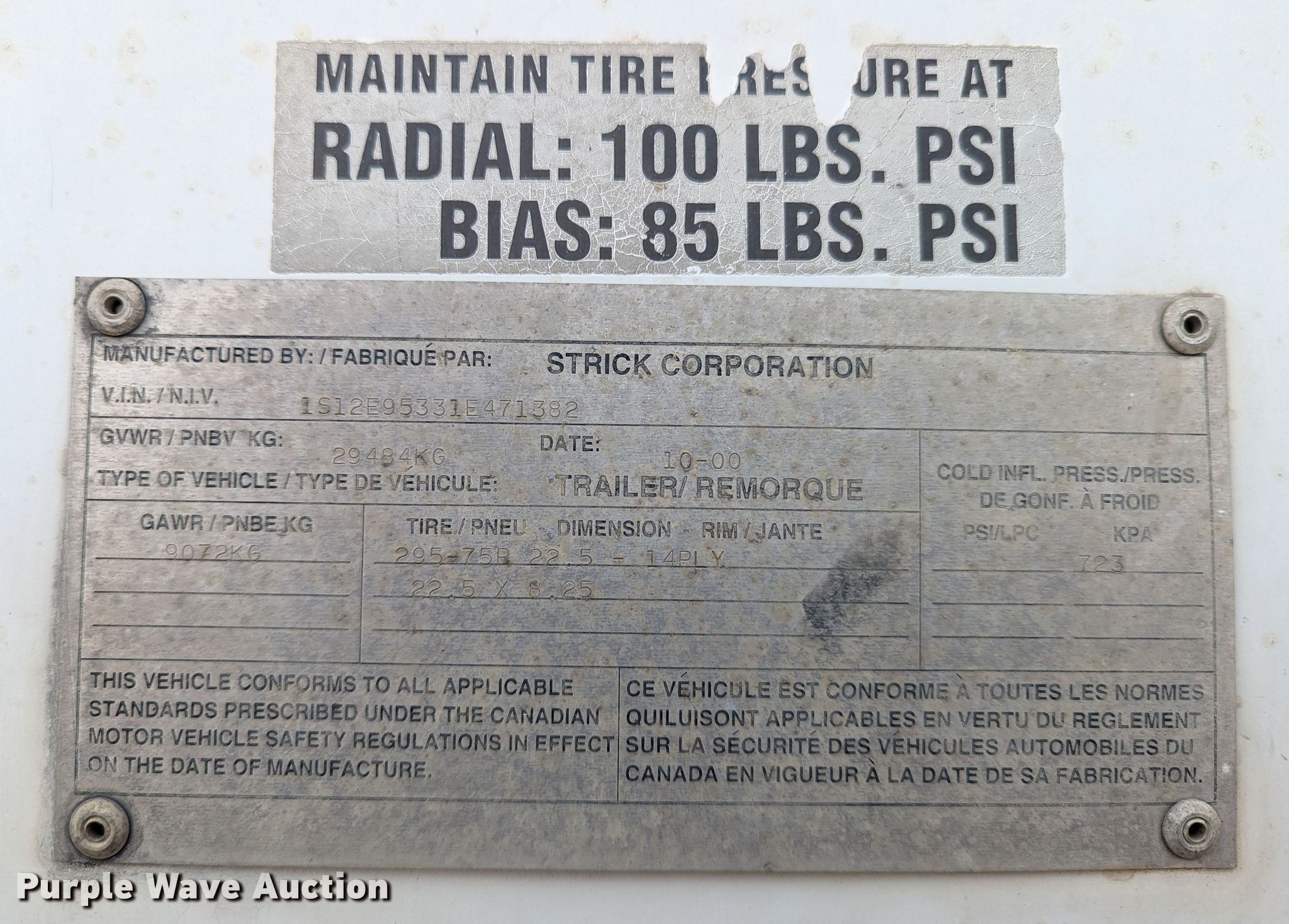 Purple Wave is selling a used Dry Van Trailer in Oklahoma. This item is a 2001 Strick dry van trailer with the following: VIN: 1S12E95331E471382