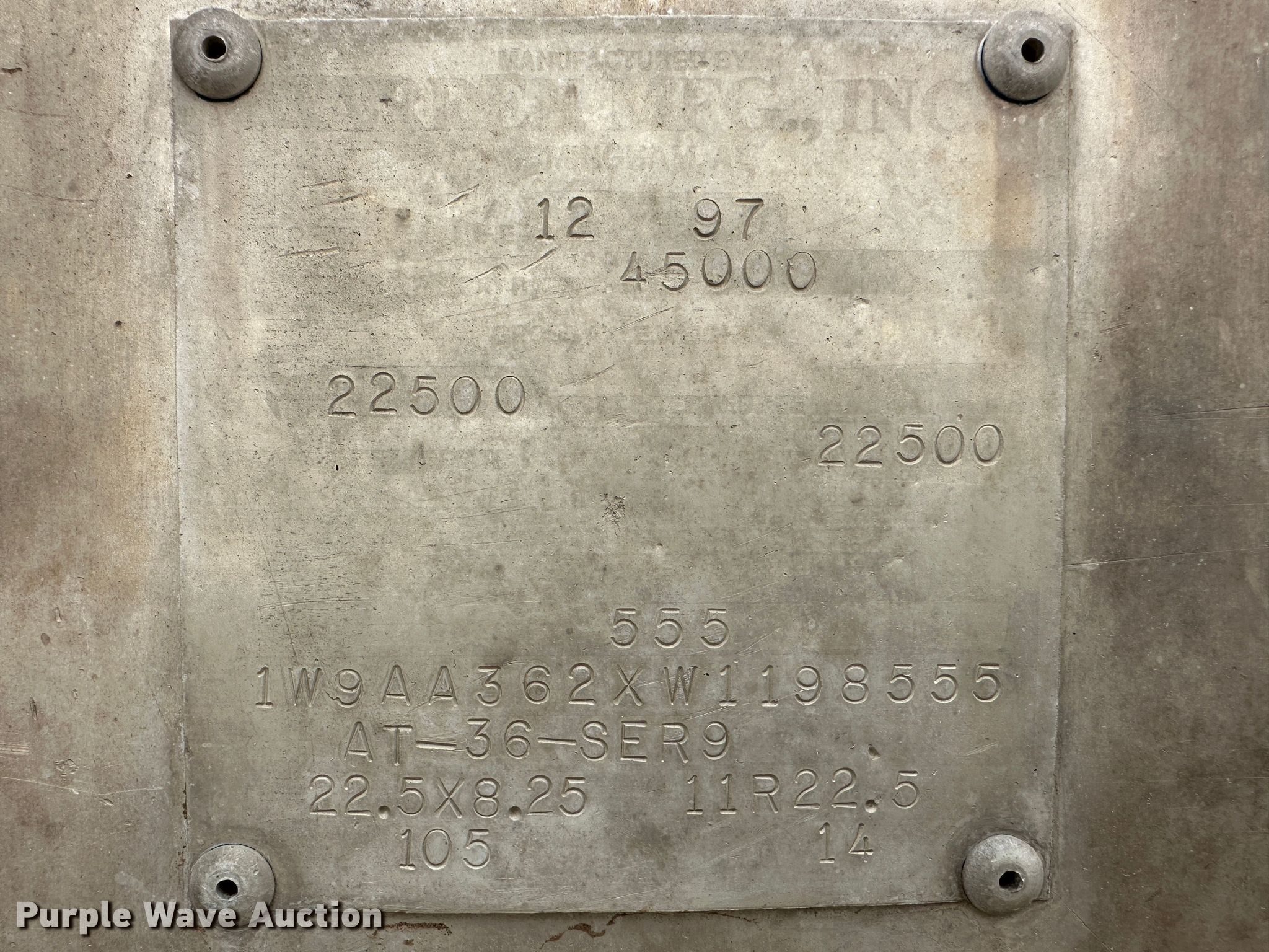 Purple Wave is selling a used Fertilizer or Feed Delivery Trailer in Texas. This item is a 1998 Warren feed delivery trailer with the following: VIN: 1W9AA362XW1198555, Unit #: 98601TX