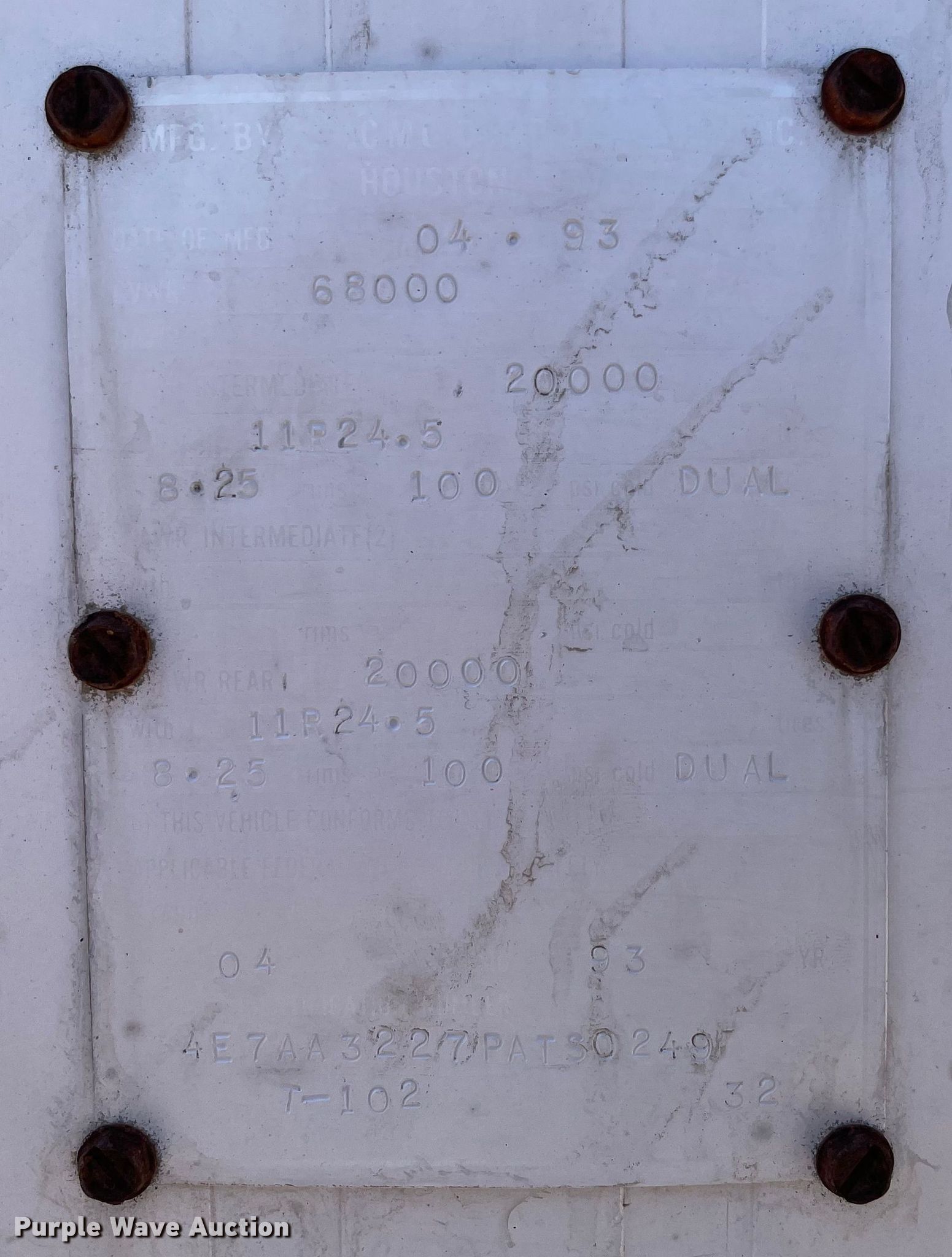 Purple Wave is selling a used End Dump Rock Trailer in Oklahoma. This item is a 1993 CMC T-102 end dump trailer with the following: VIN: 4E7AA3227PATS0249