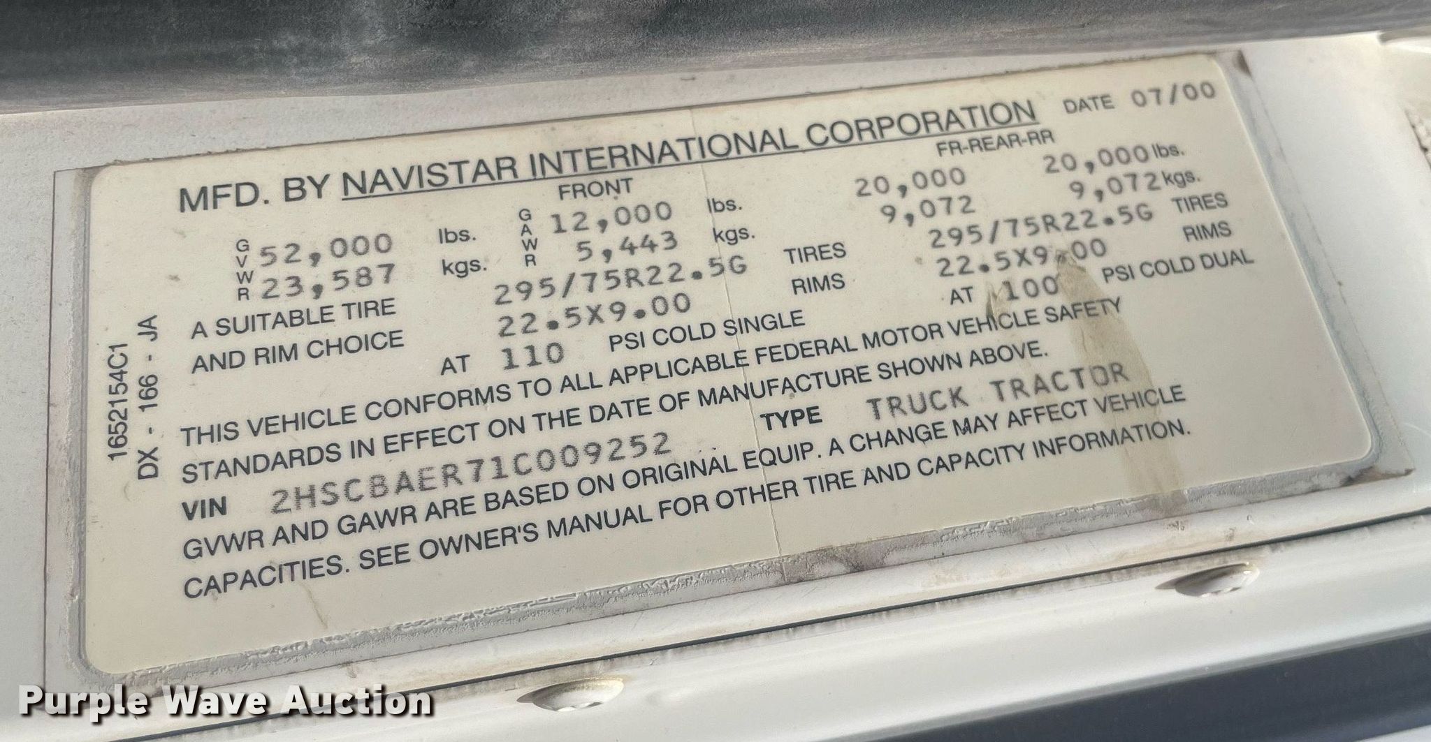 Purple Wave is selling a used Flat Bed Truck in Kansas. This item is a 2001 International 9100i flatbed truck with the following: Miles: 513,881 on odometer, VIN: 2HSCBAER71C009252