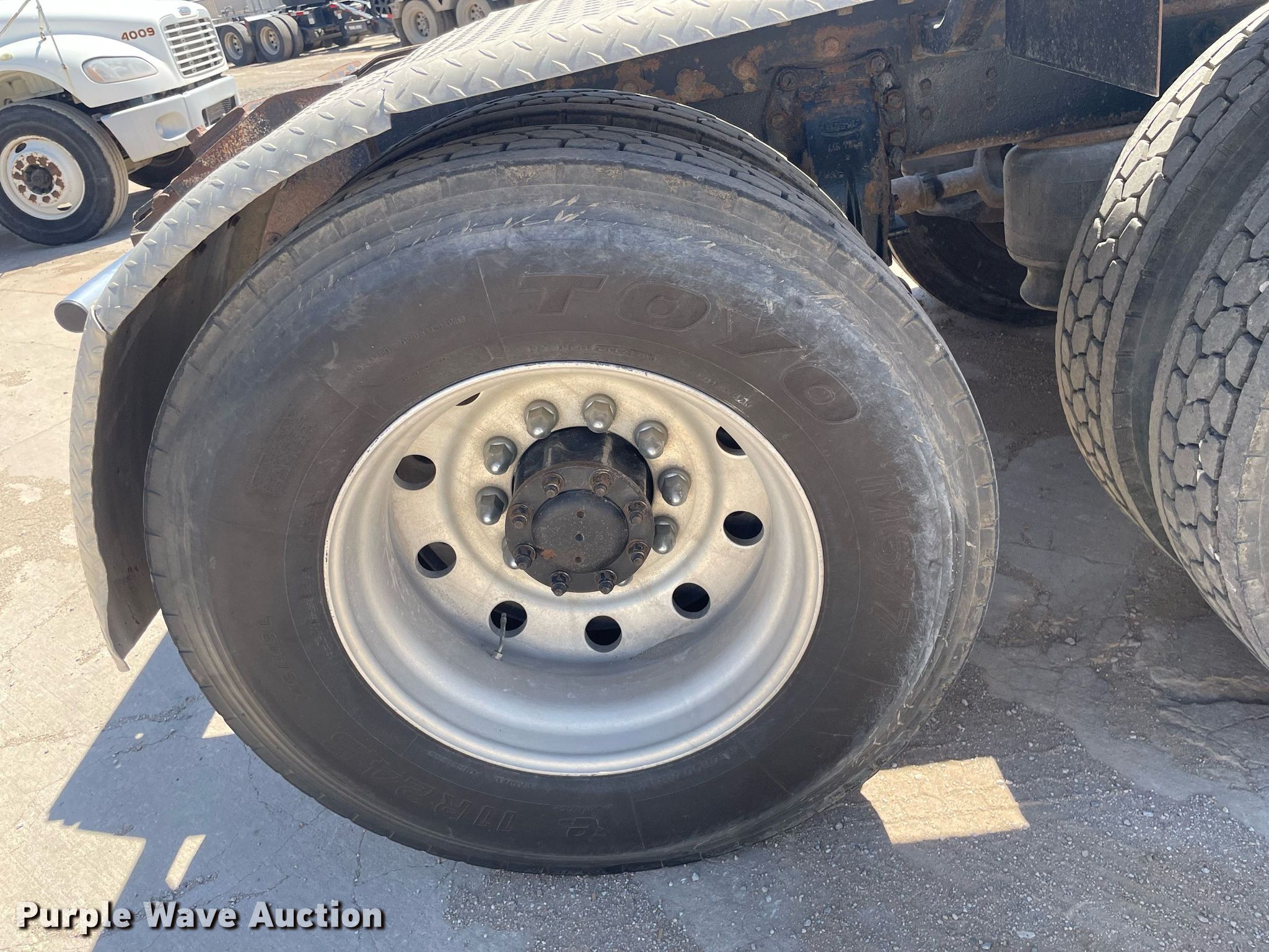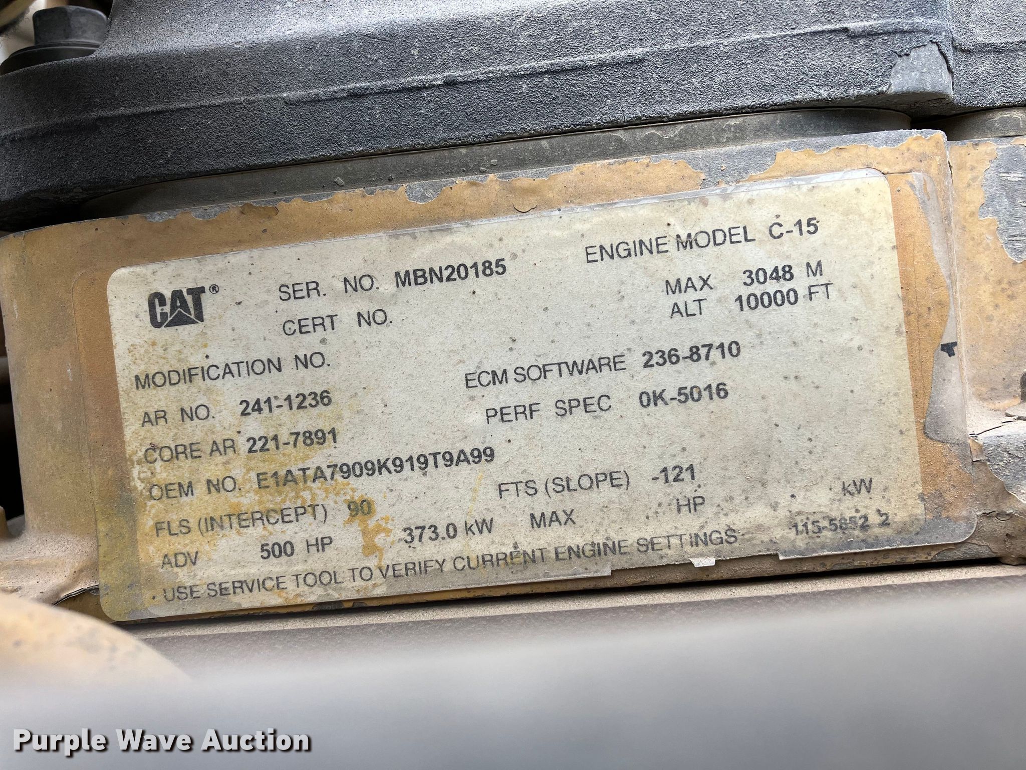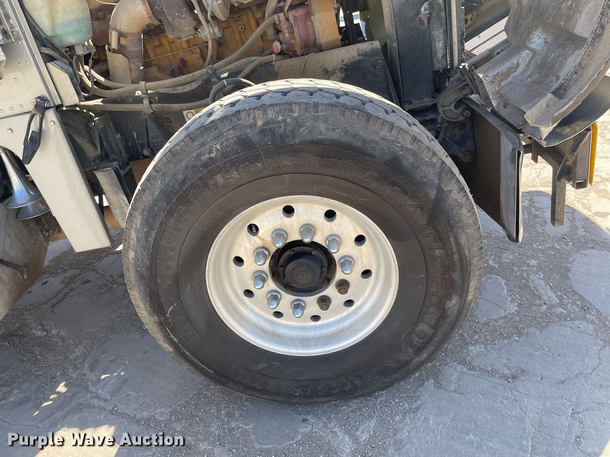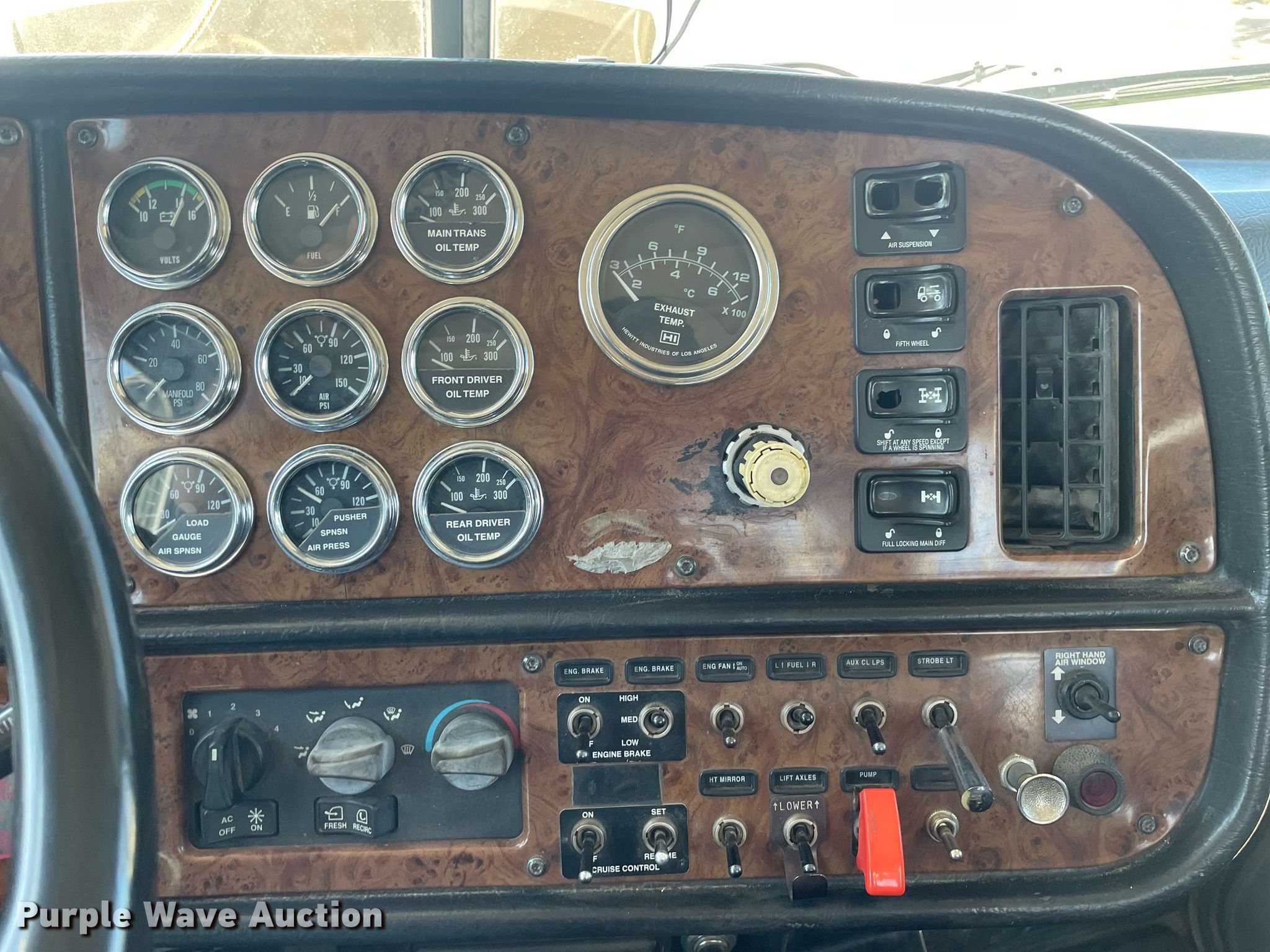 2004 Peterbilt 357 semi truck. Miles: 716,295 on odometer, VIN: 1XPAPBEX84D822043. Engine Caterpillar C15, Serial: MBN20185, Displacement: 14.6L, Cylinders: 6, Fuel type: Diesel, Engine brake. Transmission Manual, Speed: 18. Chassis Axles: Triple, Pusher axle, Differential lock: Full, Suspension: Air Dump valves, Brakes: Air, PTO, Wet kit, Truck chassis: 19' 2", GVWR: 77,000 lbs FAWR: 20,000 lbs, RAWR: 22,000 lbs, Lift axle GAWR: 20,000 lbs. Interior AC, Heat, Heated mirrors, Power passenger window , Cruise control. Features Deck plate: Aluminum, Fifth wheel type: Air operated, Sliding, Fuel tank: Dual. Tires Front: 425/65R22.5, Rear: 11R24.5, Lift axle: 255/70R22.5. Kansas title. Title distribution may be delayed up to 14 days from verification of funds. Allied Equipment. Wichita, KS 67217