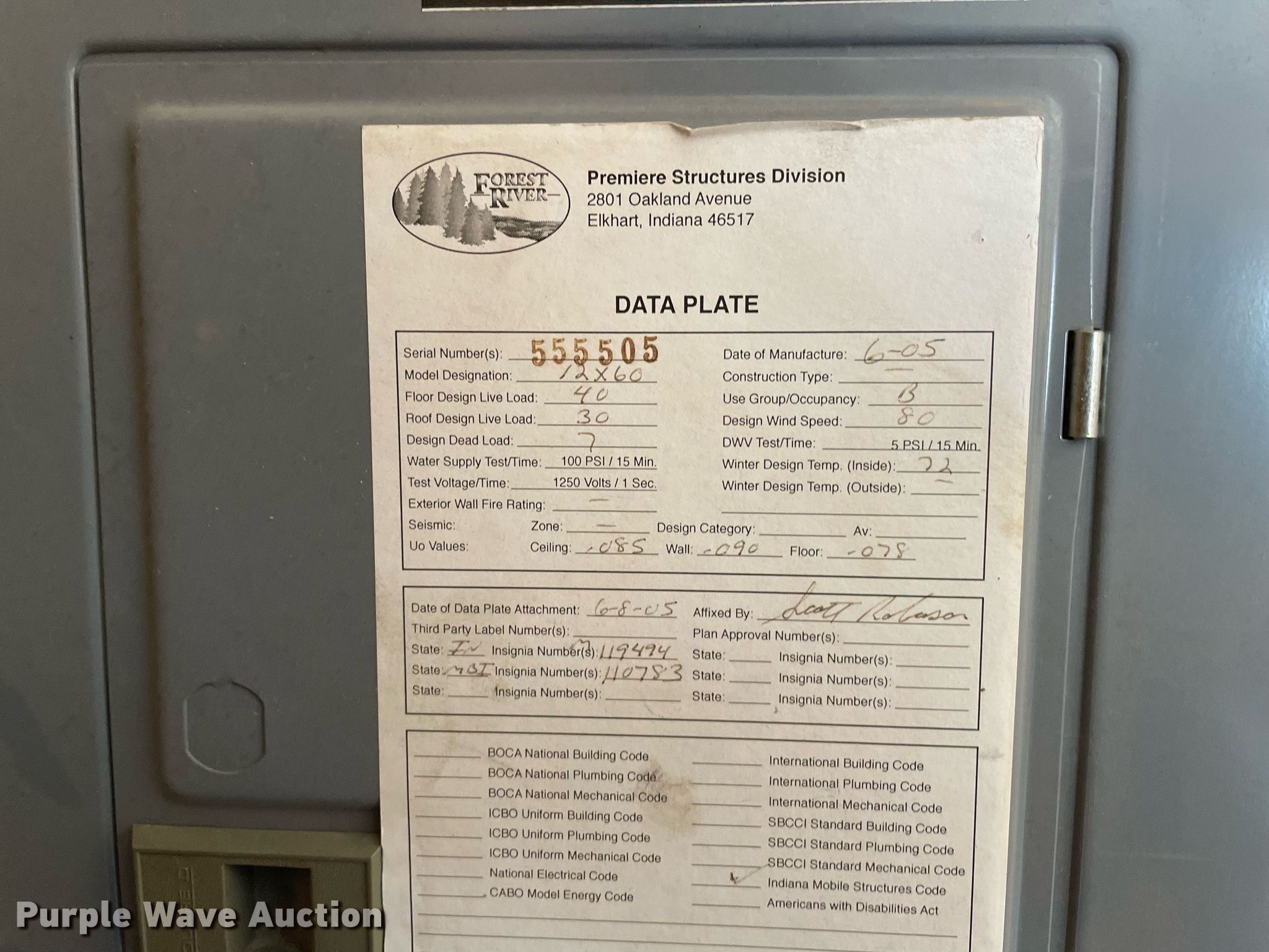 Purple Wave is selling a used Manufactured Home or Office in Kansas. This item is a 2005 Premier Structures Division jobsite trailer with the following: Serial: 555505, Unit #: 1980