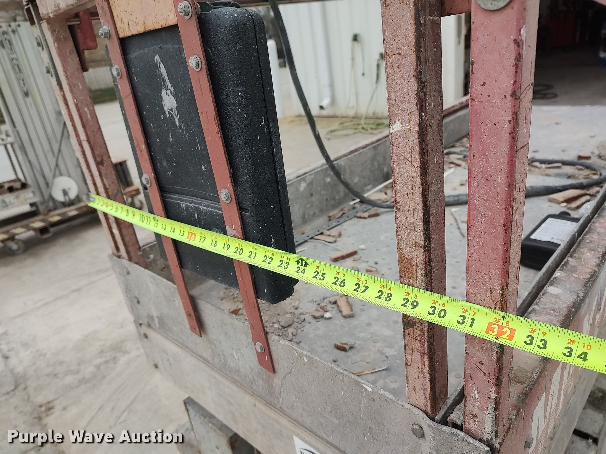 Mec 2033 scissor lift. Hours: Unknown. Electric Motor Volts: 48. Features Maximum lift capacity: 750 lbs, Maximum lift height: 20', Platform: 90" L x 32" W, Platform extensions: Manual. Tires Tire size: 15", Non-marking. Coonrod & Associates Construction Co. Retirement. 3550 South Hoover Road. Wichita, KS 67215
