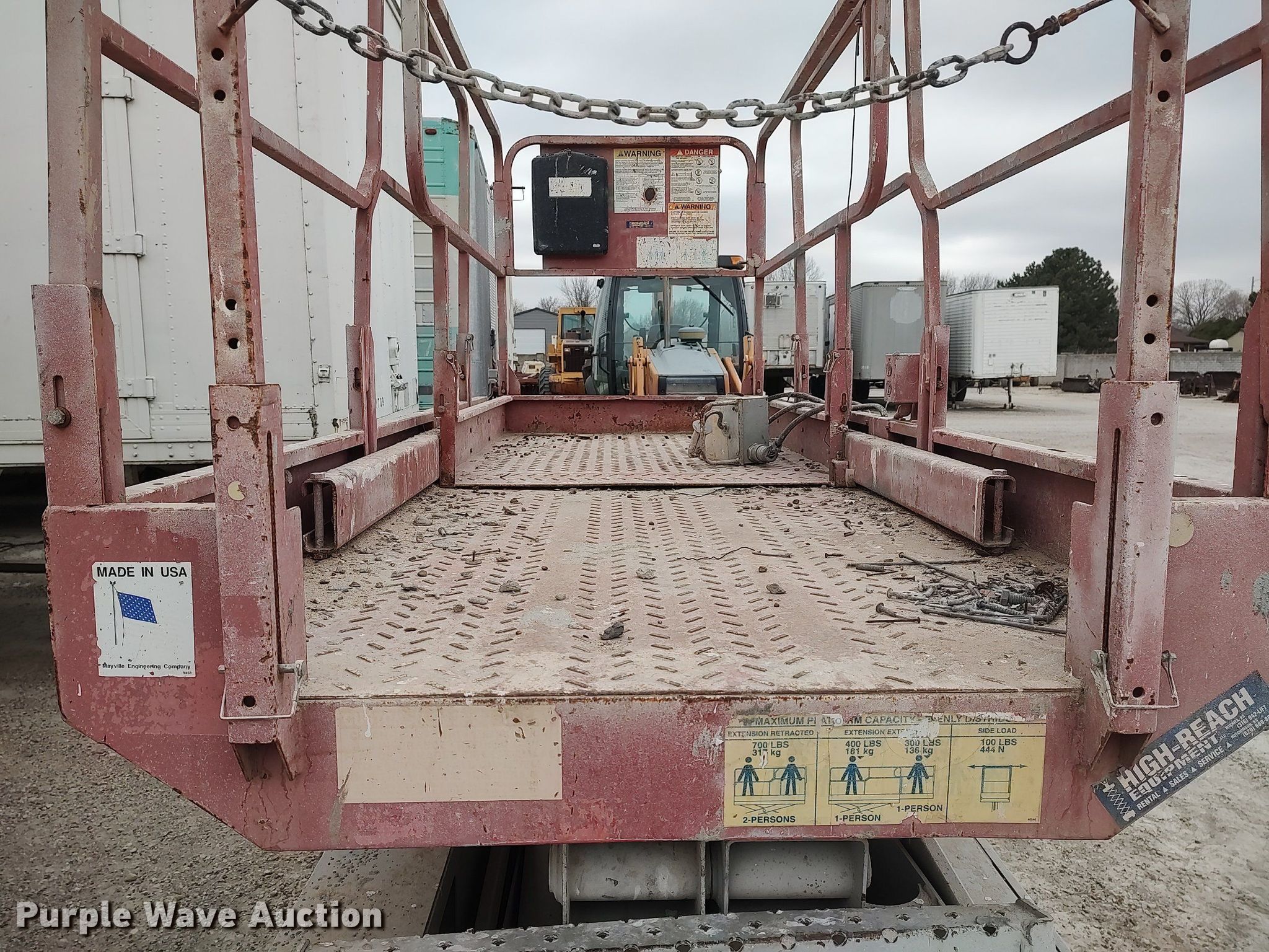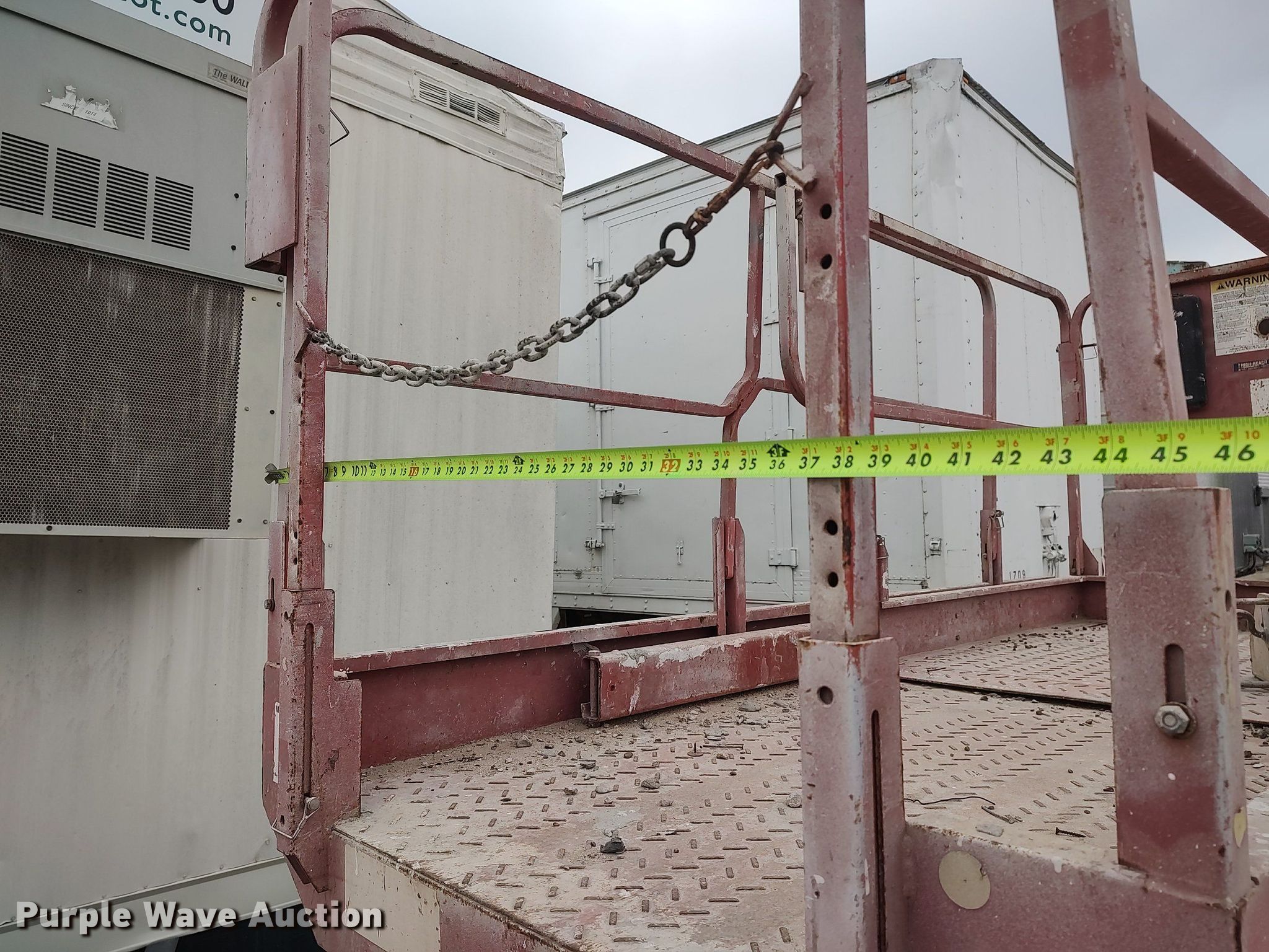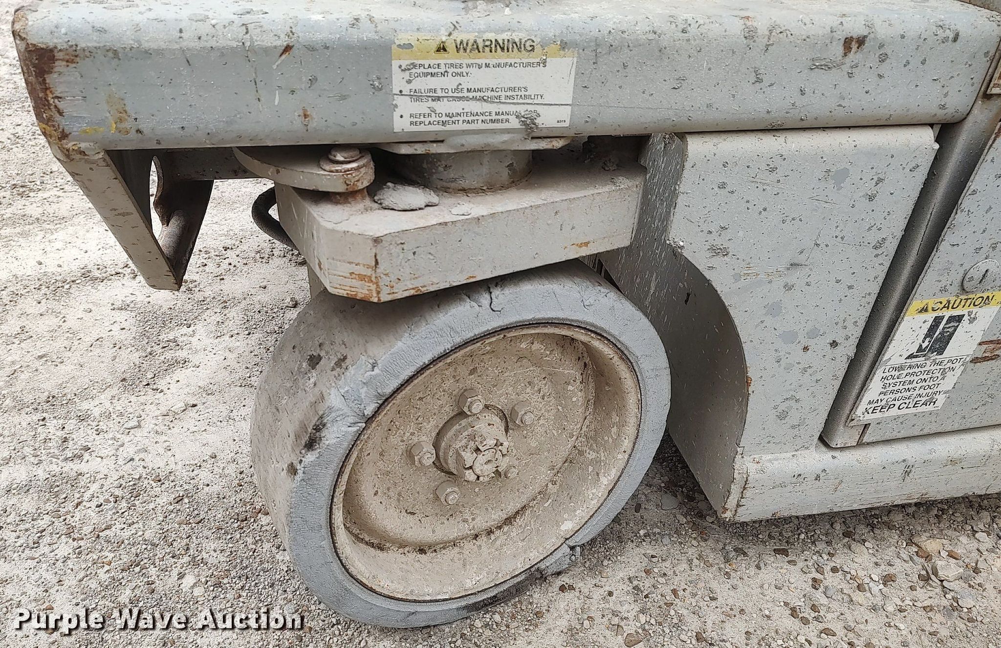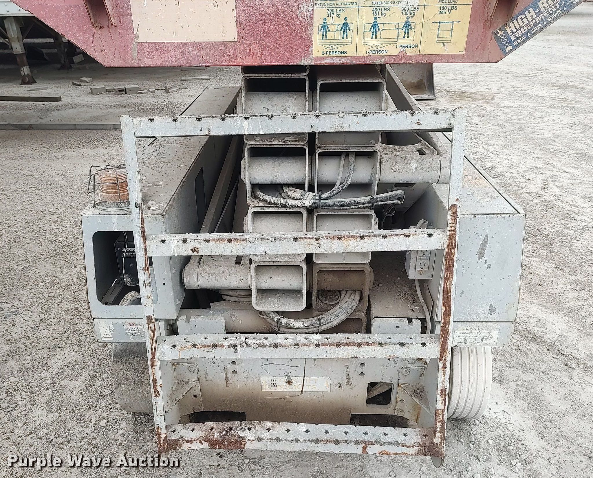 Mec 3247ES scissor lift. Hours: Unknown. Electric Motor Volts: 36. Features Maximum lift capacity: 700 lbs, Maximum lift height: 38', Controls: Platform, Platform extensions: Manual. Tires Tire size: 15", Solid, Non-marking. Notes Dead batteries, Unknown operating condition. Coonrod & Associates Construction Co. Retirement. 3550 South Hoover Road. Wichita, KS 67215