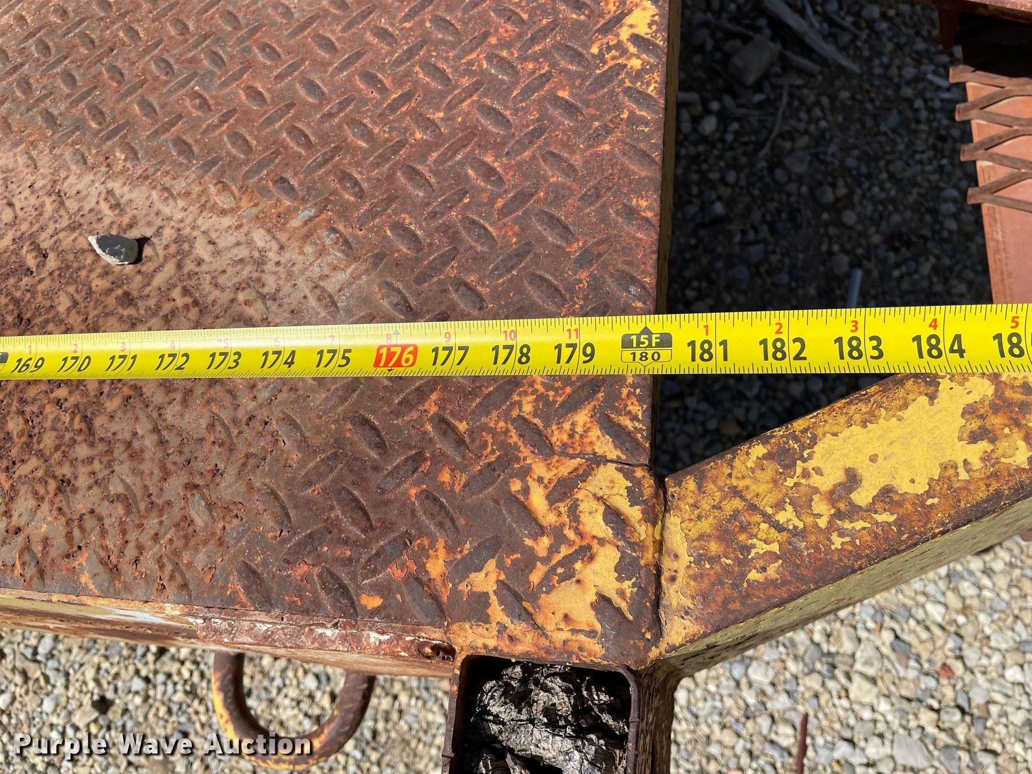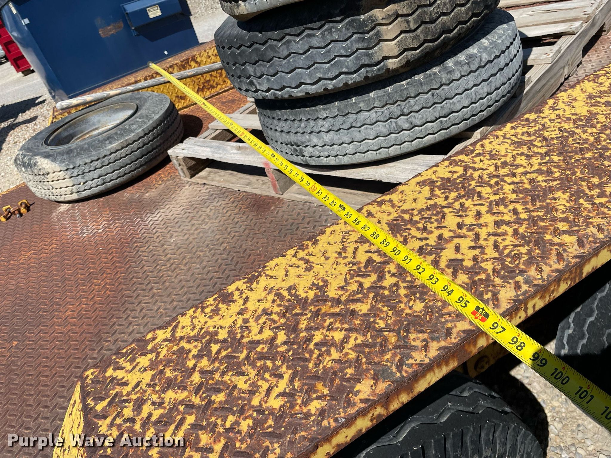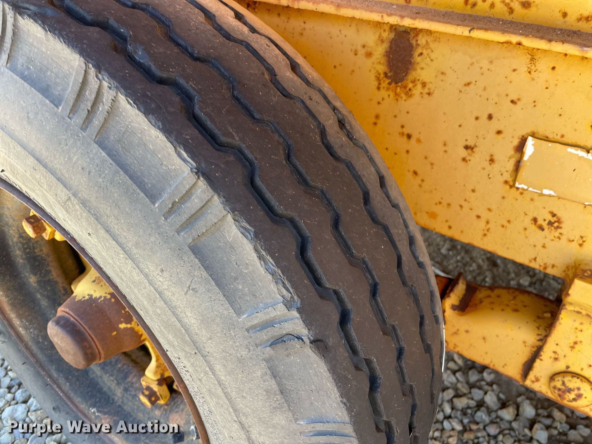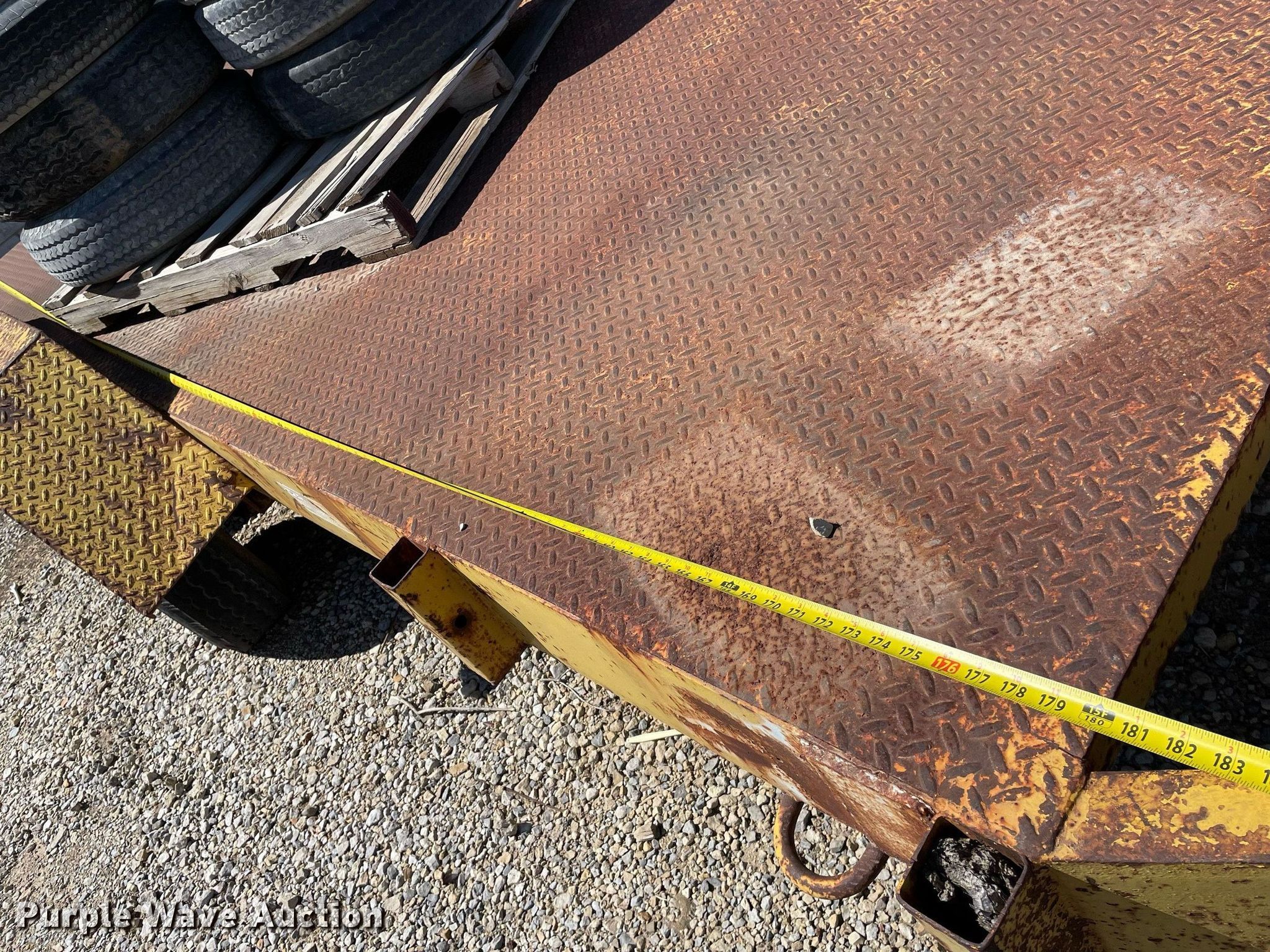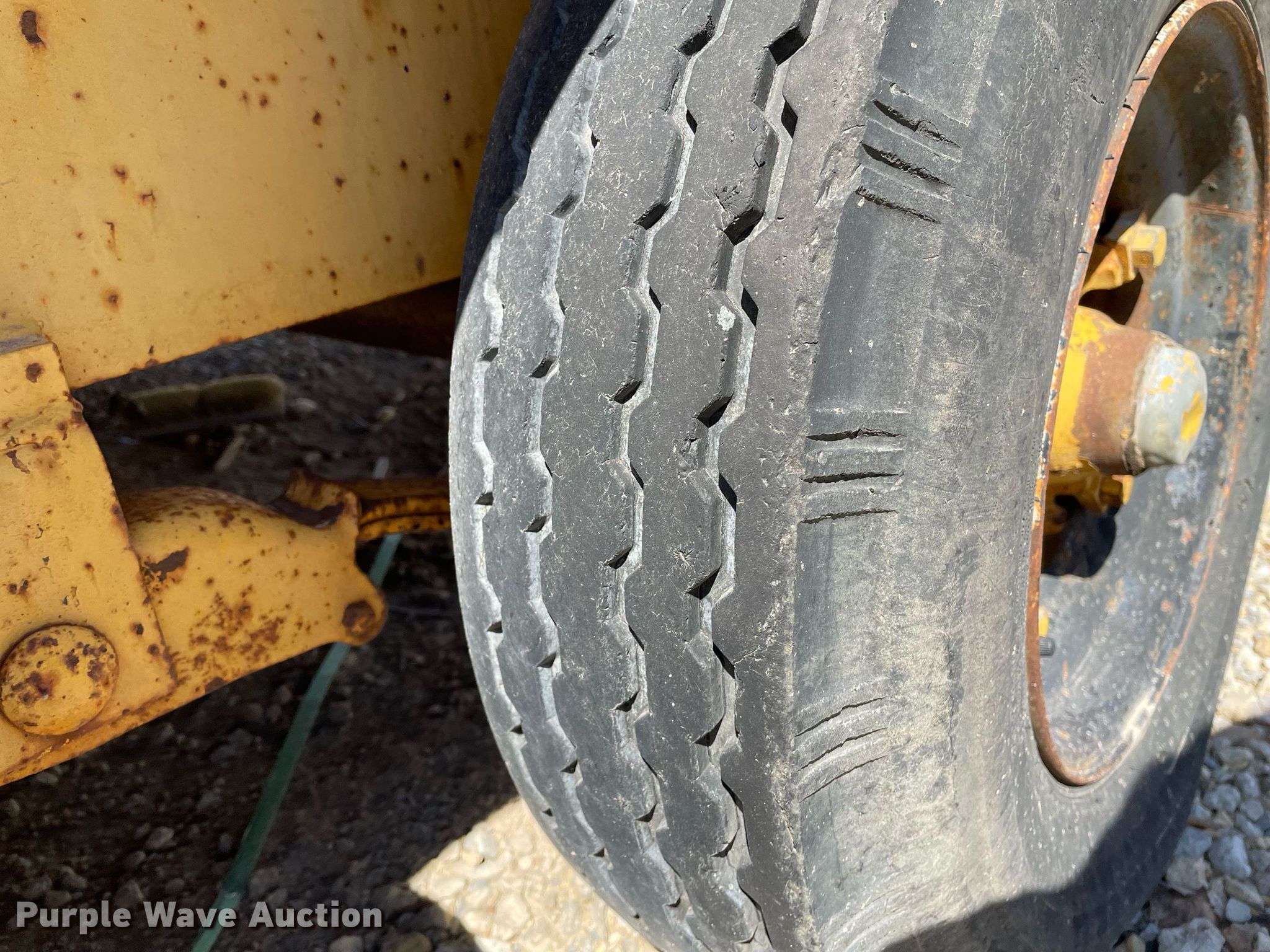 1972 Morgen equipment trailer. VIN: 2628. Dimensions Overall: 22' L x 96" W, Deck: 15' L x 72" W. Features Deck type: Steel. Chassis Ball hitch: 2 5/16", Suspension: Spring, Axles: Tandem. Tires Steel wheels, Size: 7-14.5. Notes No brakes, Wheel missing, (7) additional 8-14.5 tires and wheels. Kansas title. Title distribution may be delayed up to 14 days from verification of funds. Coonrod & Associates Construction Co. Retirement. 3550 South Hoover Road. Wichita, KS 67215