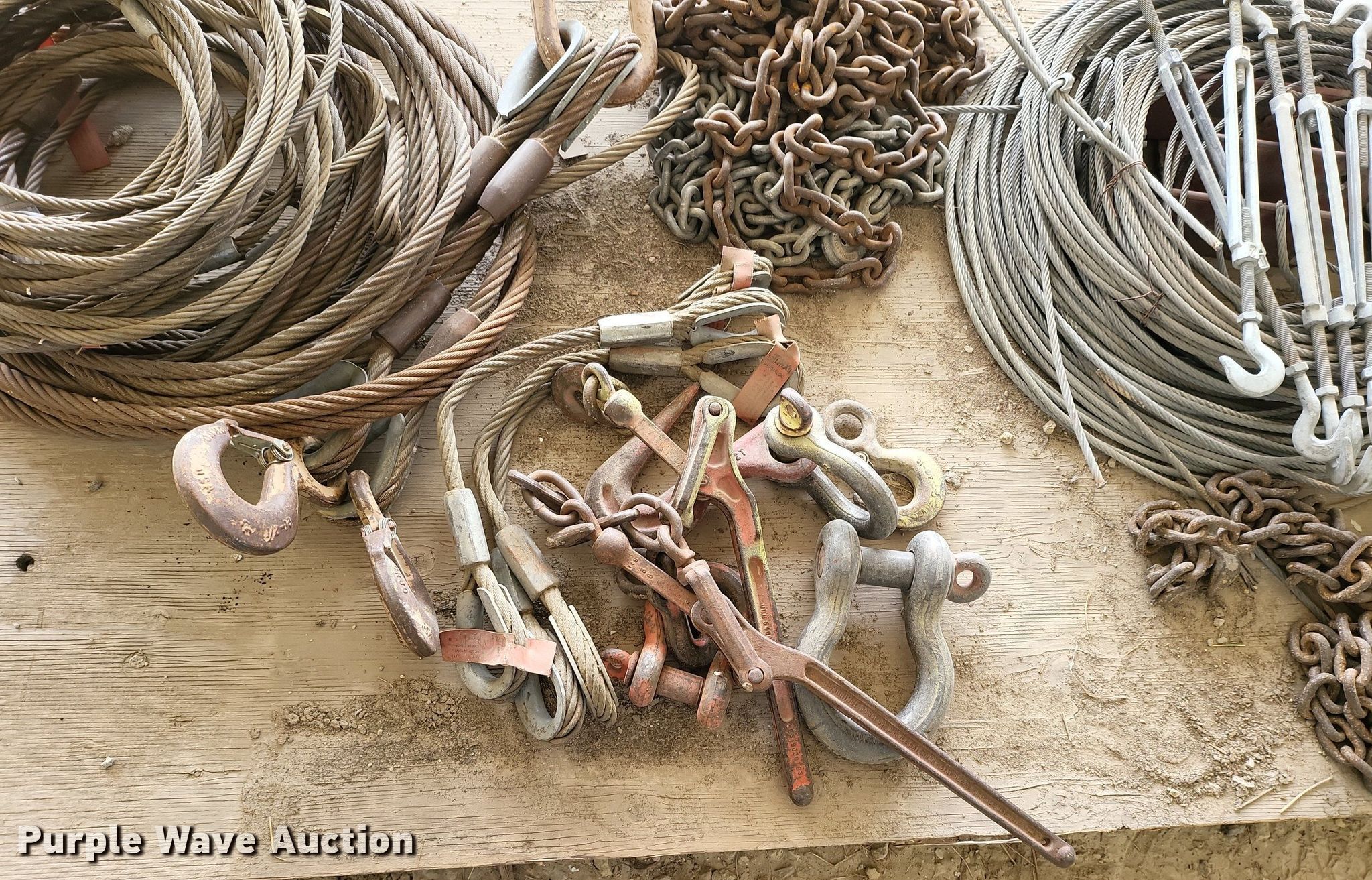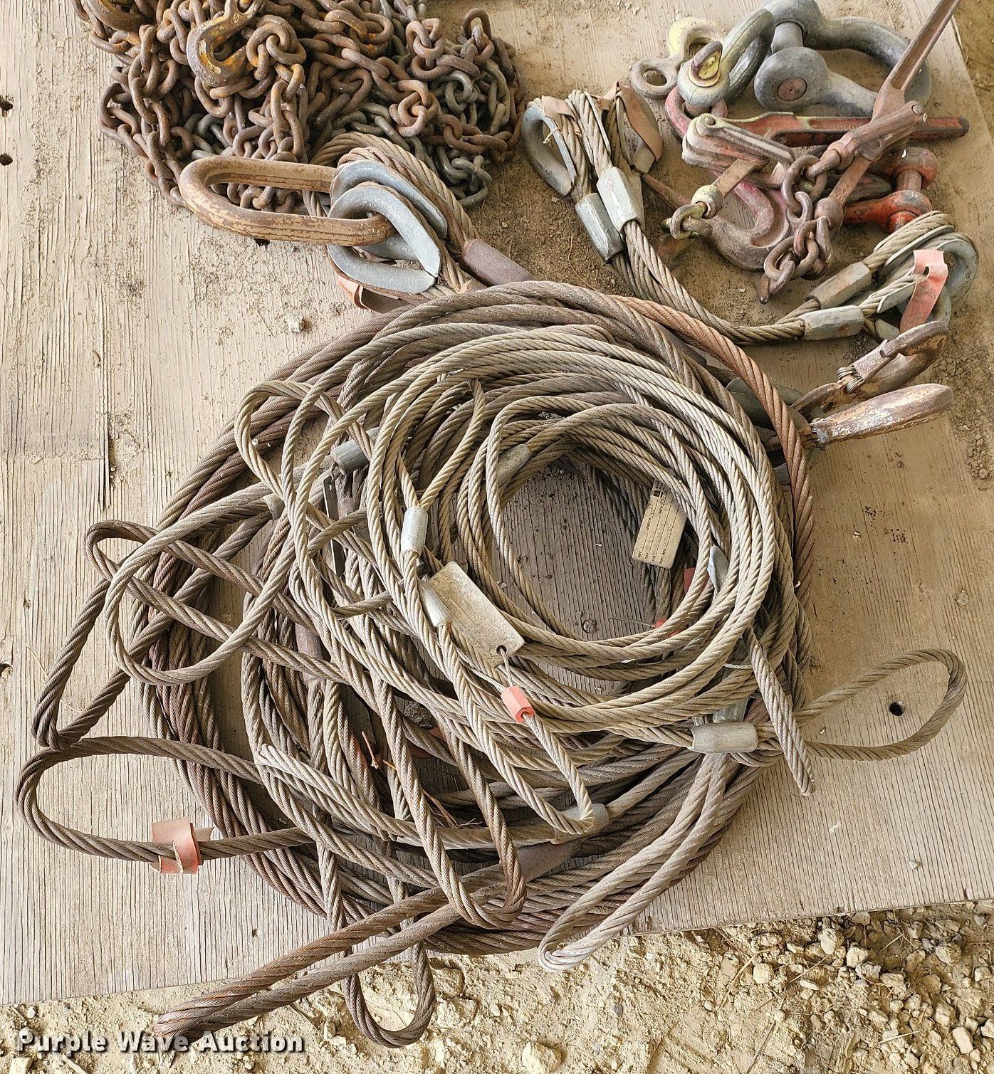 Purple Wave is selling a used Lifting and Rigging in Kansas. This item is a Lifting equipment with the following: Lifting sling, Chain, Clevis, Cables