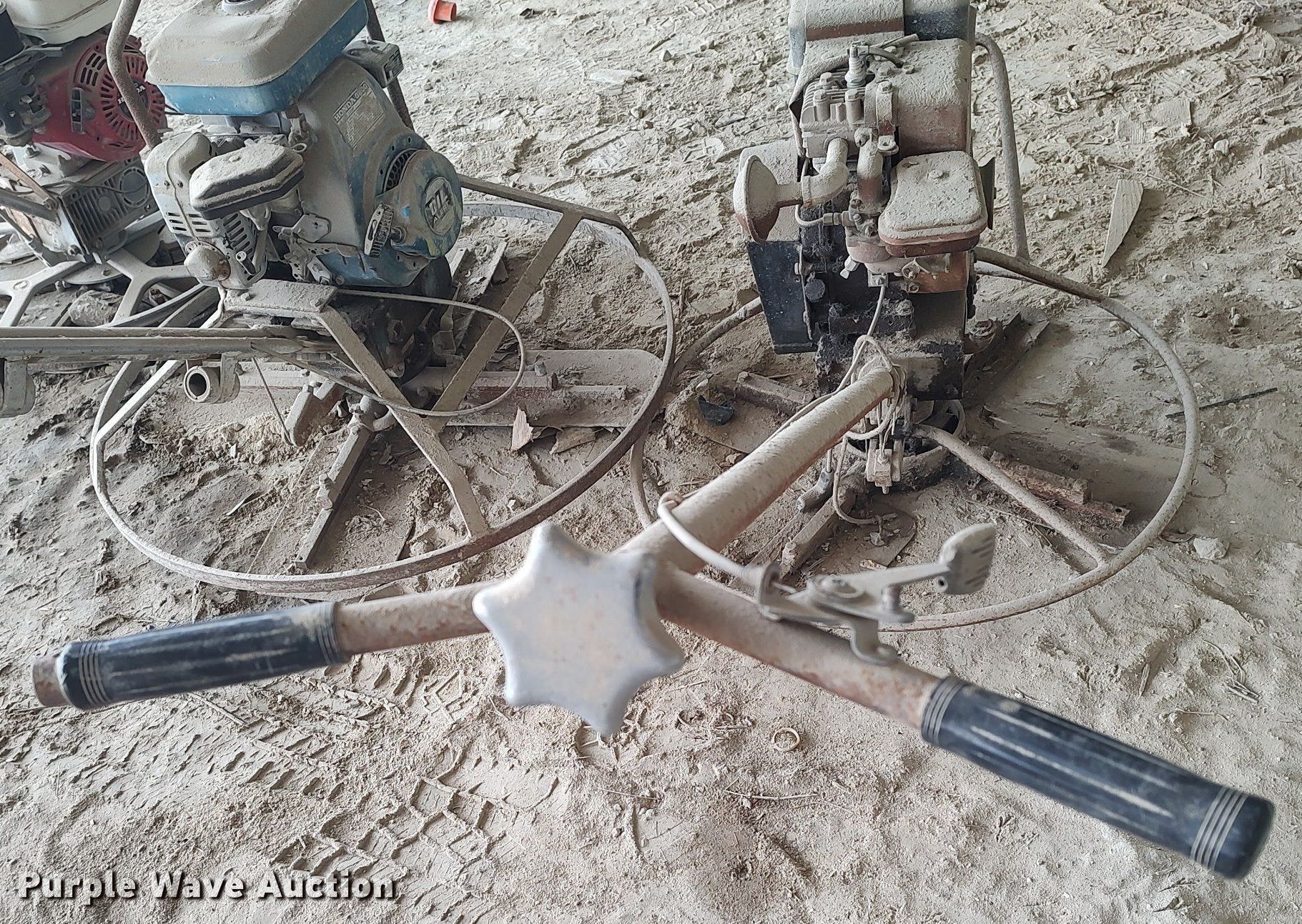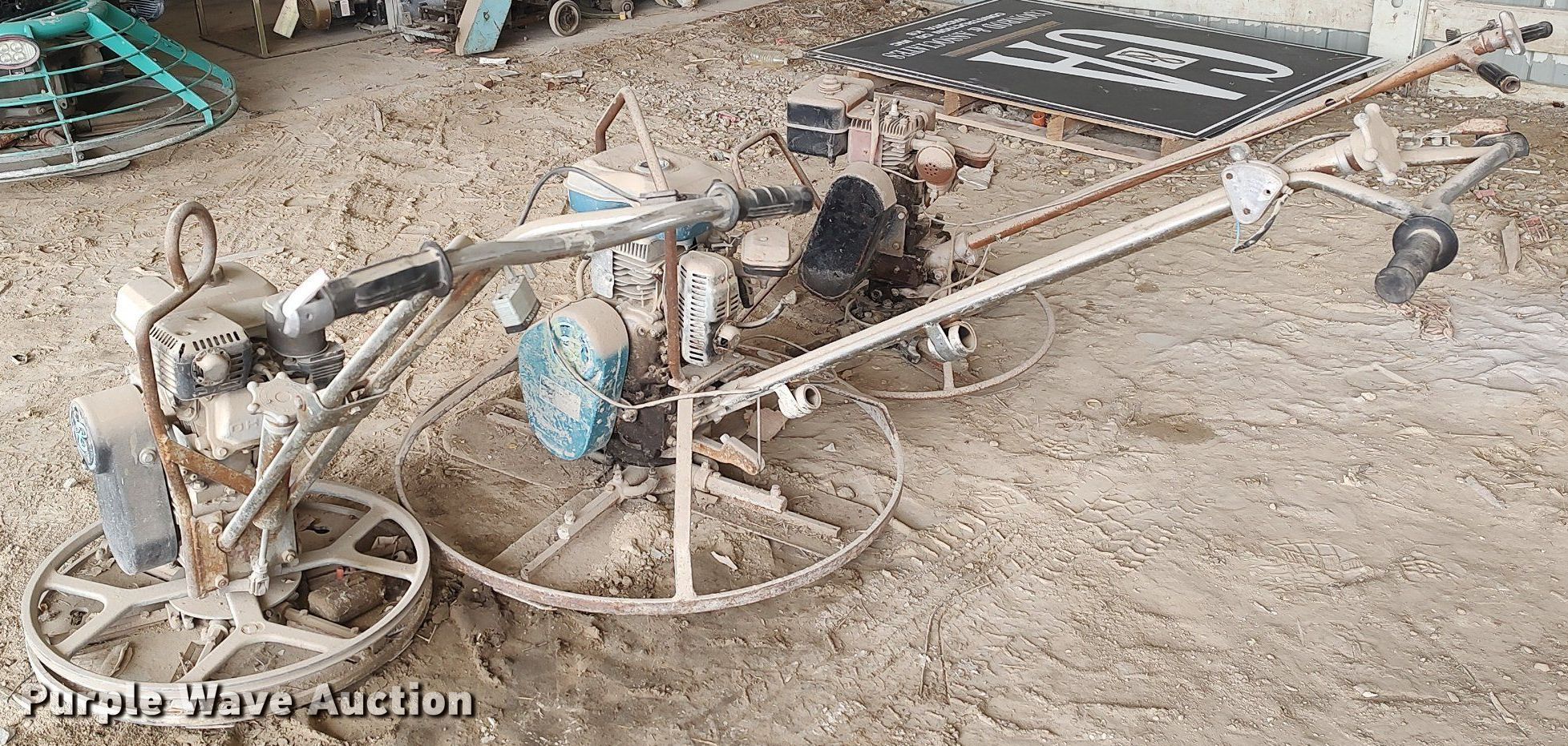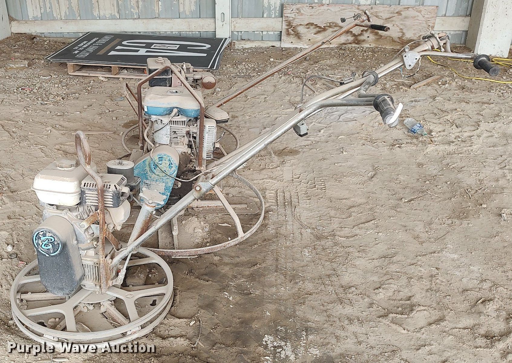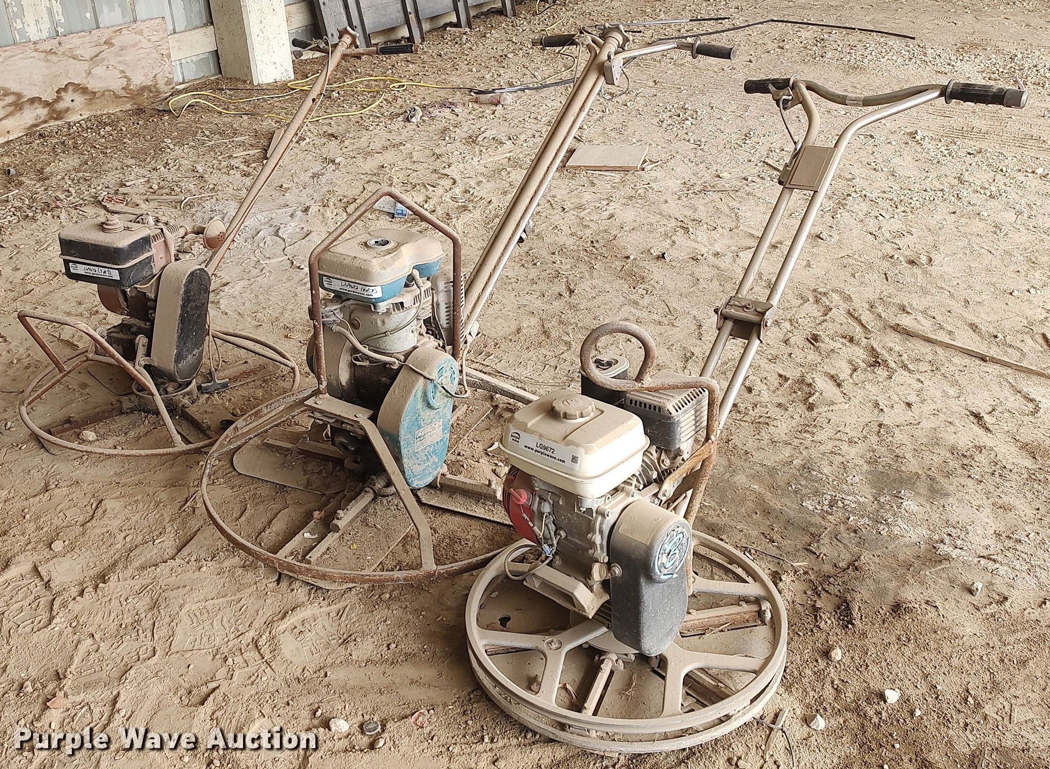Purple Wave is selling a used Concrete Equip. or Acces. in Kansas. This item is a (3) power trowels with the following: Width: 36", Honda G230 5HP gas engine, Width: 28", Briggs & Stratton 3HP gas engine, Width: 24", Honda GX120 4HP gas engine
