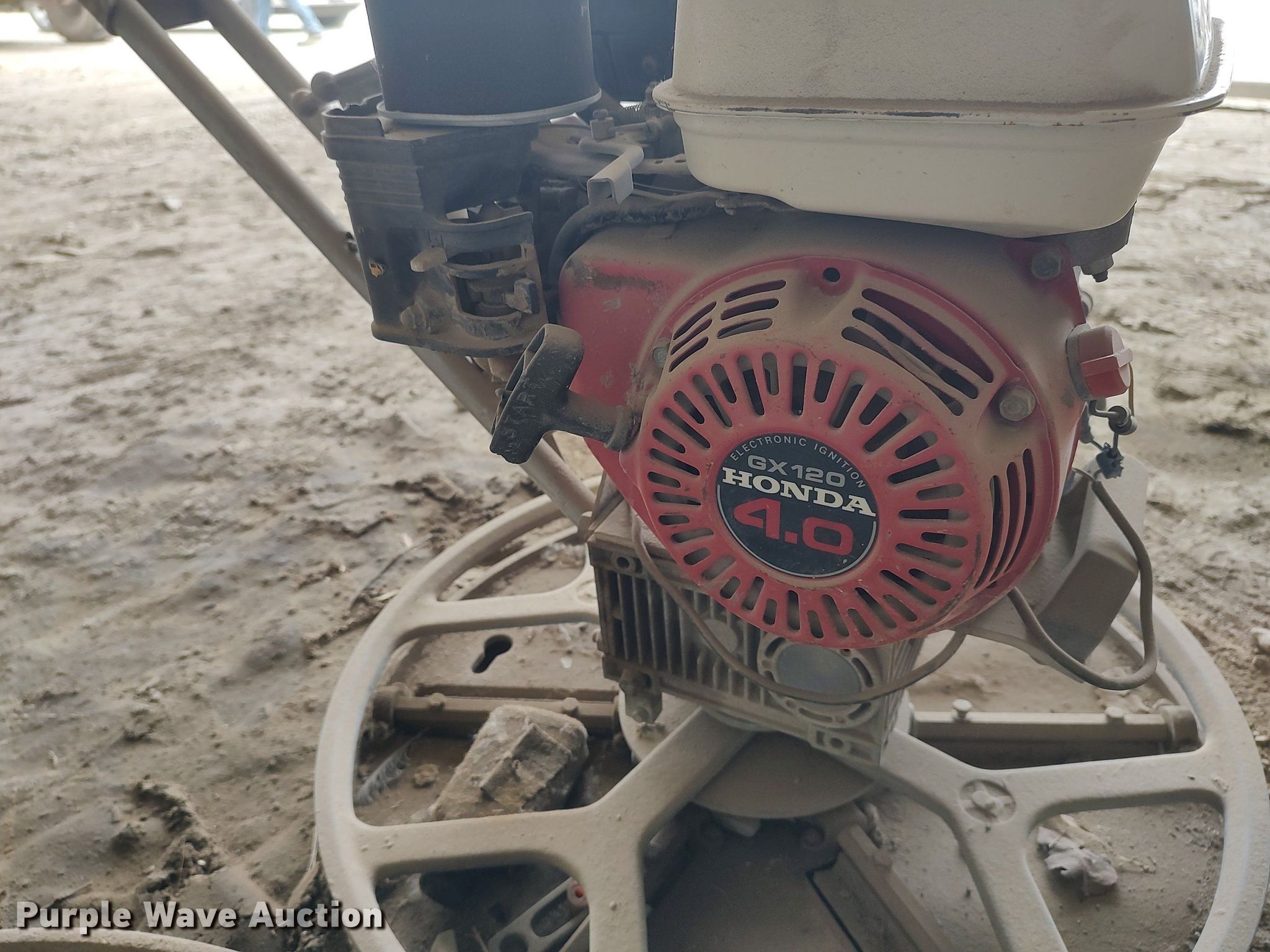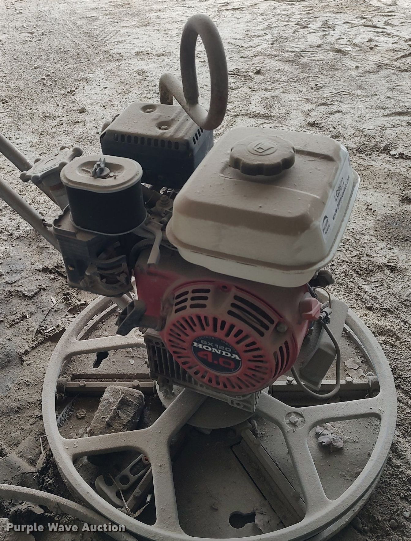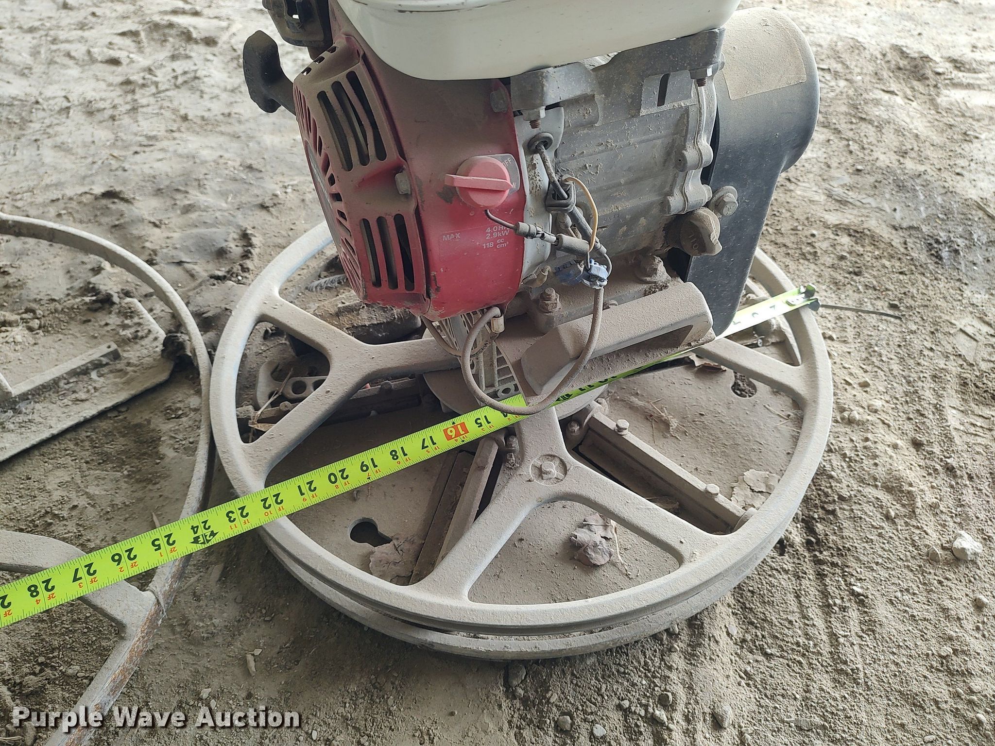 (3) power trowels. Width: 36" Honda G230 5HP gas engine, Width: 28" Briggs & Stratton 3HP gas engine, Width: 24" Honda GX120 4HP gas engine. Notes Unknown operating conditions. Coonrod & Associates Construction Co. Retirement. 3550 South Hoover Road. Wichita, KS 67215