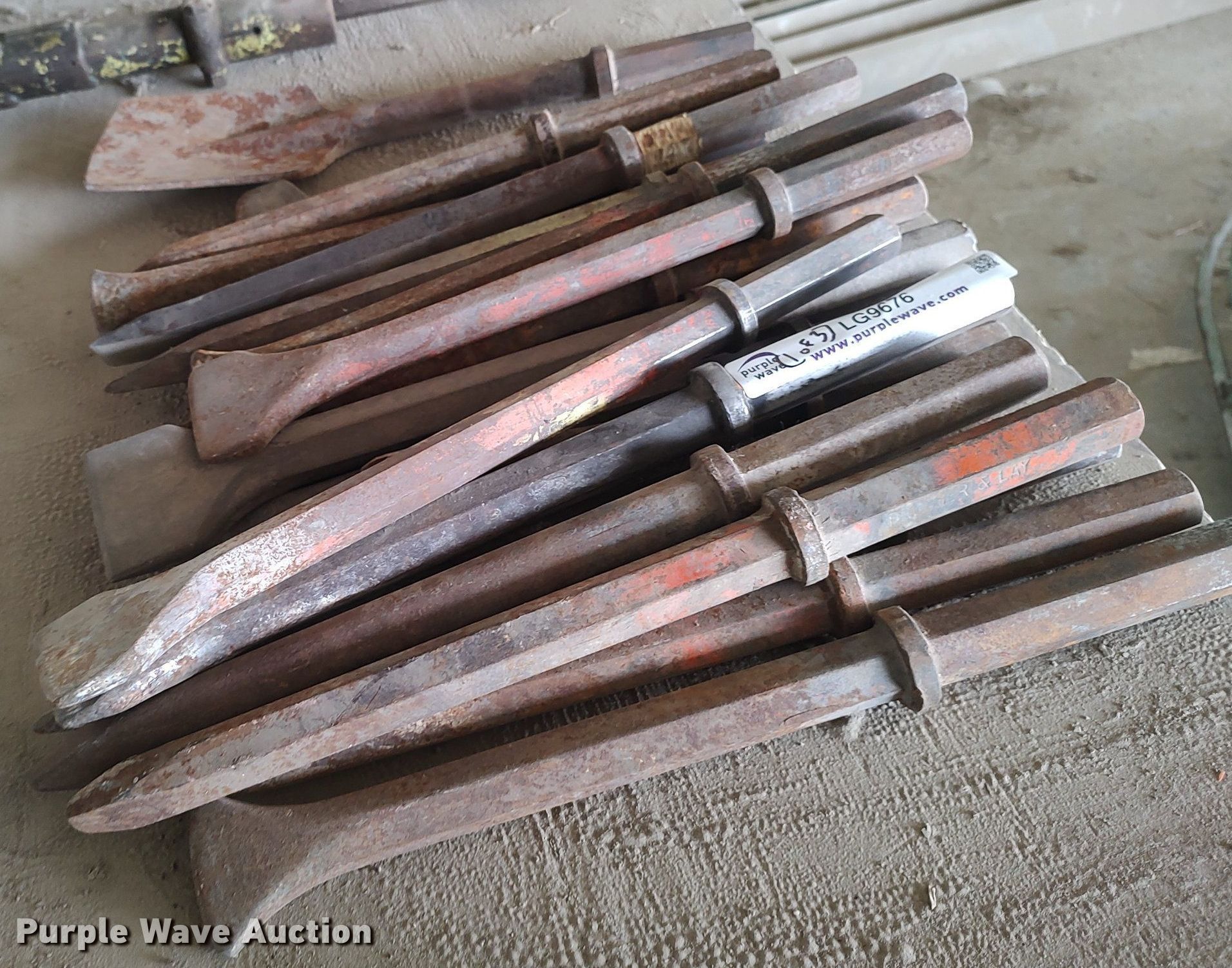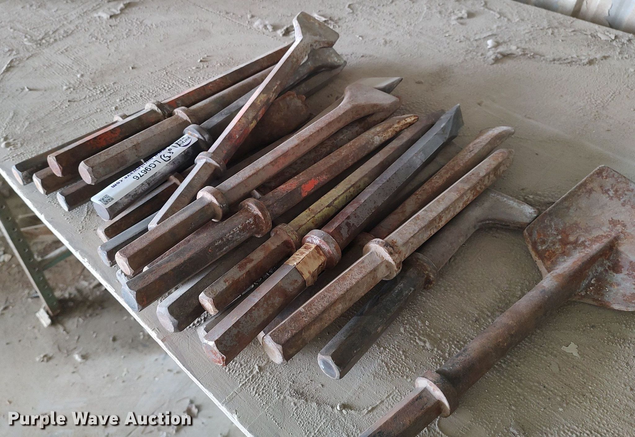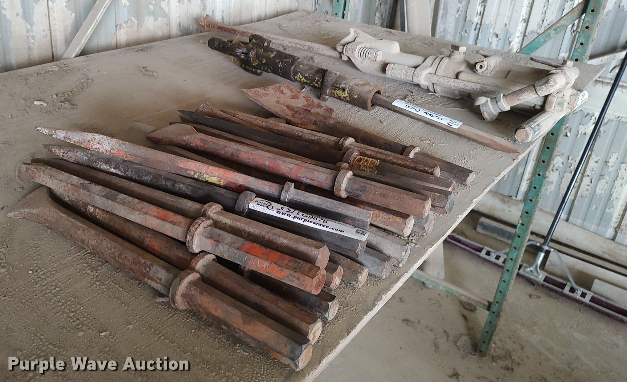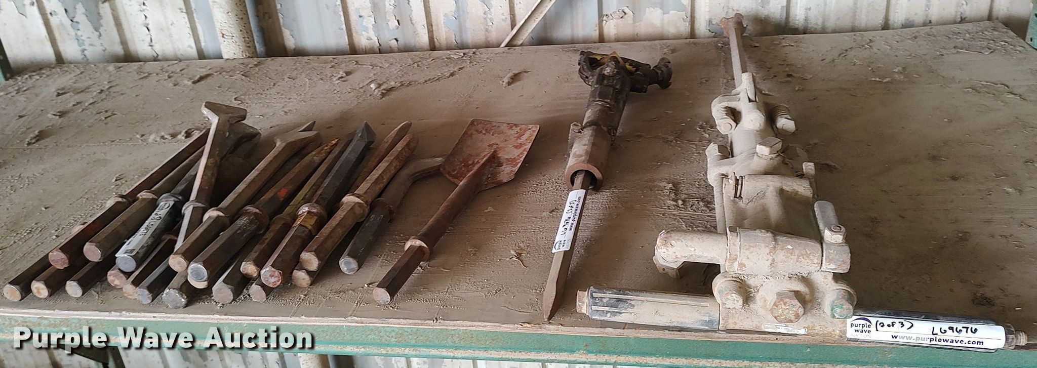 Purple Wave is selling a used Tools in Kansas. This item is a (2) pneumatic hammers with the following: Approx. 21 hammer bits, Unknown operating condition