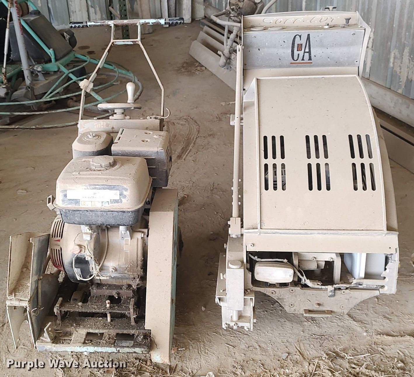 (2) concrete saws. Soff-cut Blade diameter: 7", Unknown operating condition, Unknown make Blade diameter: 10", Honda GX390 gas engine, Unknown operating condition. Coonrod & Associates Construction Co. Retirement. 3550 South Hoover Road. Wichita, KS 67215