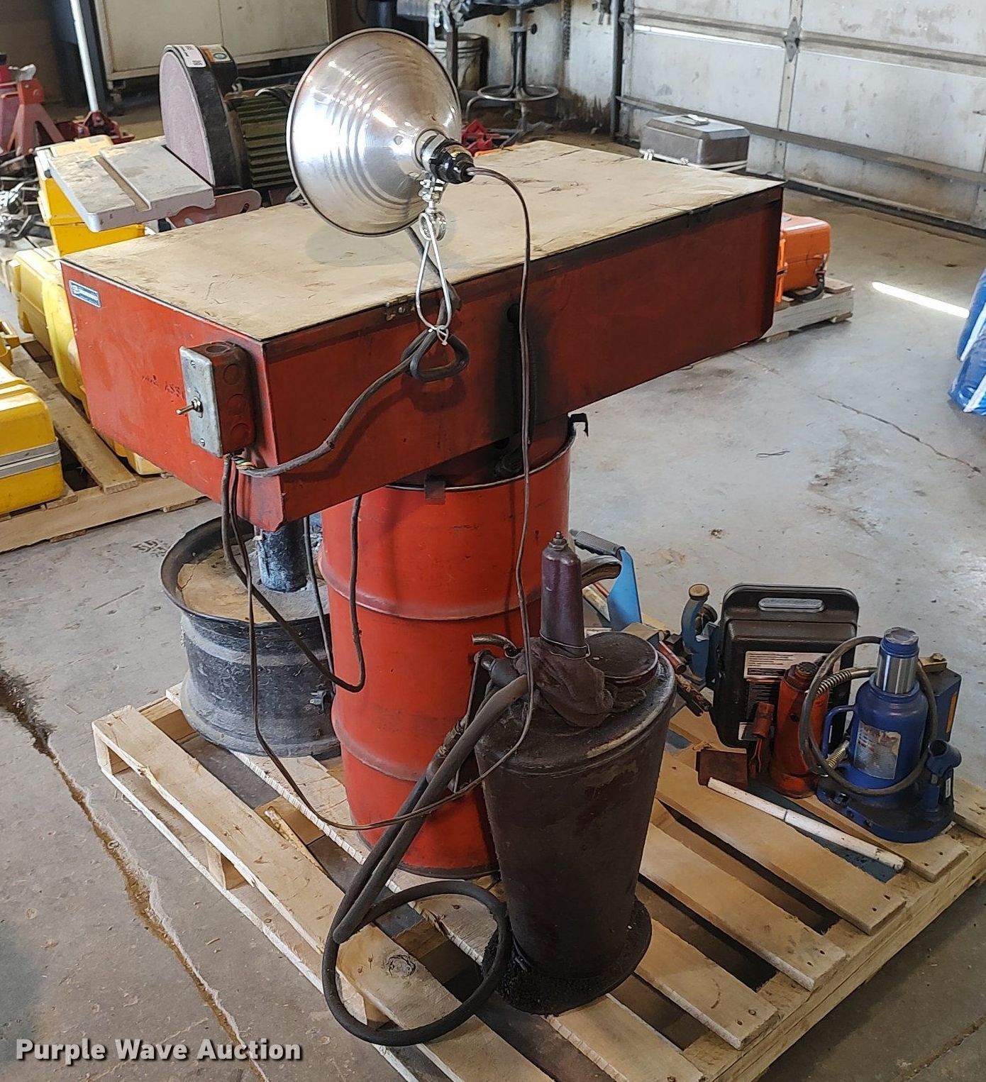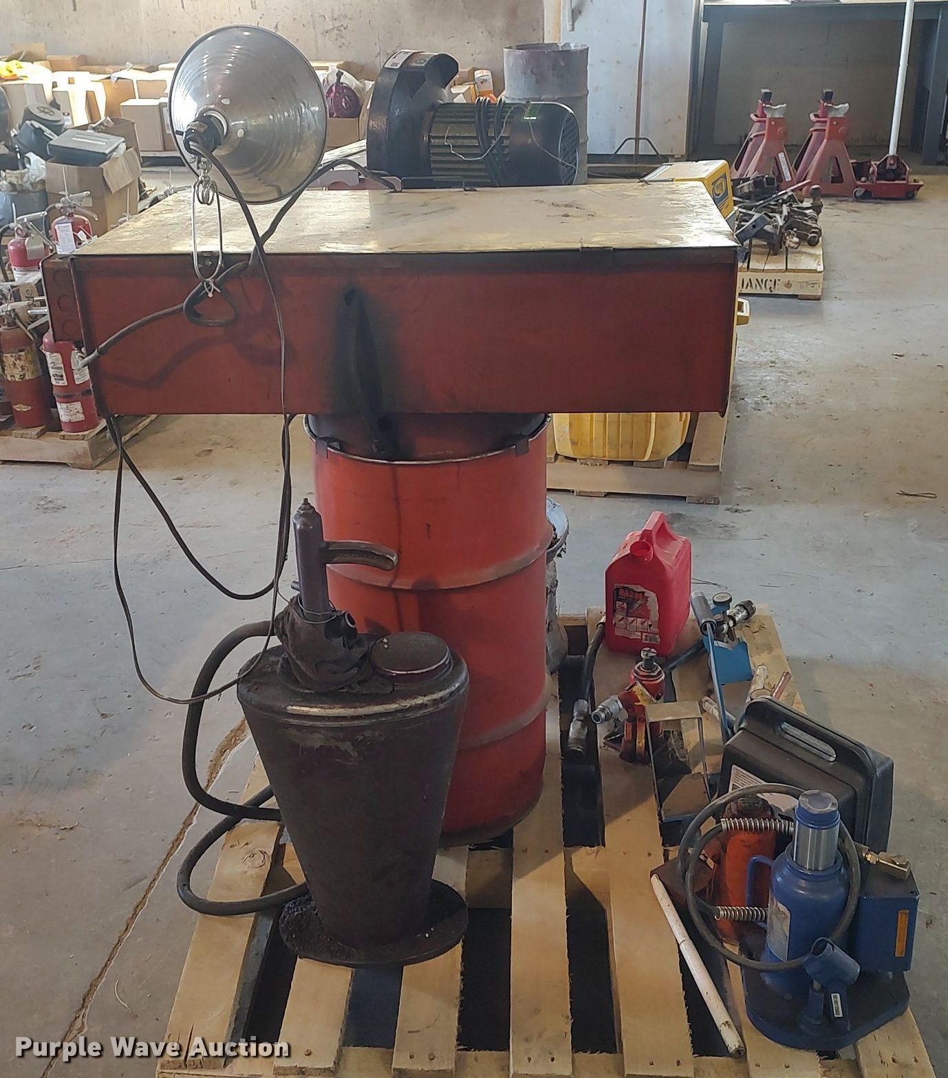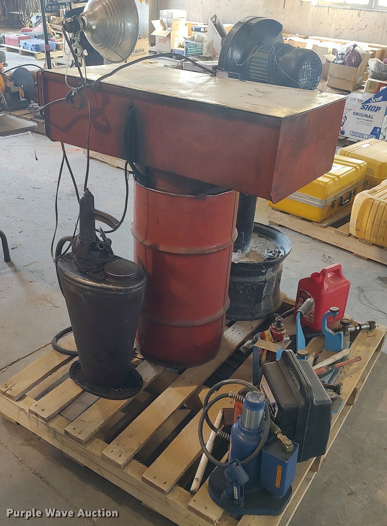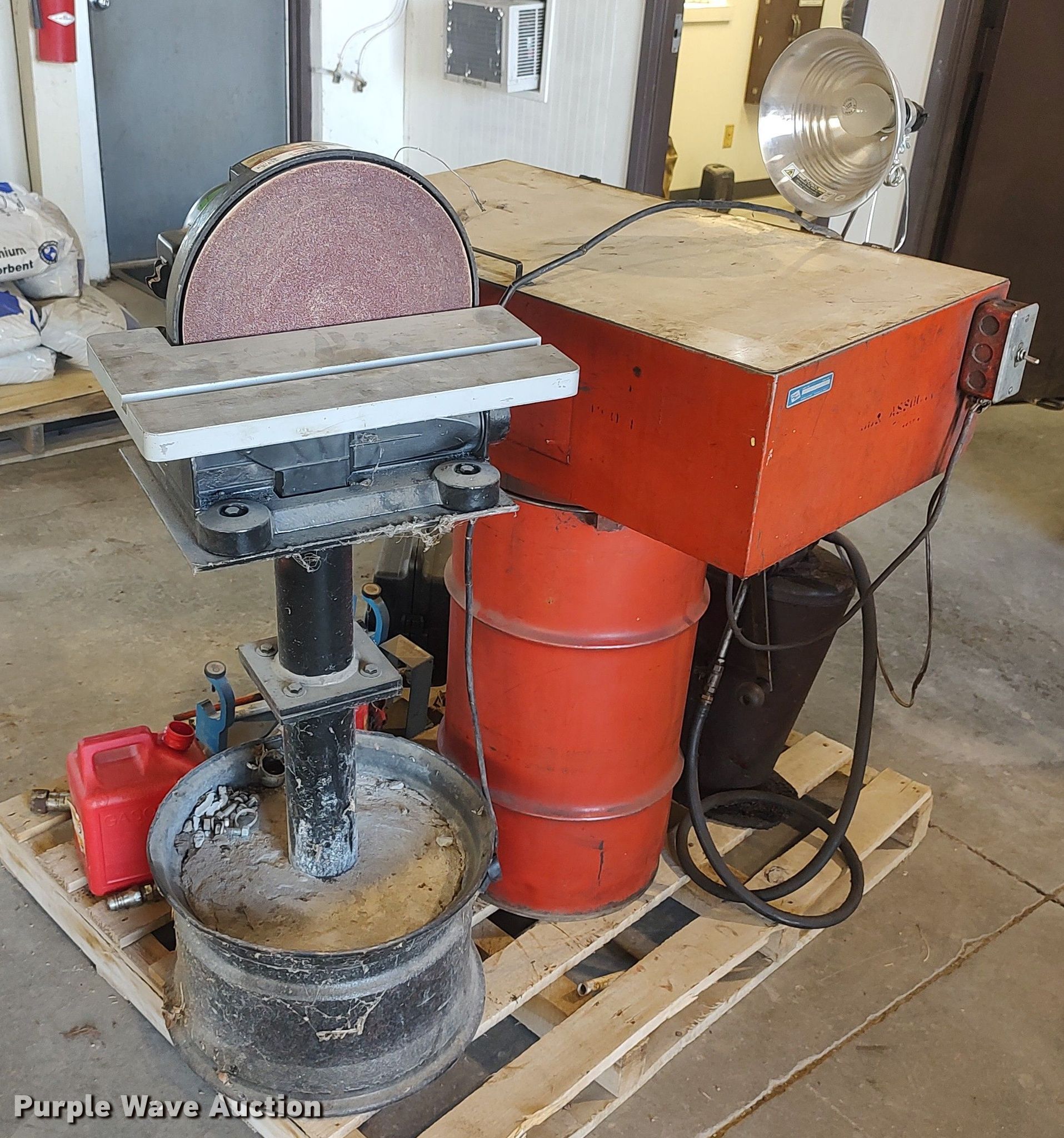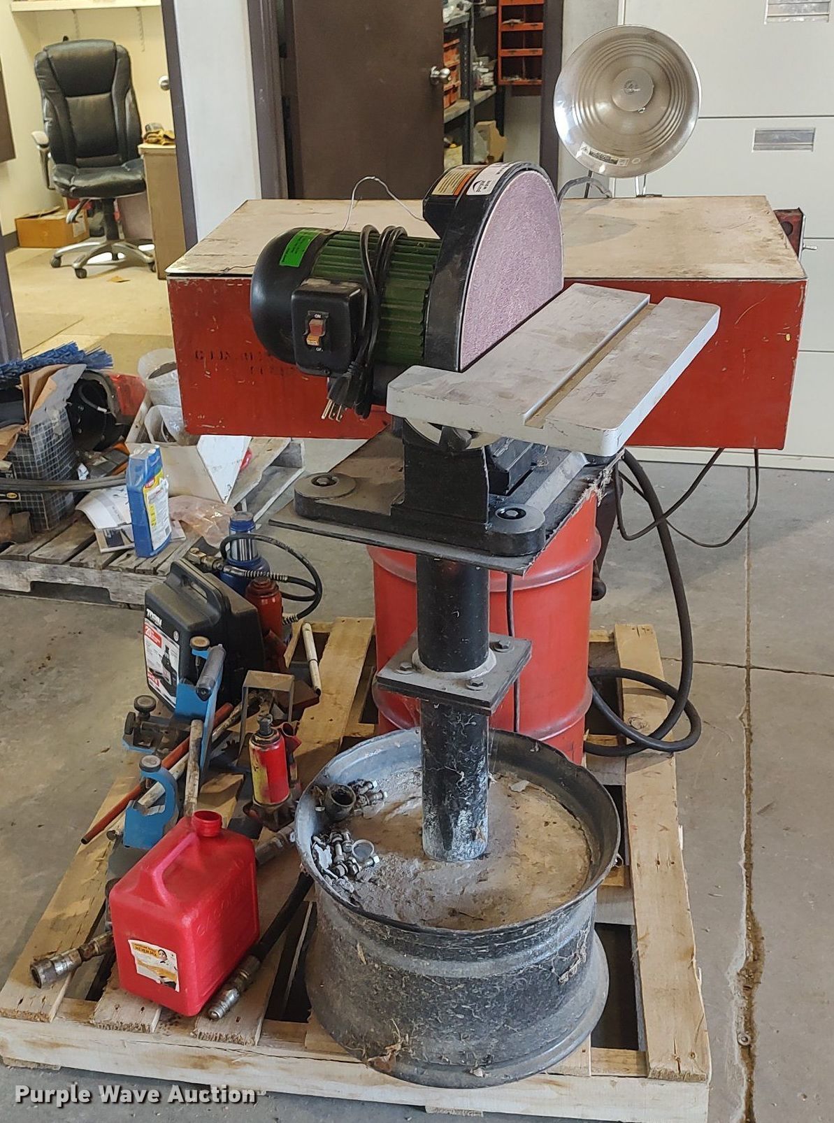 Purple Wave is selling a used Tools in Kansas. This item is a Tools with the following: Central Machinery 12" stand sander, Graymills DM 132 parts washer, (4) bottle jacks, Oil pump, Grease pump