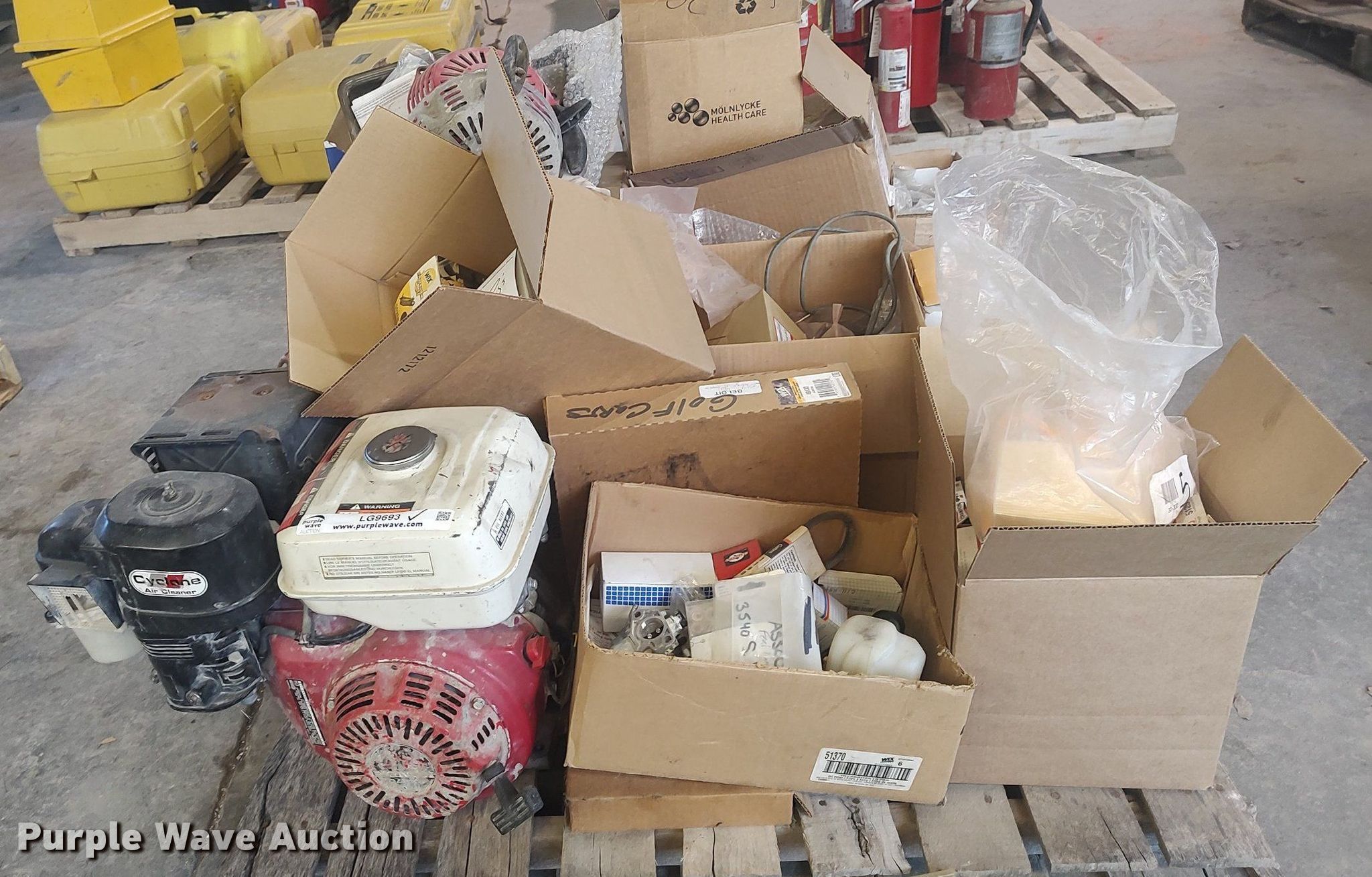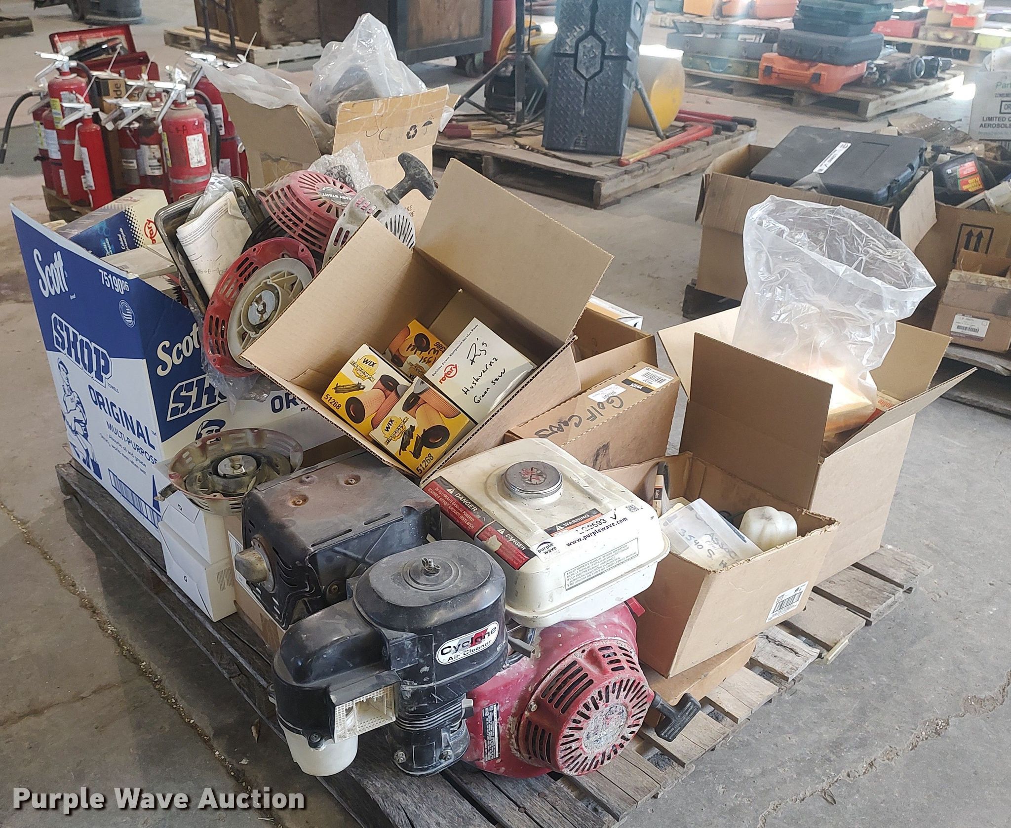 Purple Wave is selling a used Tools in Kansas. This item is a Small engine parts with the following: Honda GX270 engine, Unknown operating condition, Pull strings, Filters, Carburetors and more
