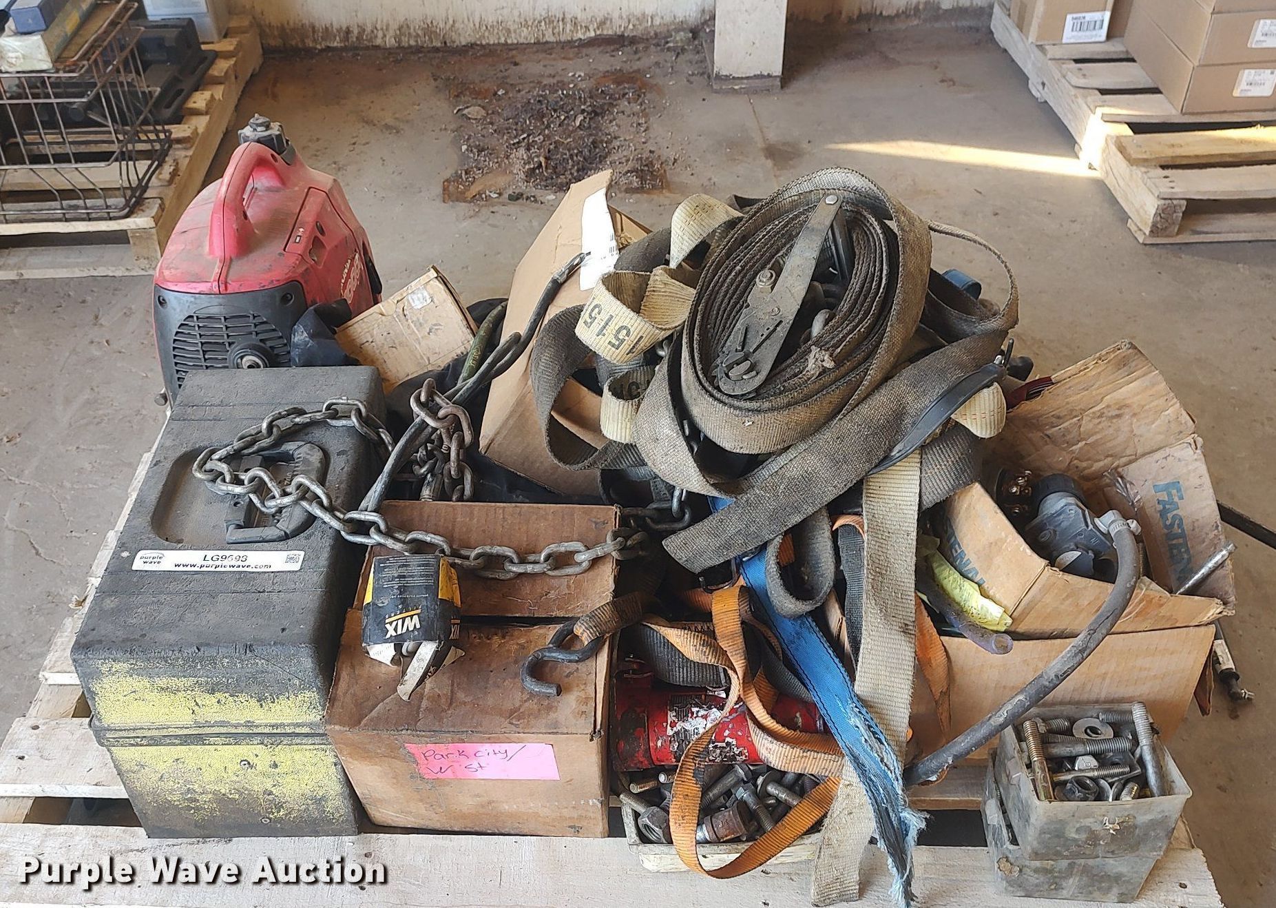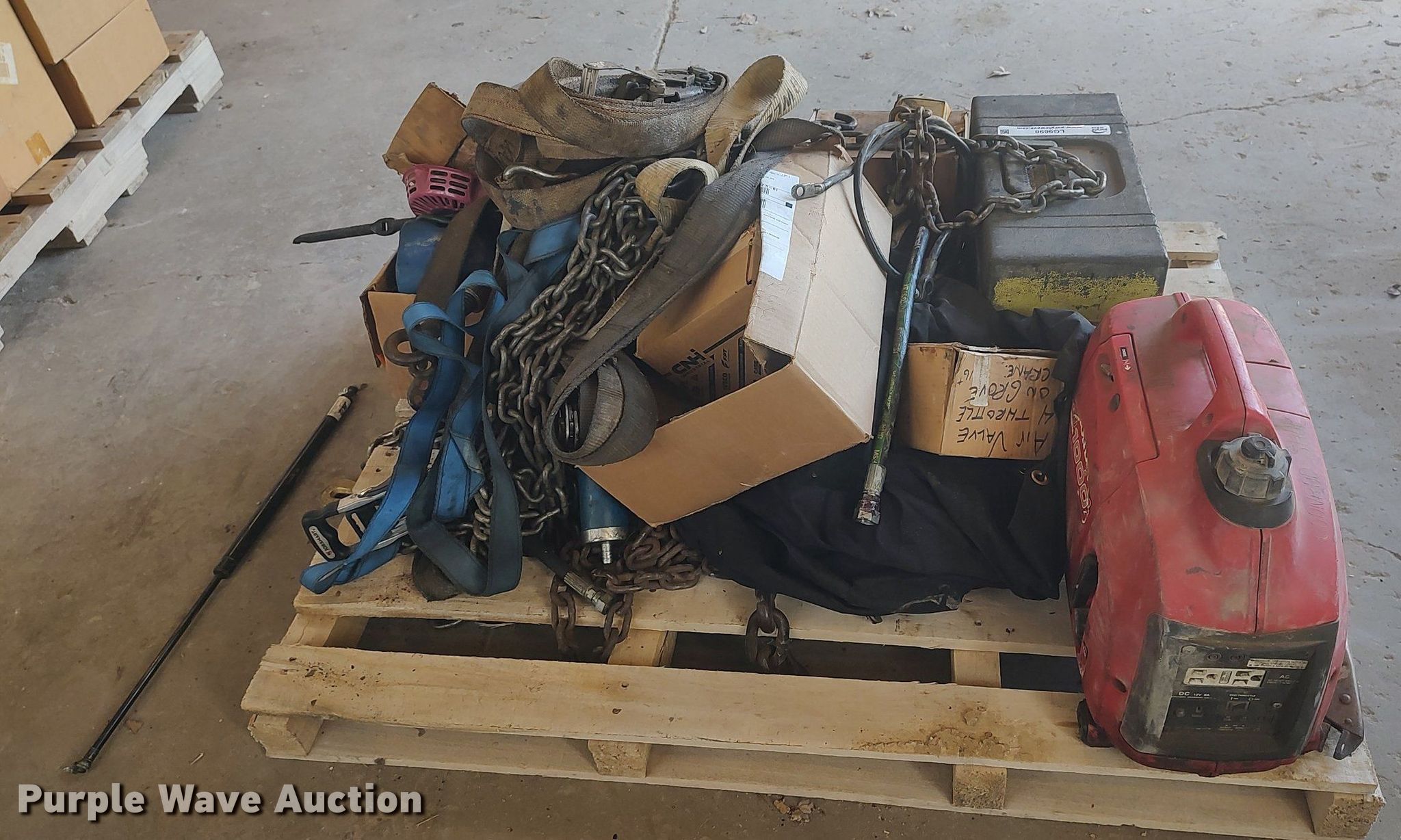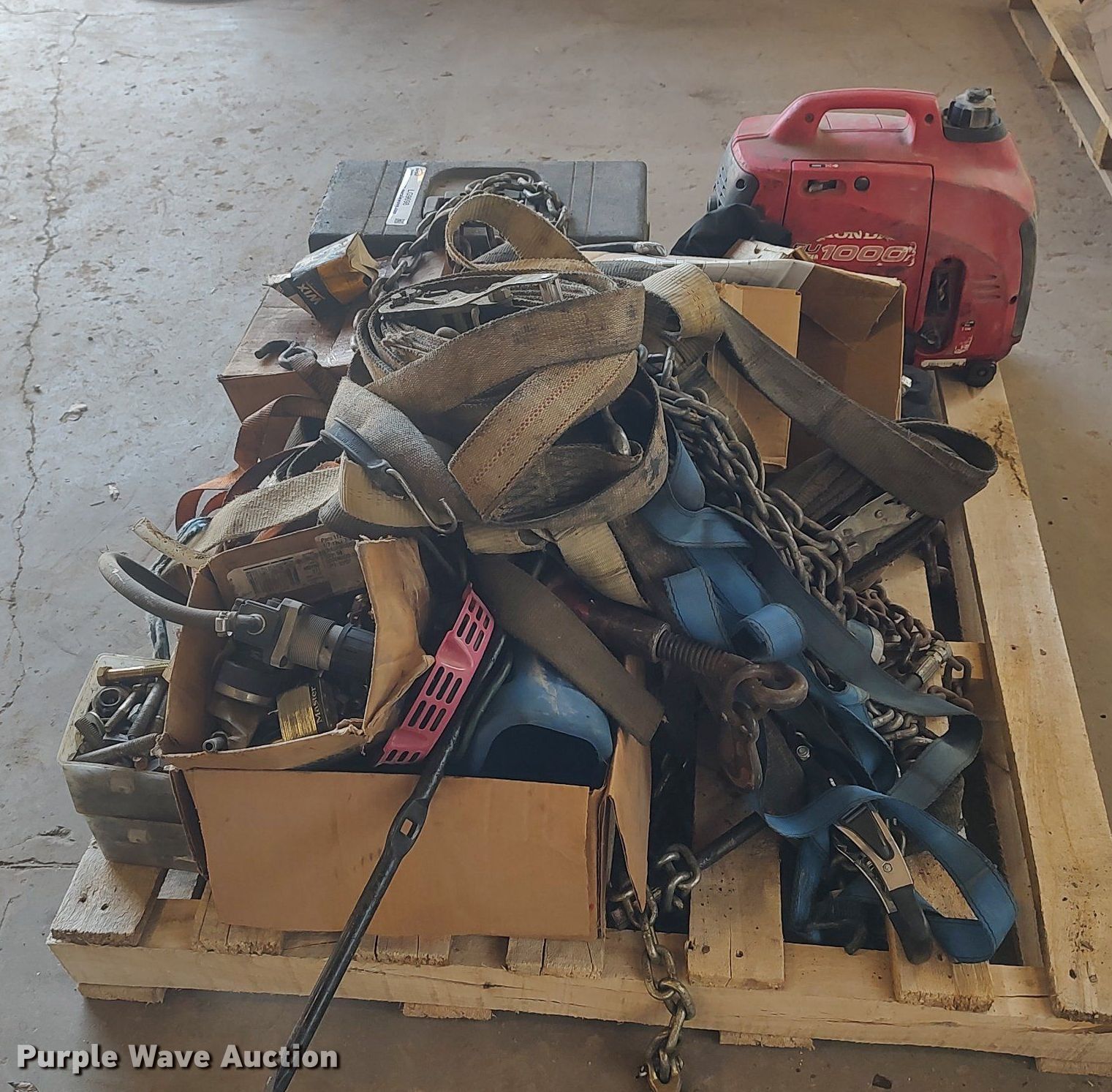 Purple Wave is selling a used Tools in Kansas. This item is a Tools with the following: Honda EU 1000 inverter, 1000W, Unknown operating condition, Chains, Straps, Hoses, Bolts and more