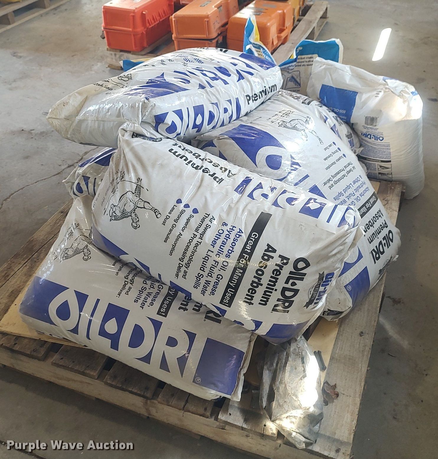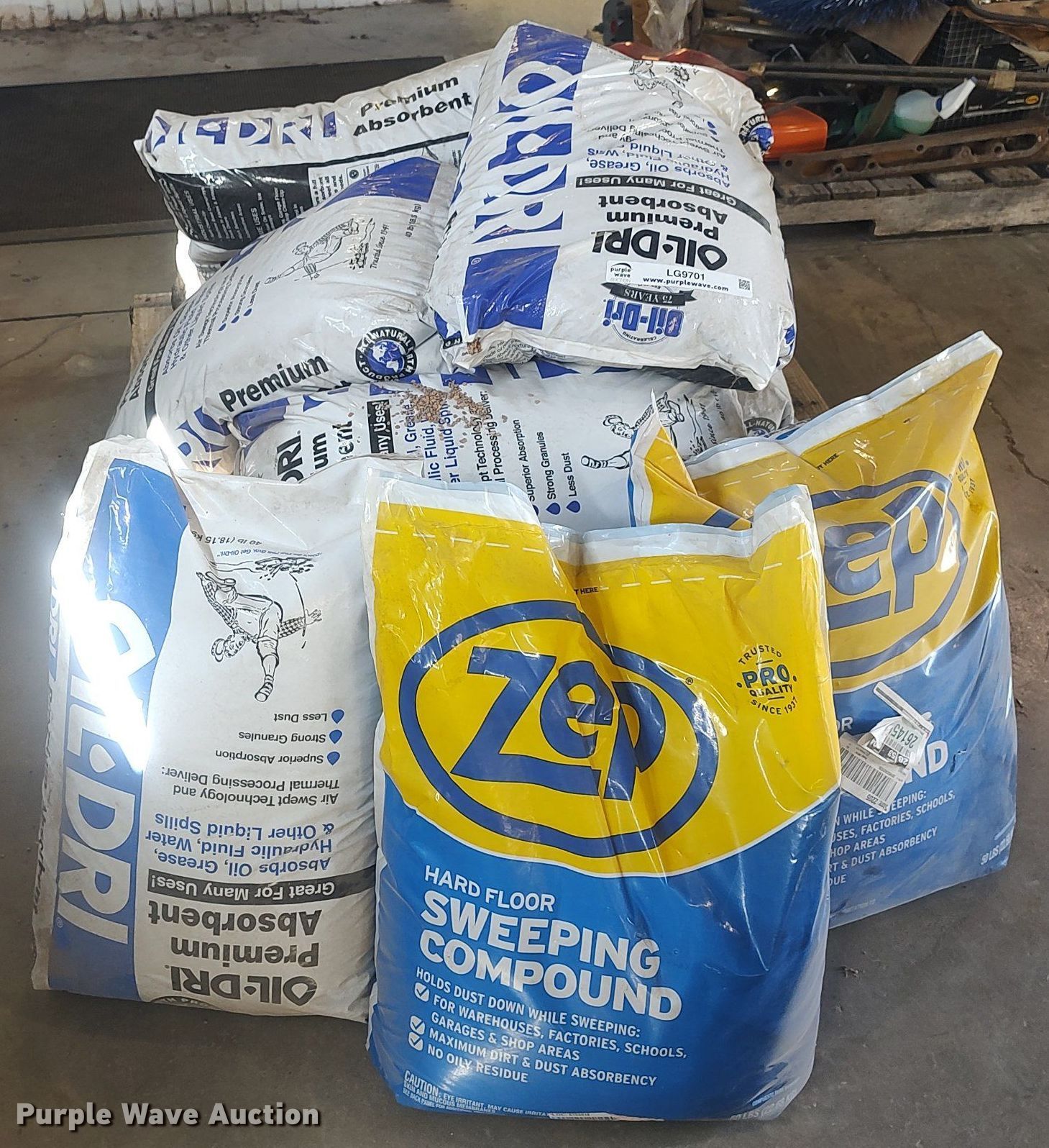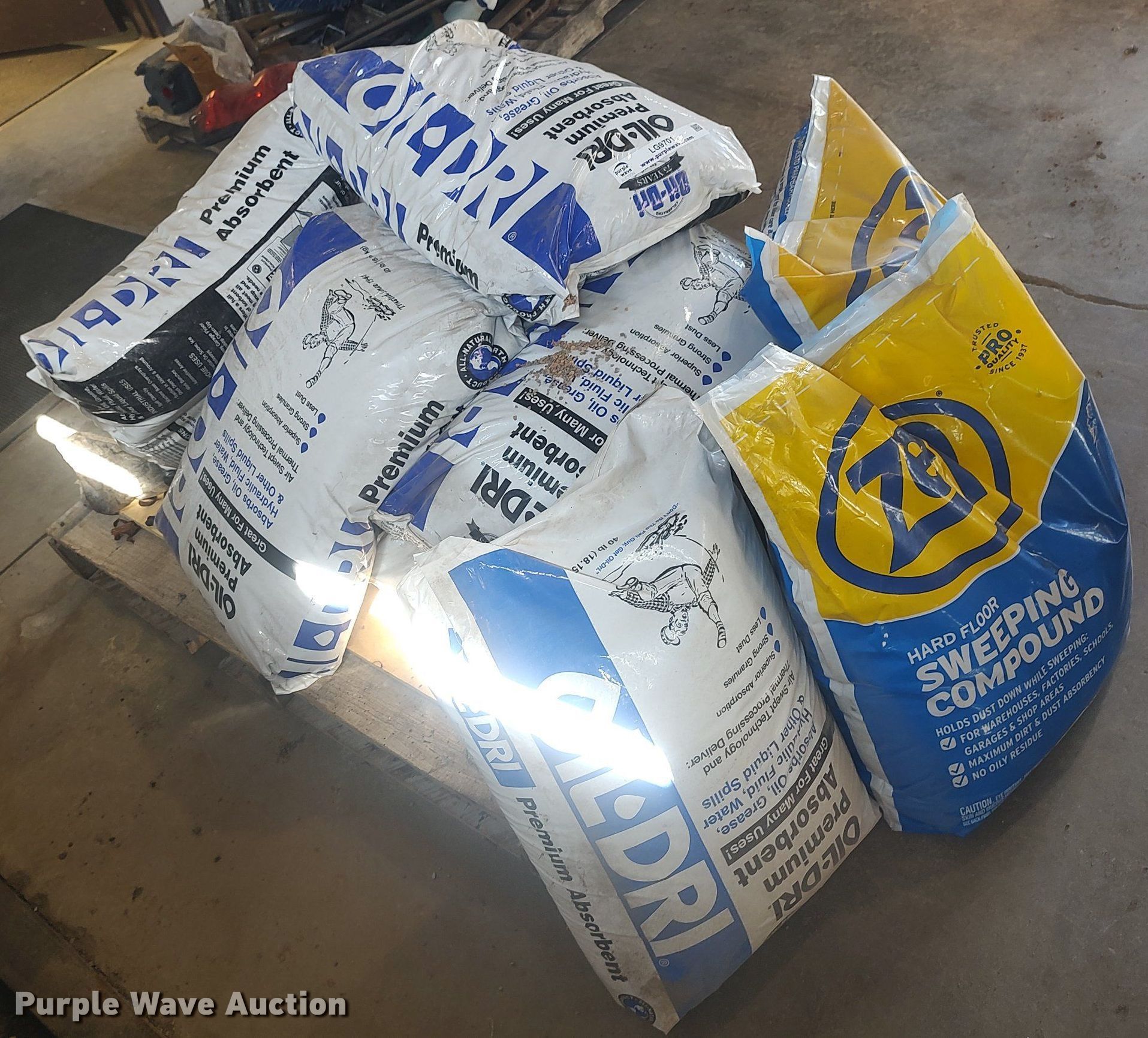 Purple Wave is selling a used Tools in Kansas. This item is a Oil spill response materials with the following: (9) 40lb bags of Oil Dri absorbent, (2) 40lb bags of ZEP sweeping compound