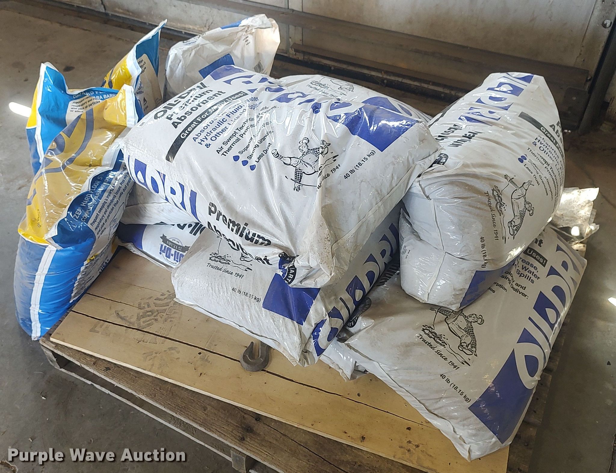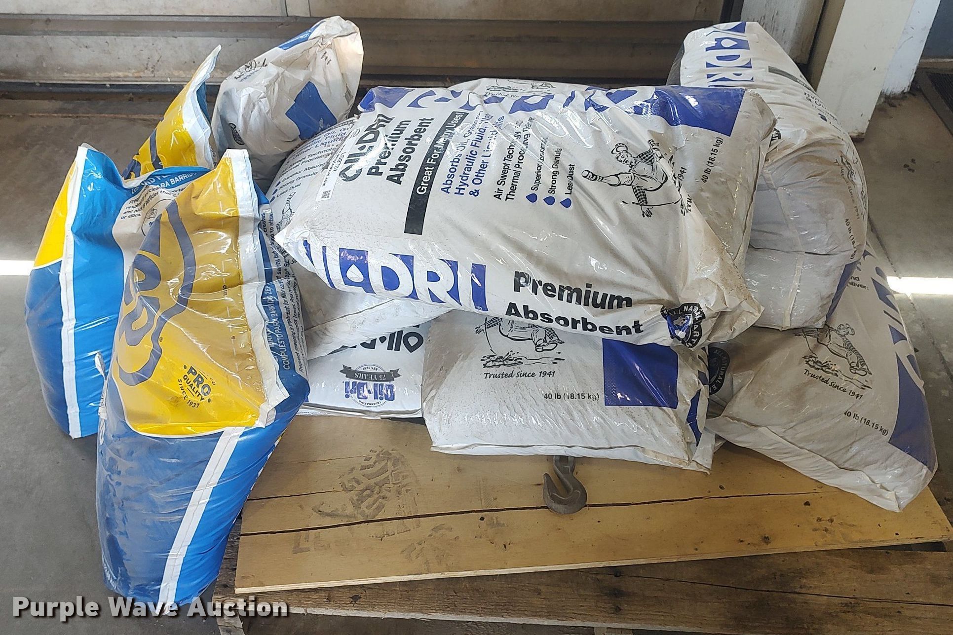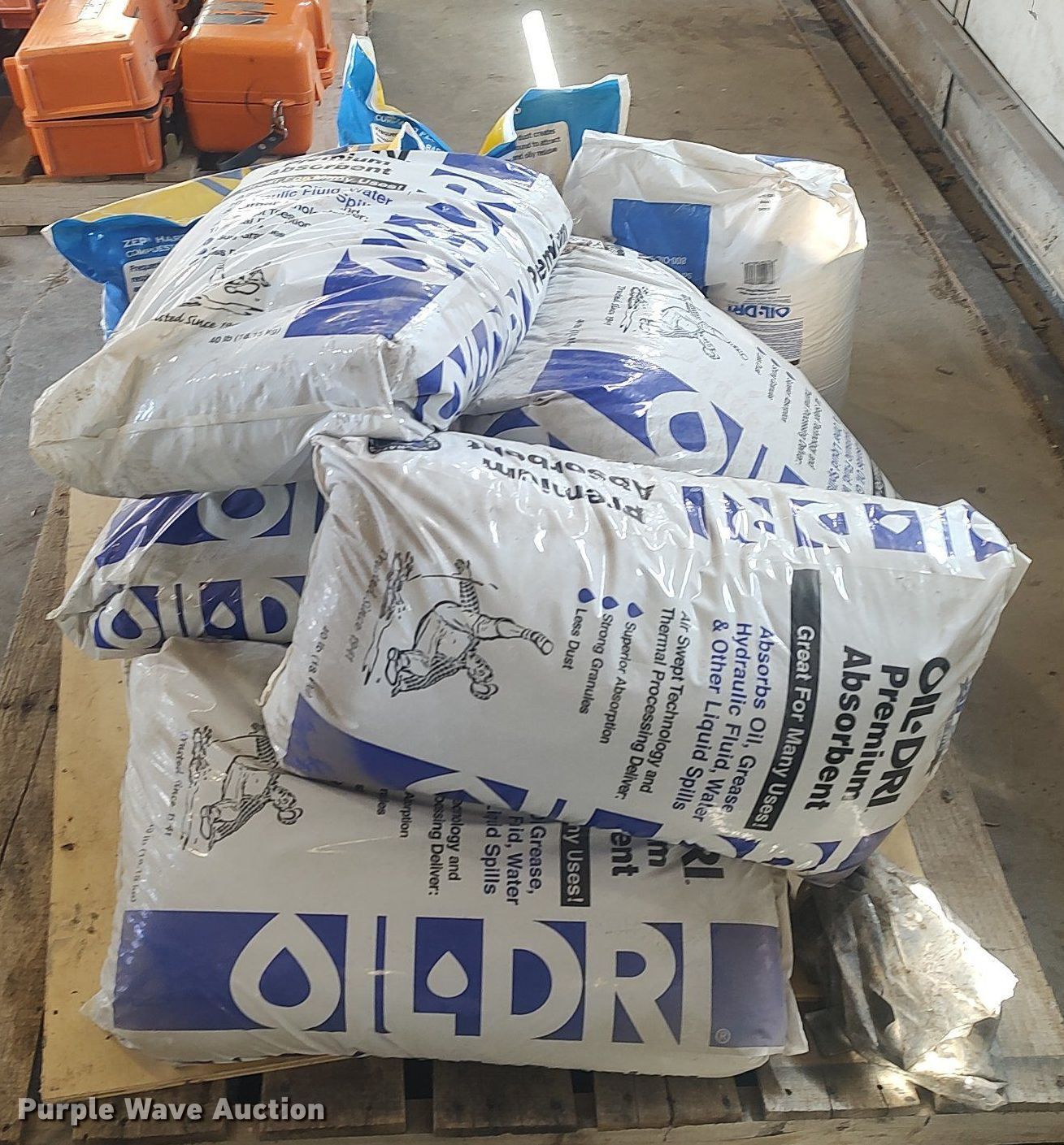 Purple Wave is selling a used Tools in Kansas. This item is a Oil spill response materials with the following: (9) 40lb bags of Oil Dri absorbent, (2) 40lb bags of ZEP sweeping compound