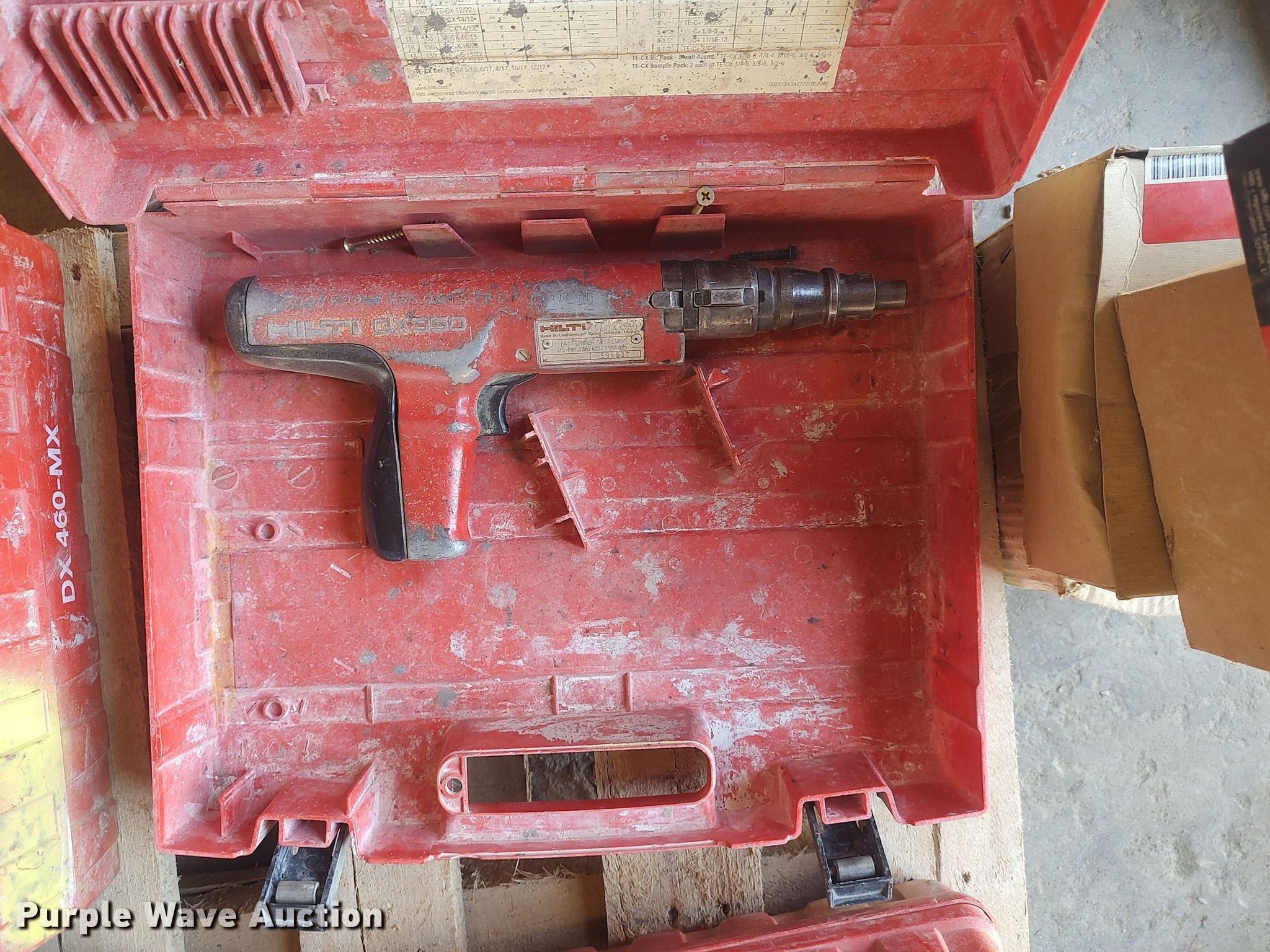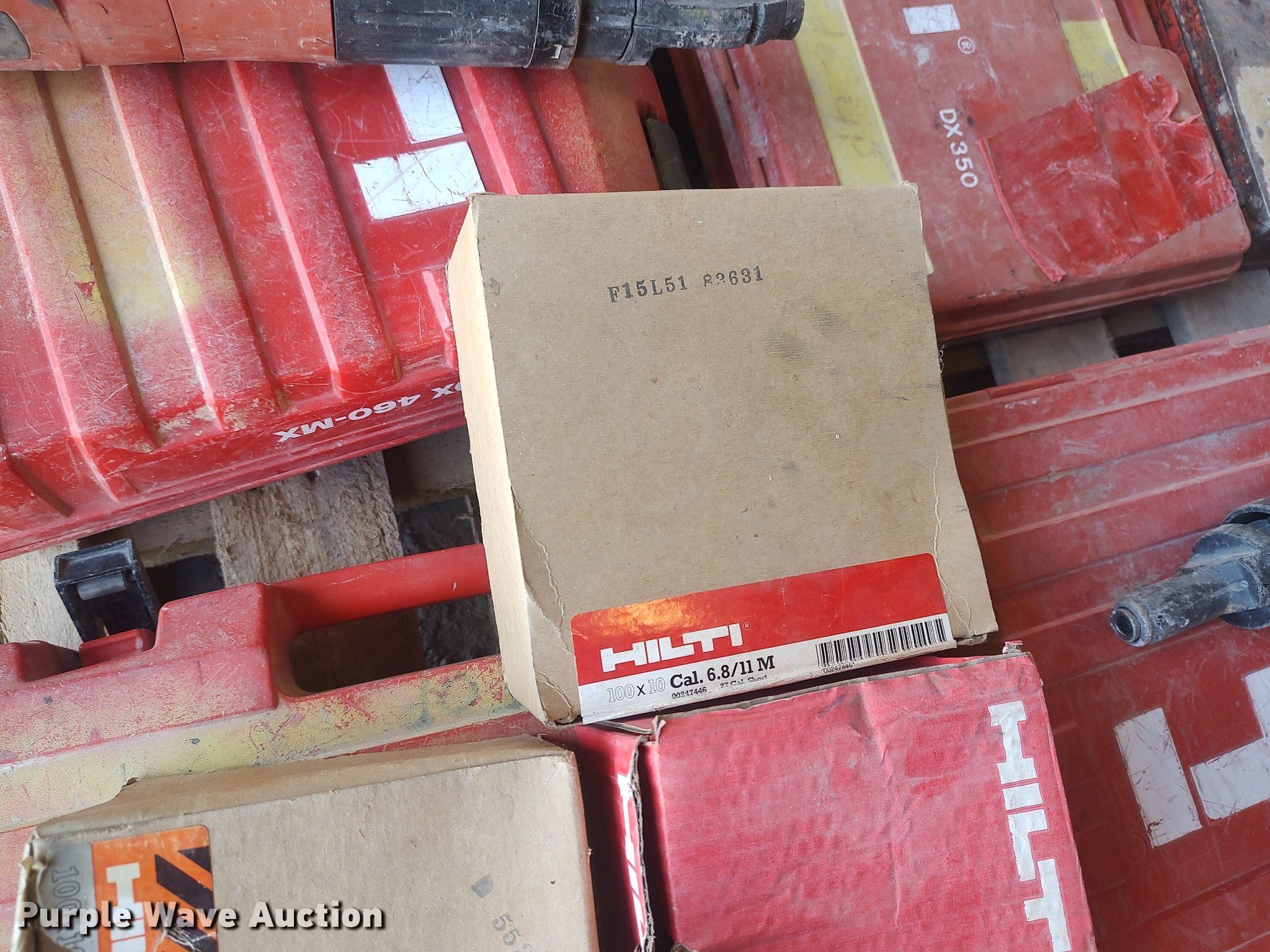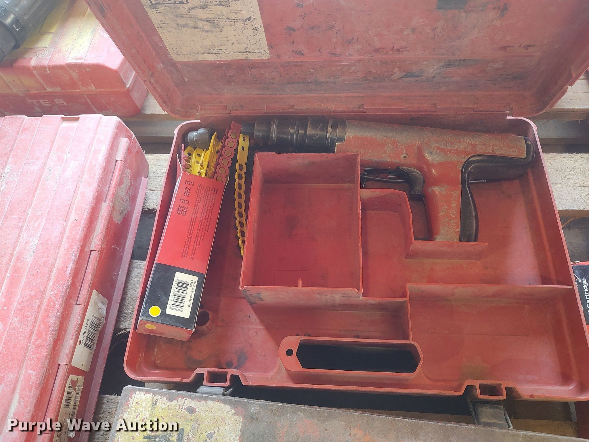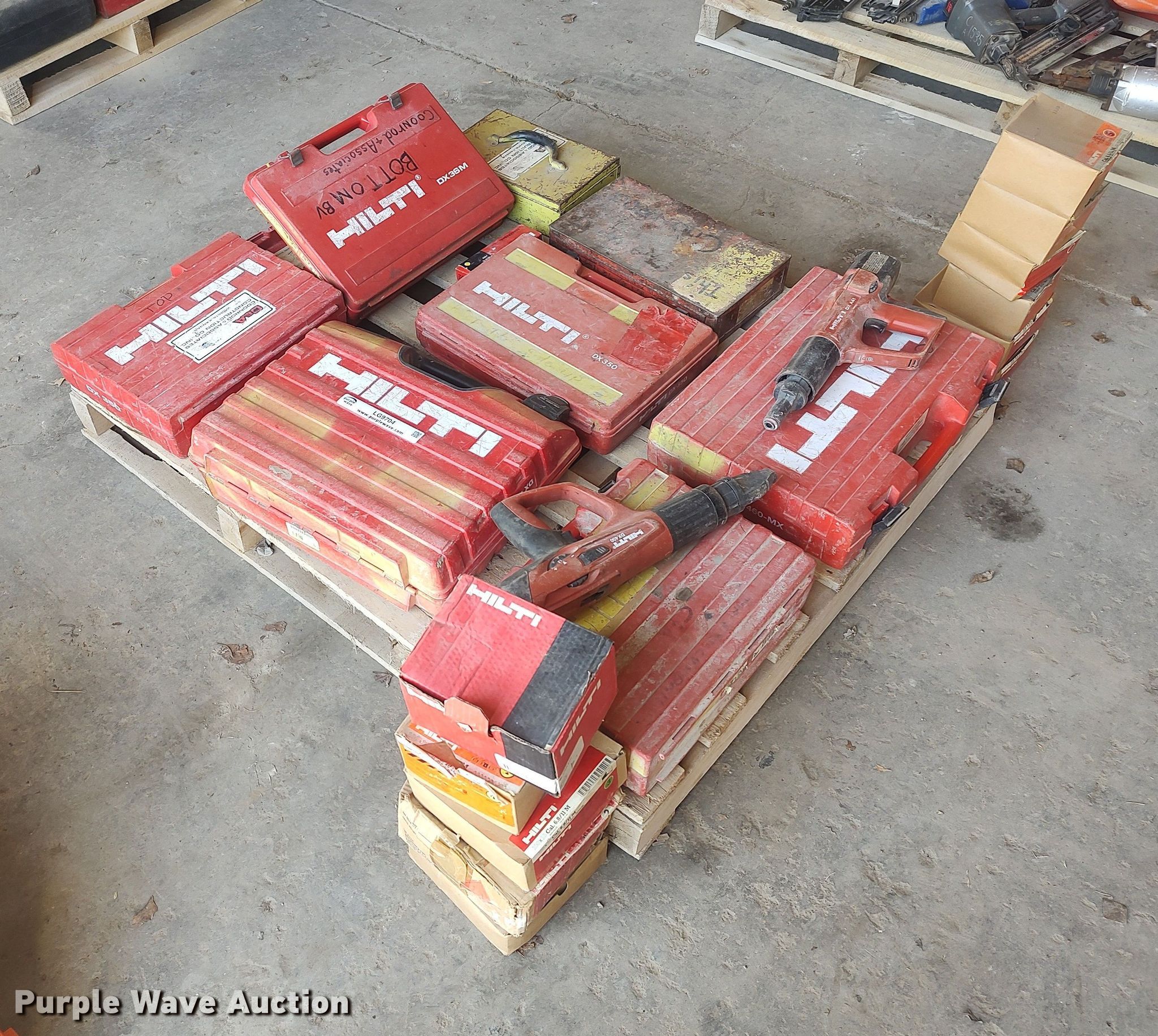 Purple Wave is selling a used Tools in Kansas. This item is a (9) Hilti powder nail guns with the following: (11) boxes of nail blanks