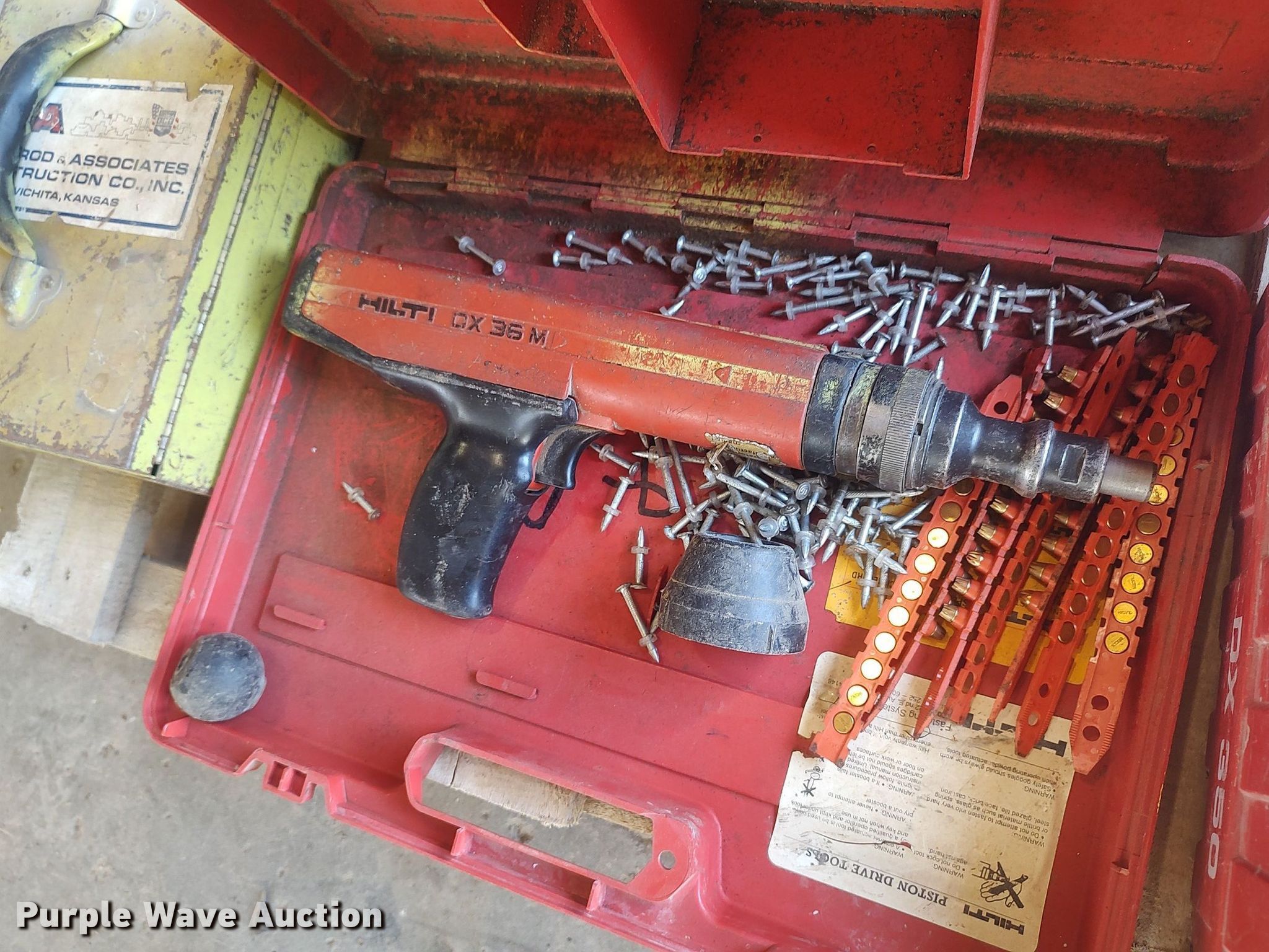 (9) Hilti powder nail guns. (11) boxes of nail blanks. Coonrod & Associates Construction Co. Retirement. 3550 South Hoover Road. Wichita, KS 67215