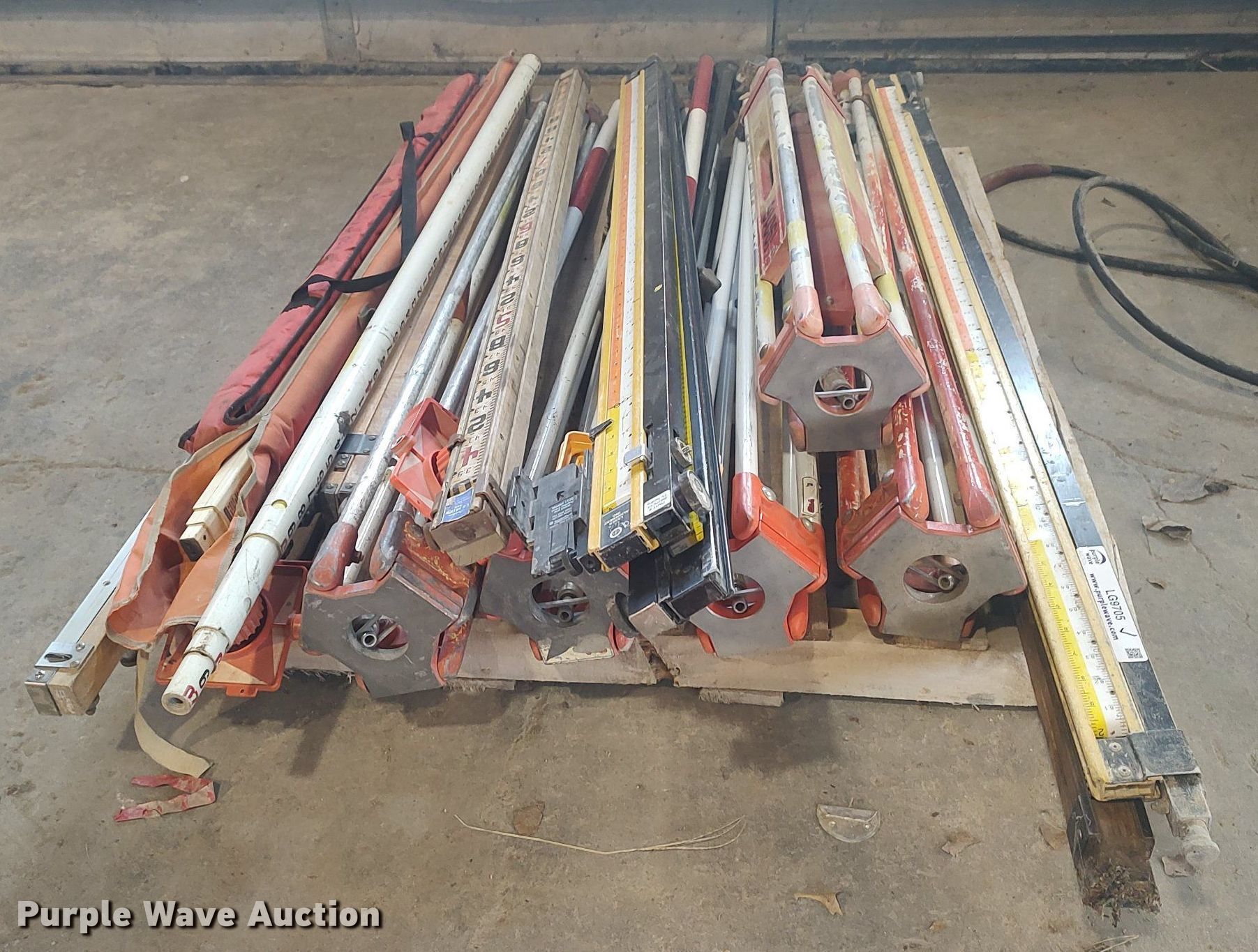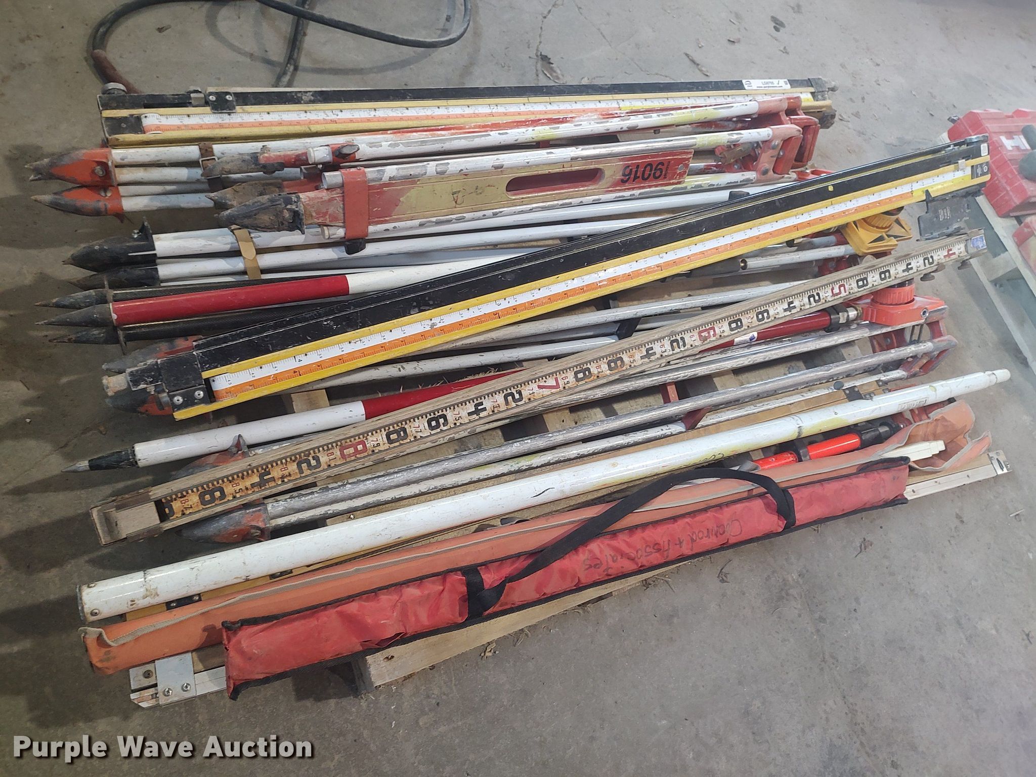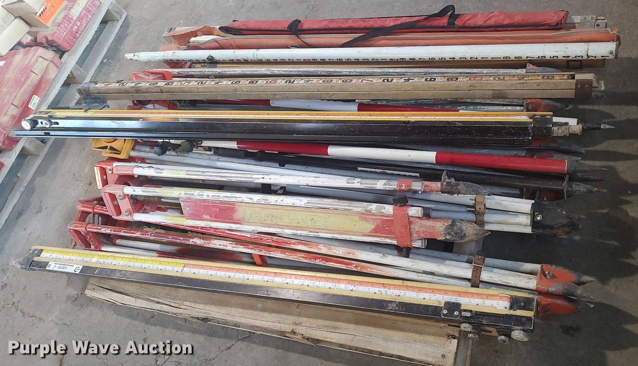 Purple Wave is selling a used Surveying Equip. in Kansas. This item is a Surveying equipment with the following: (6) tripods, (6) measuring sticks